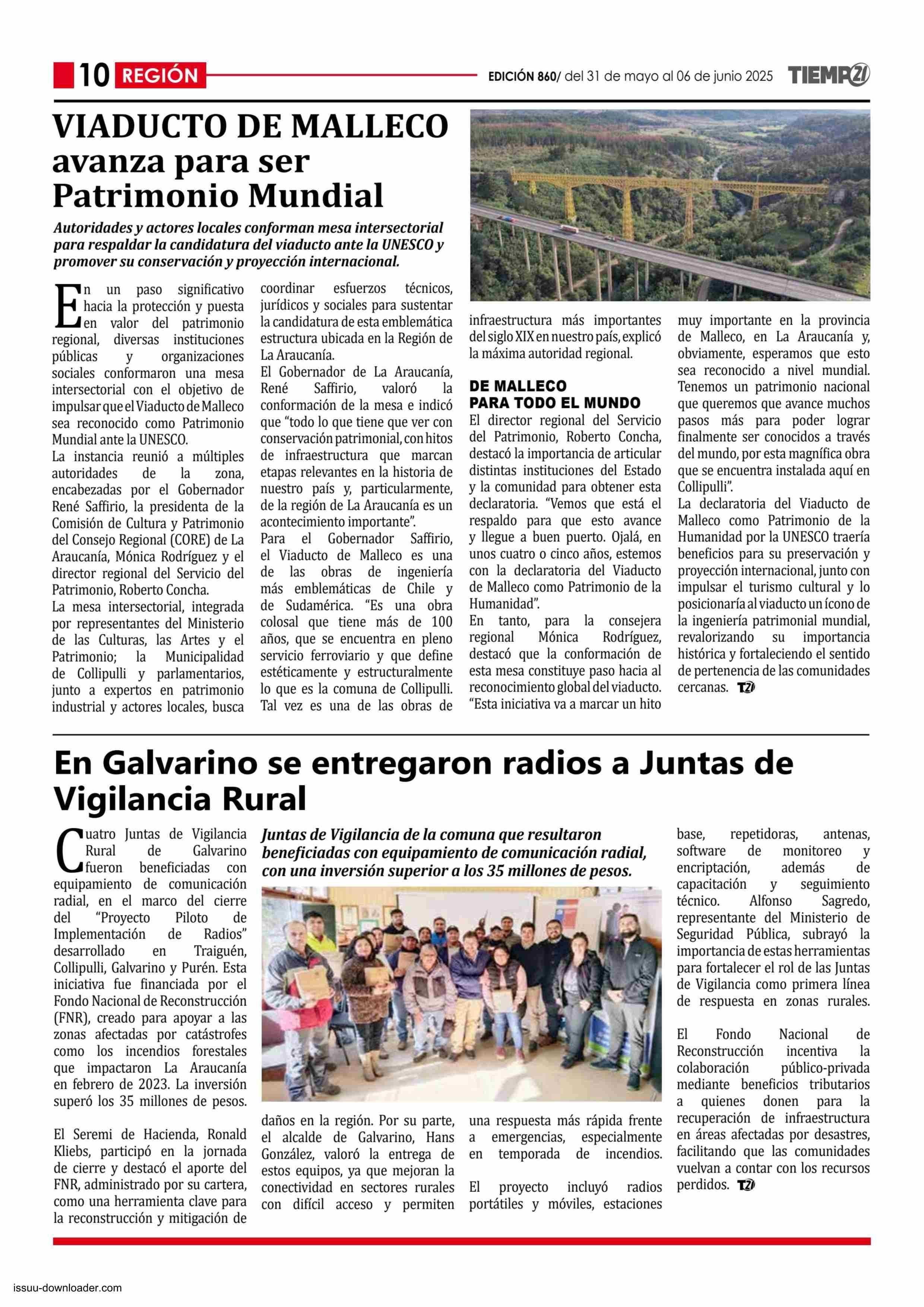 VIADUCTO DE MALLECO avanza para ser Patrimonio Mundial 31-05-2025 Tiempo 21 |