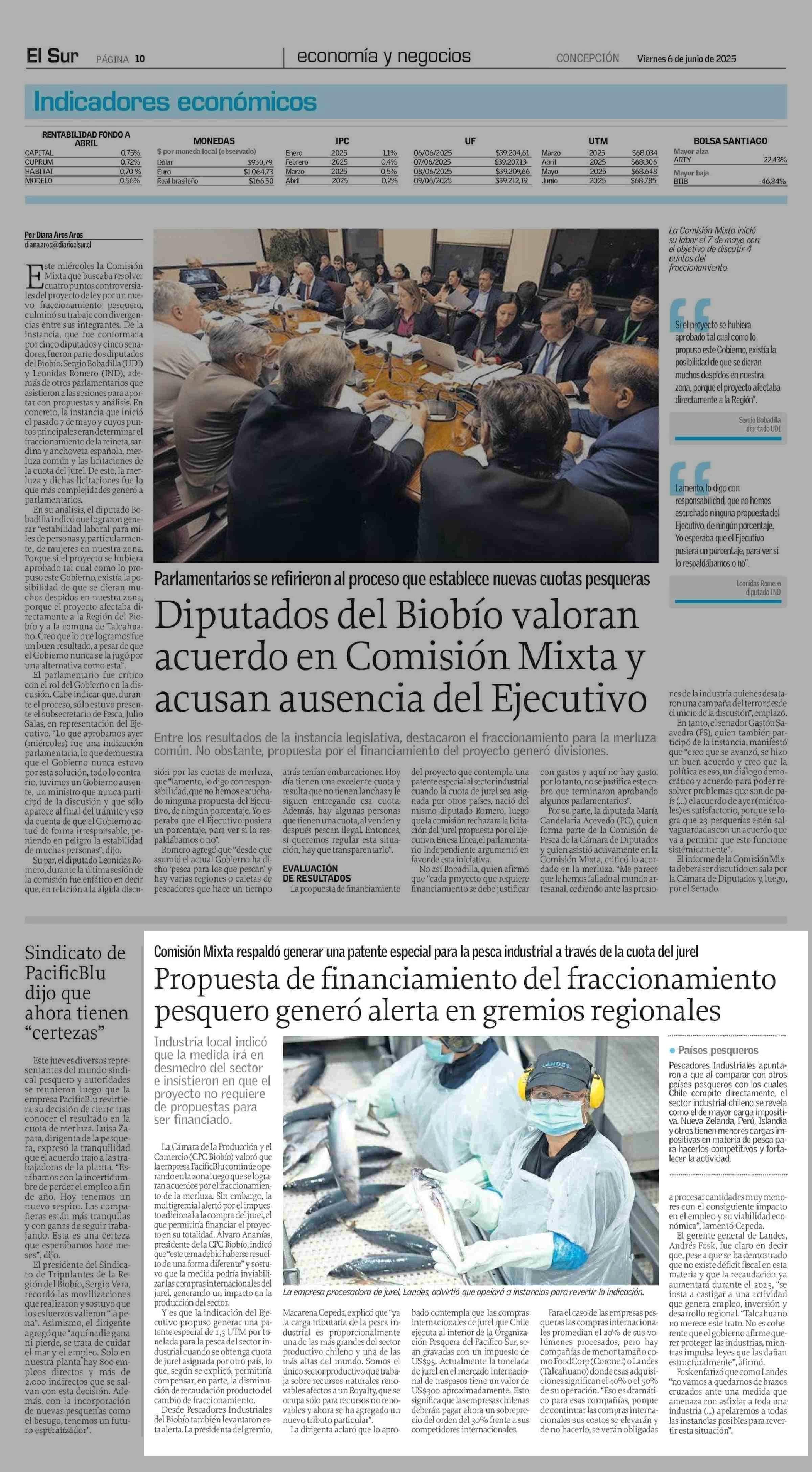 Propuesta de financiamiento del fraccionamiento pesquero generó alerta en gremios regionales 06-06-2025 El Sur |