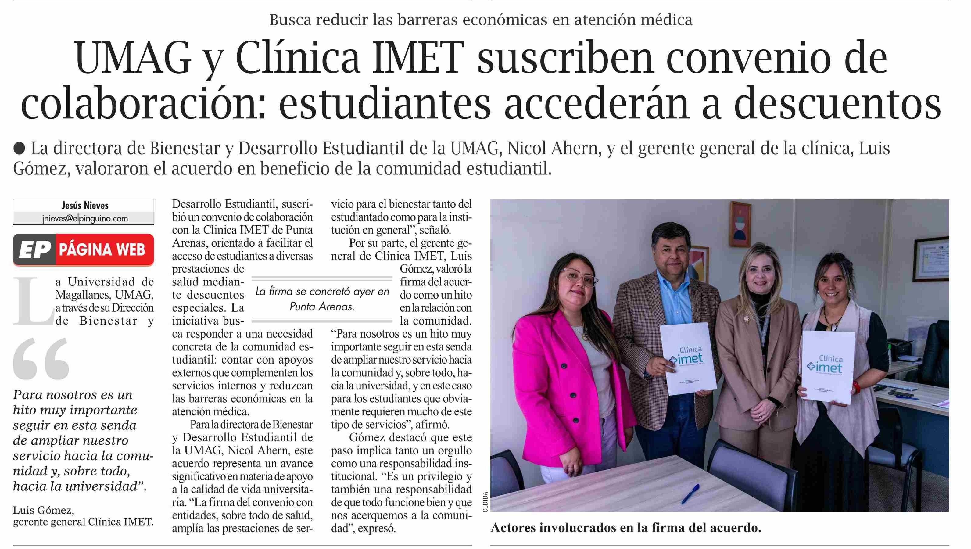Título: UMAG y Clínica IMET suscriben convenio de colaboración: estudiantes accederán a descuentos