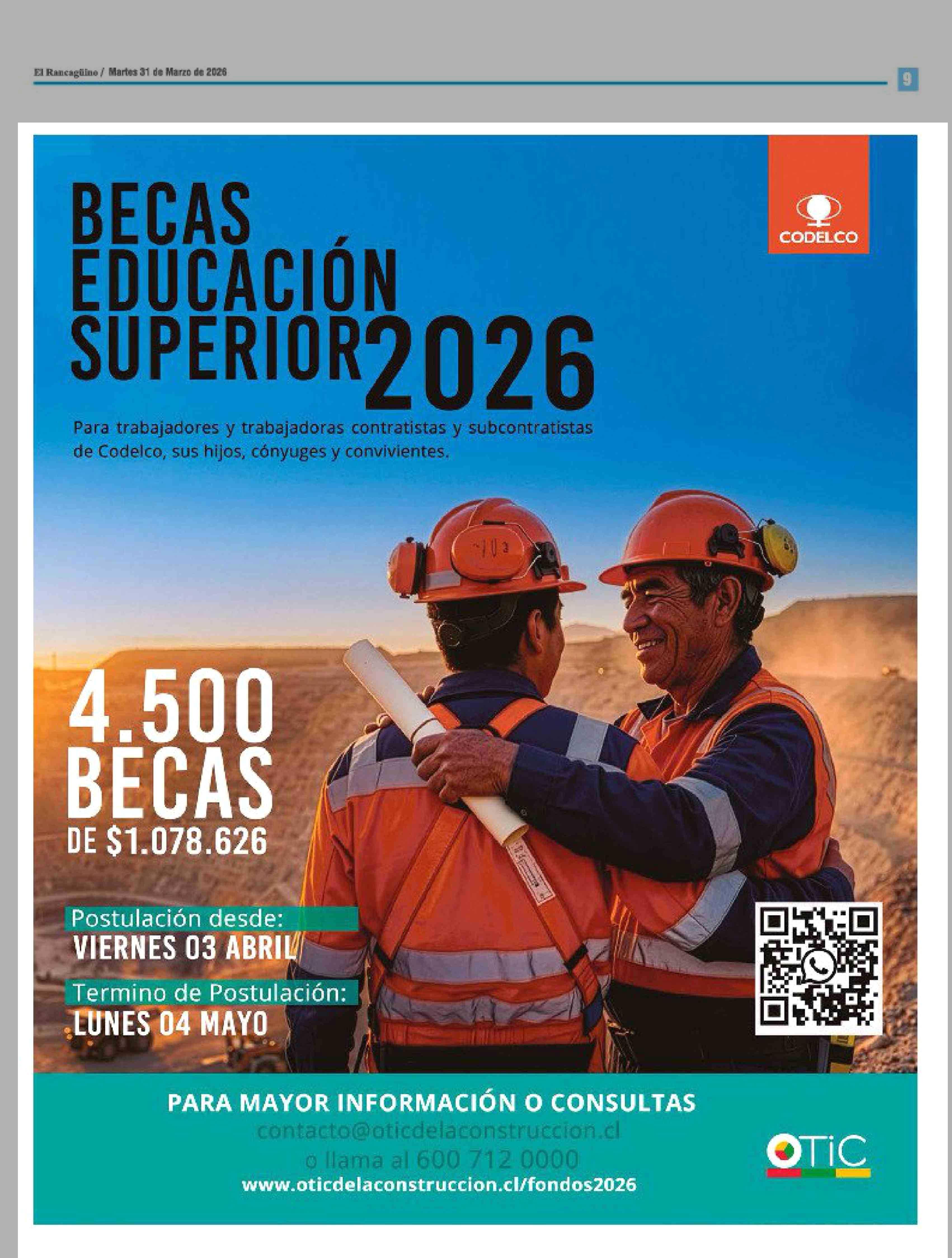 Aviso Publicitario: CODELCO BECAS EDUCACIÓN SUPERIOR 2026 31-03-2026 El Rancagüino |