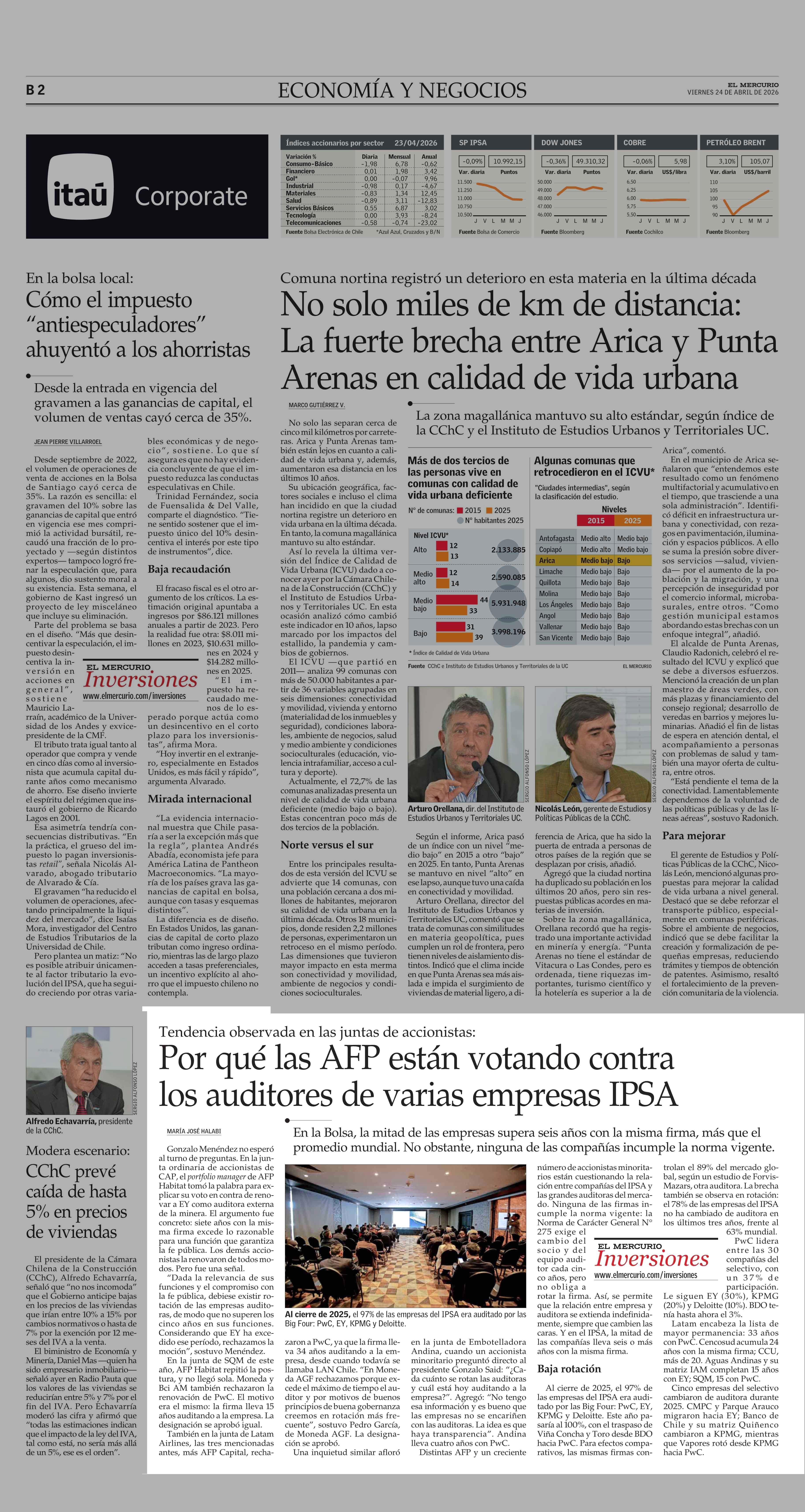 Por qué las AFP están votando contra los auditores de varias empresas IPSA 24-04-2026 El Mercurio |
