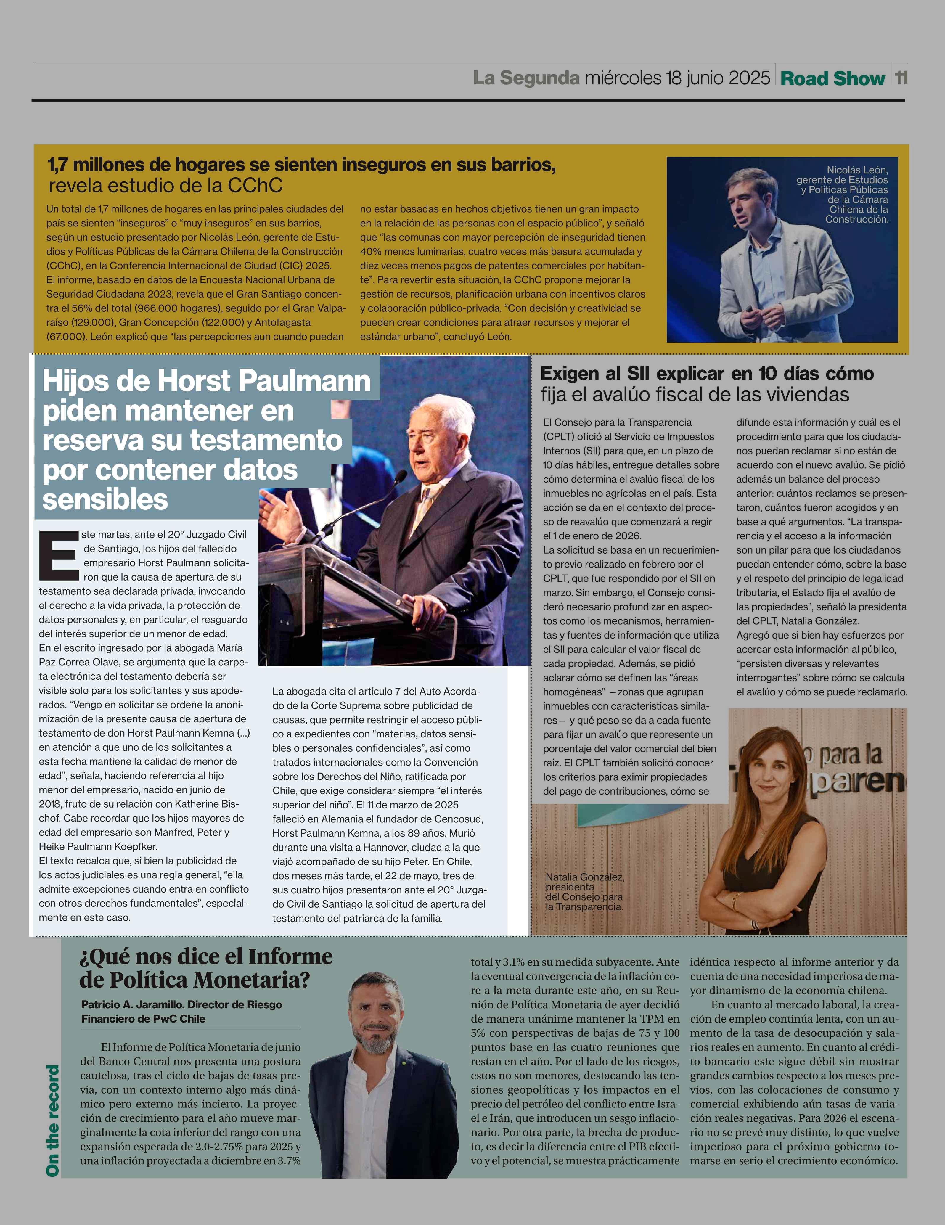 Hijos de Horst Paulmann piden mantener en reserva su testamento por contener datos sensibles 18-06-2025 La Segunda |