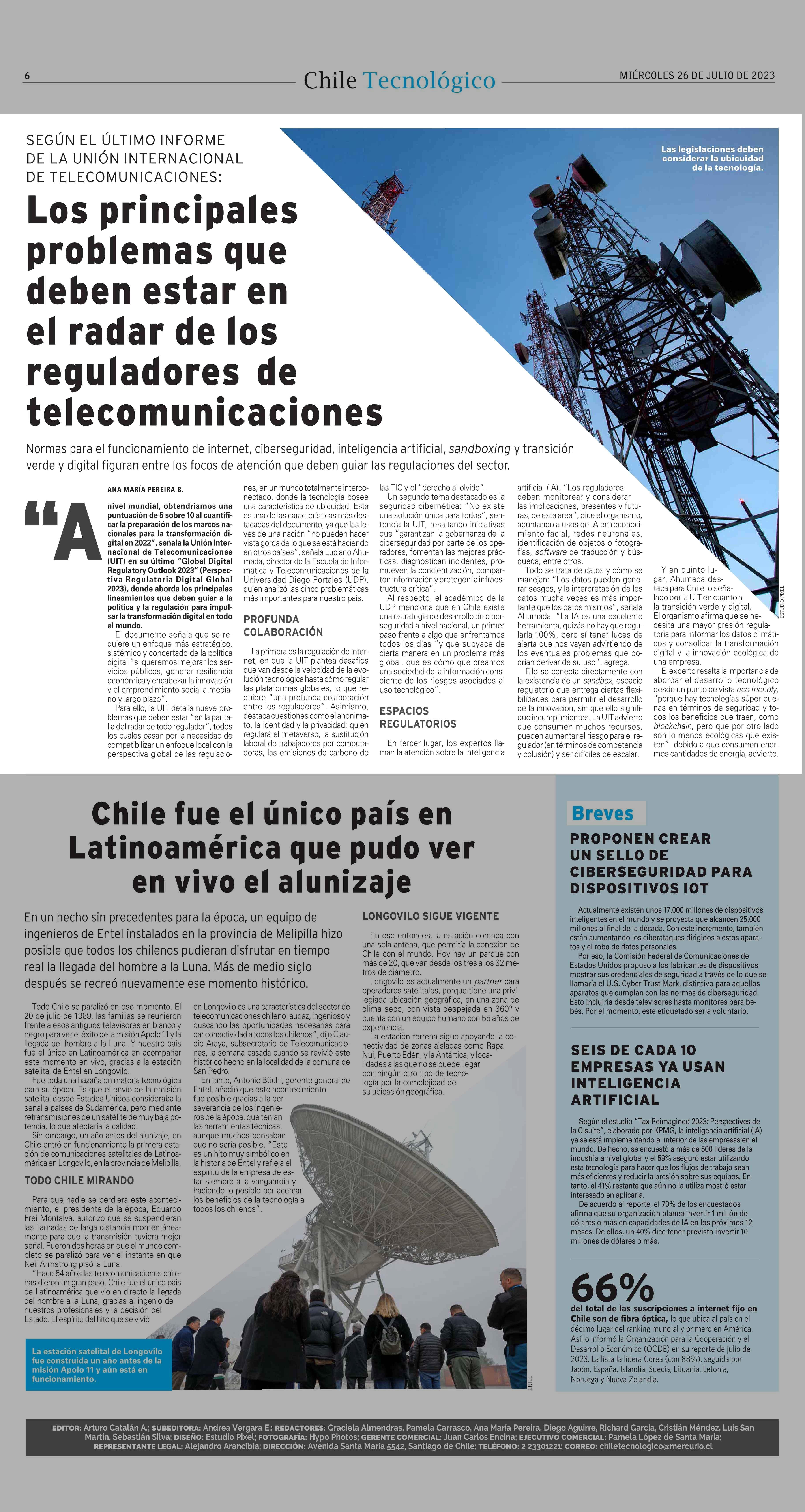 Los principales problemas que deben estar en el radar de los reguladores de telecomunicaciones 26-07-2023 El Mercurio |