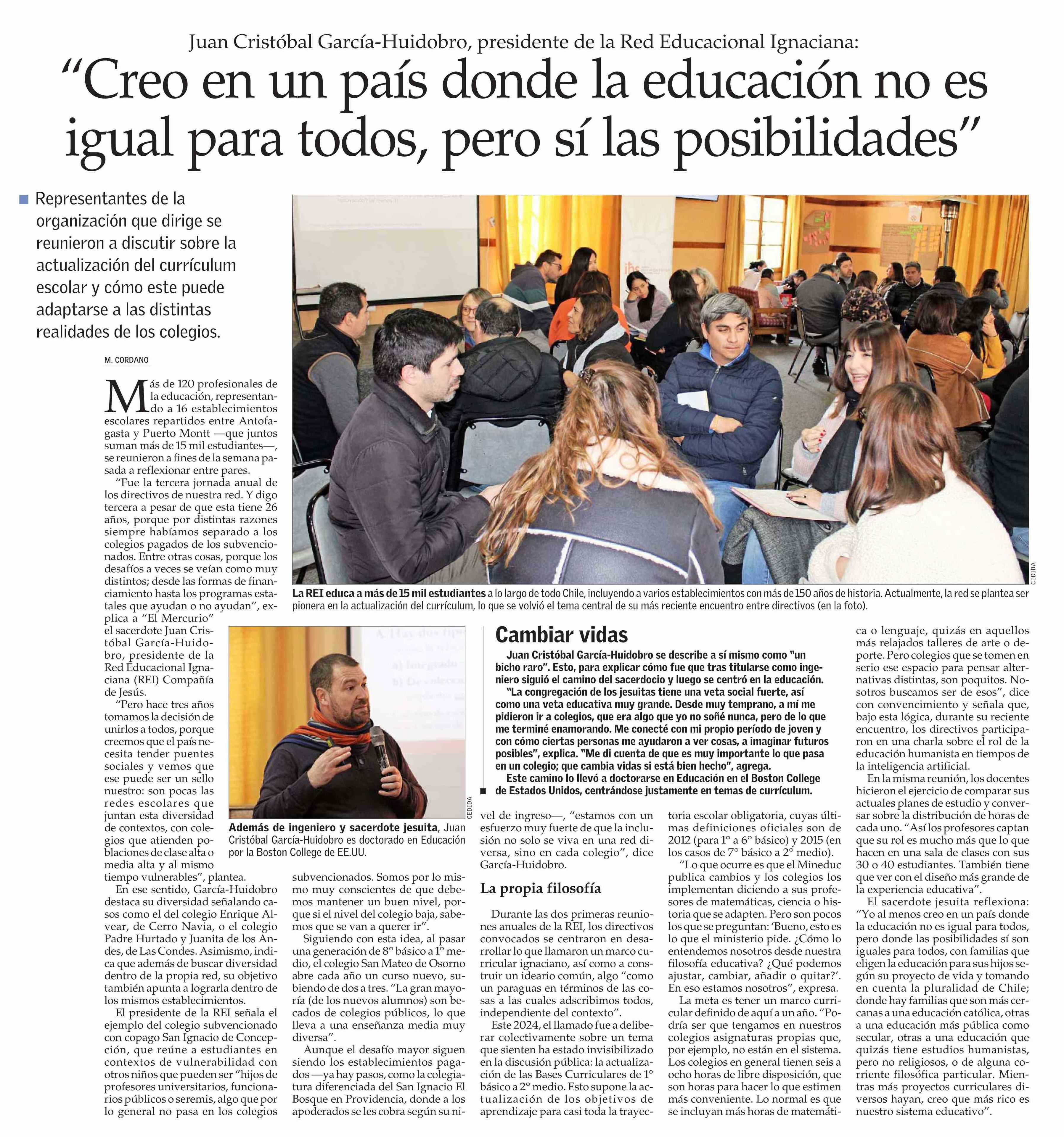 "Creo en un país donde la educación no es igual para todos, pero sí las posibilidades" 26-05-2024 El Mercurio |