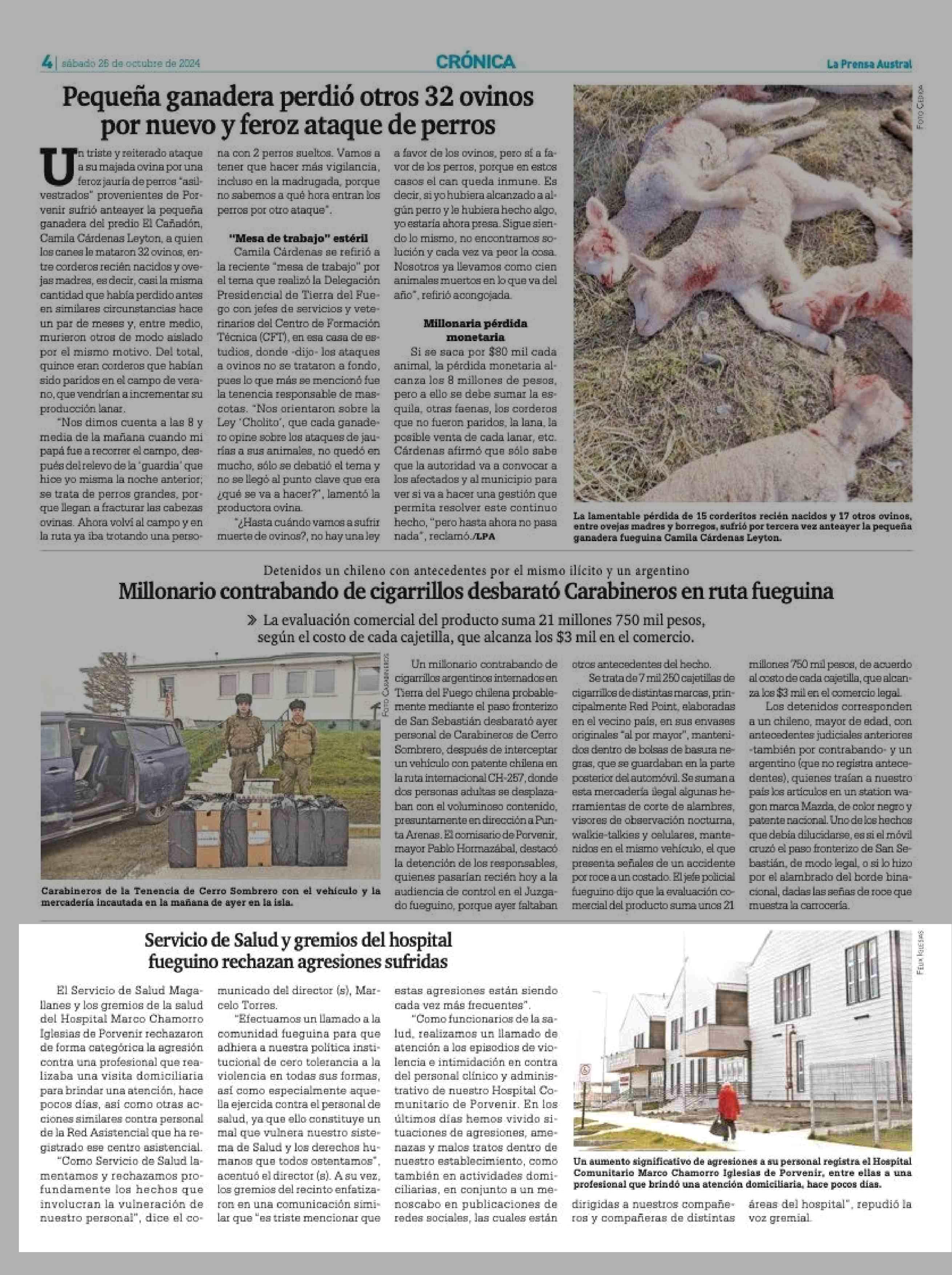 Servicio de Salud y gremios del hospital fueguino rechazan agresiones sufridas 26-10-2024 La Prensa Austral |
