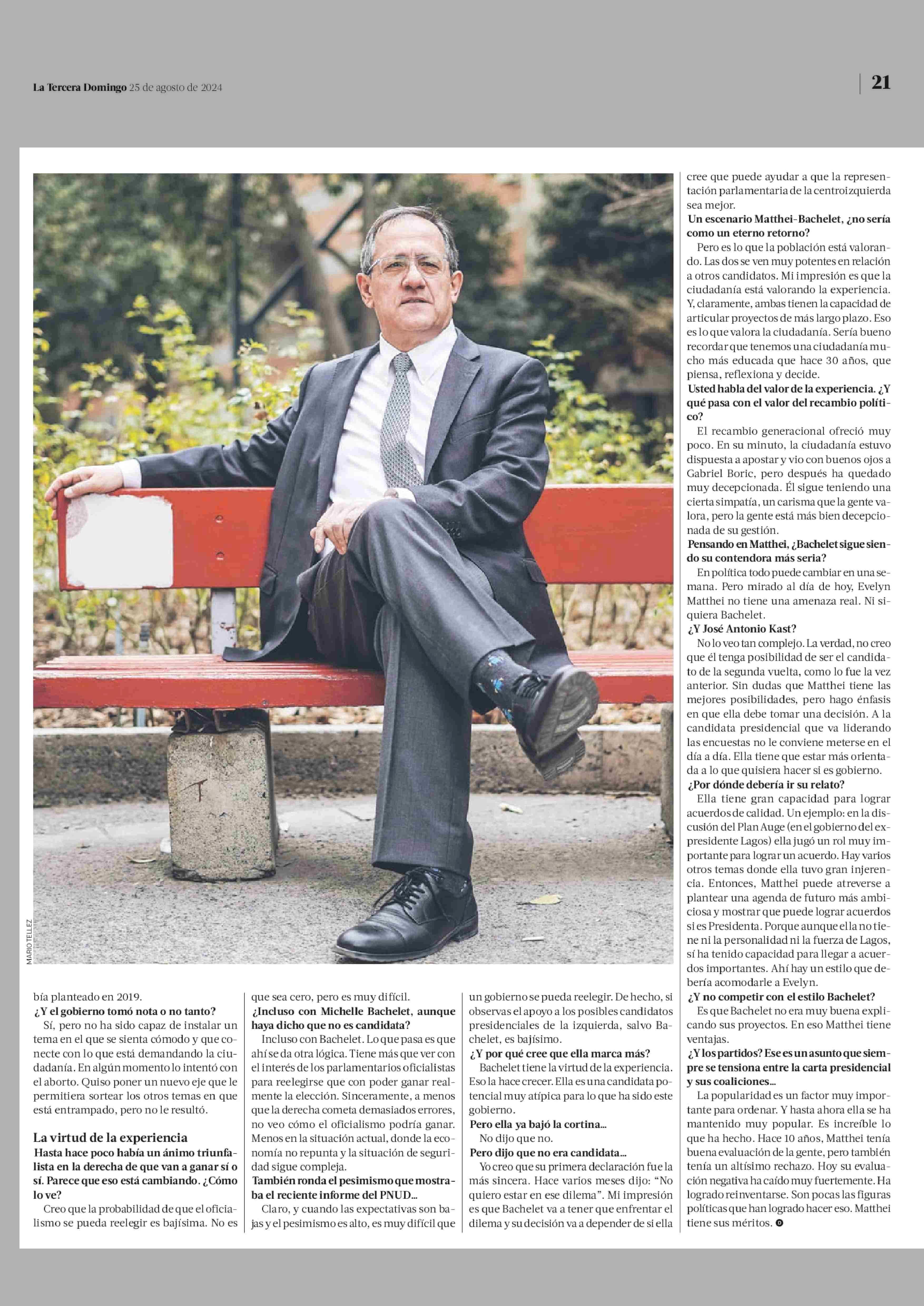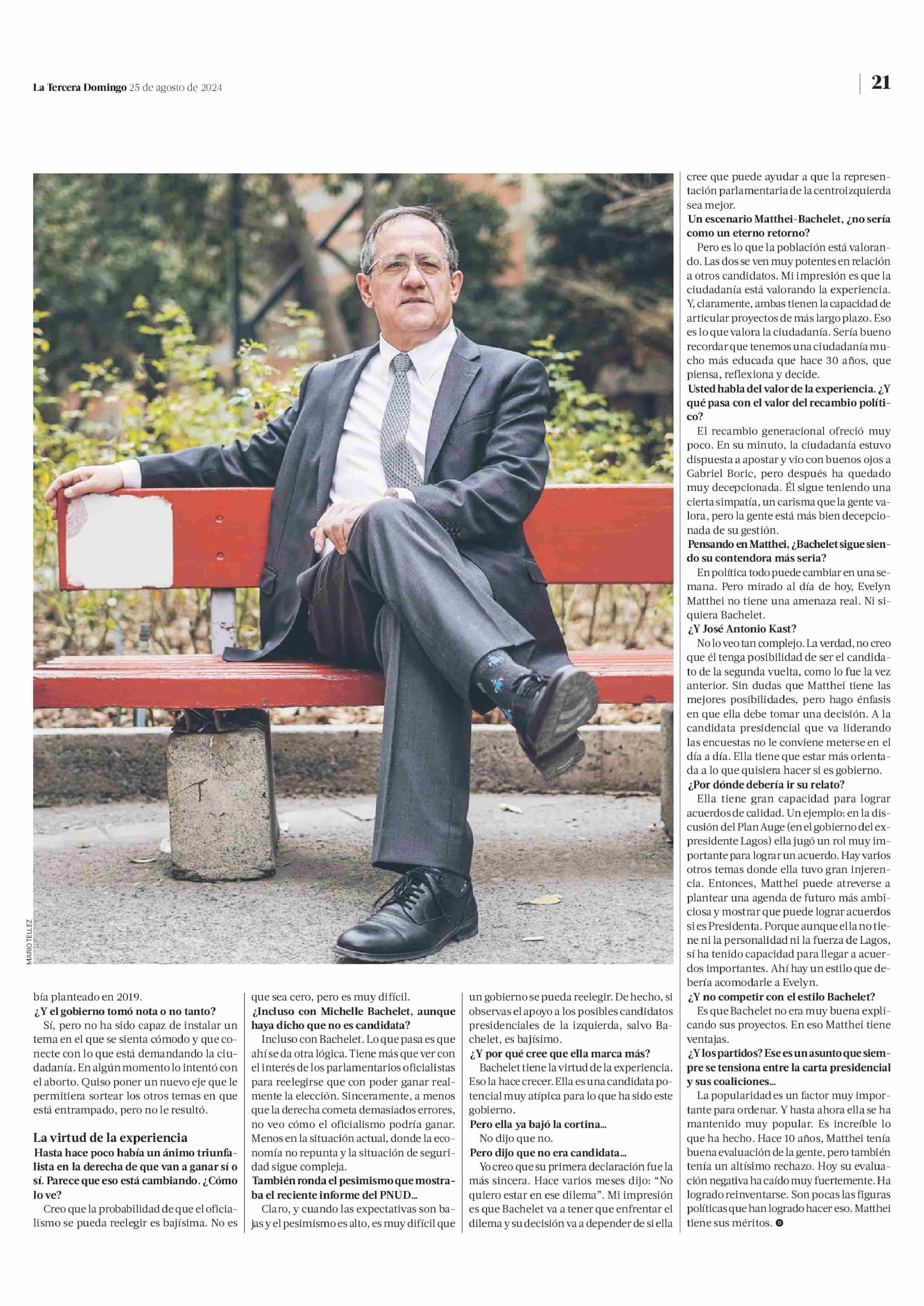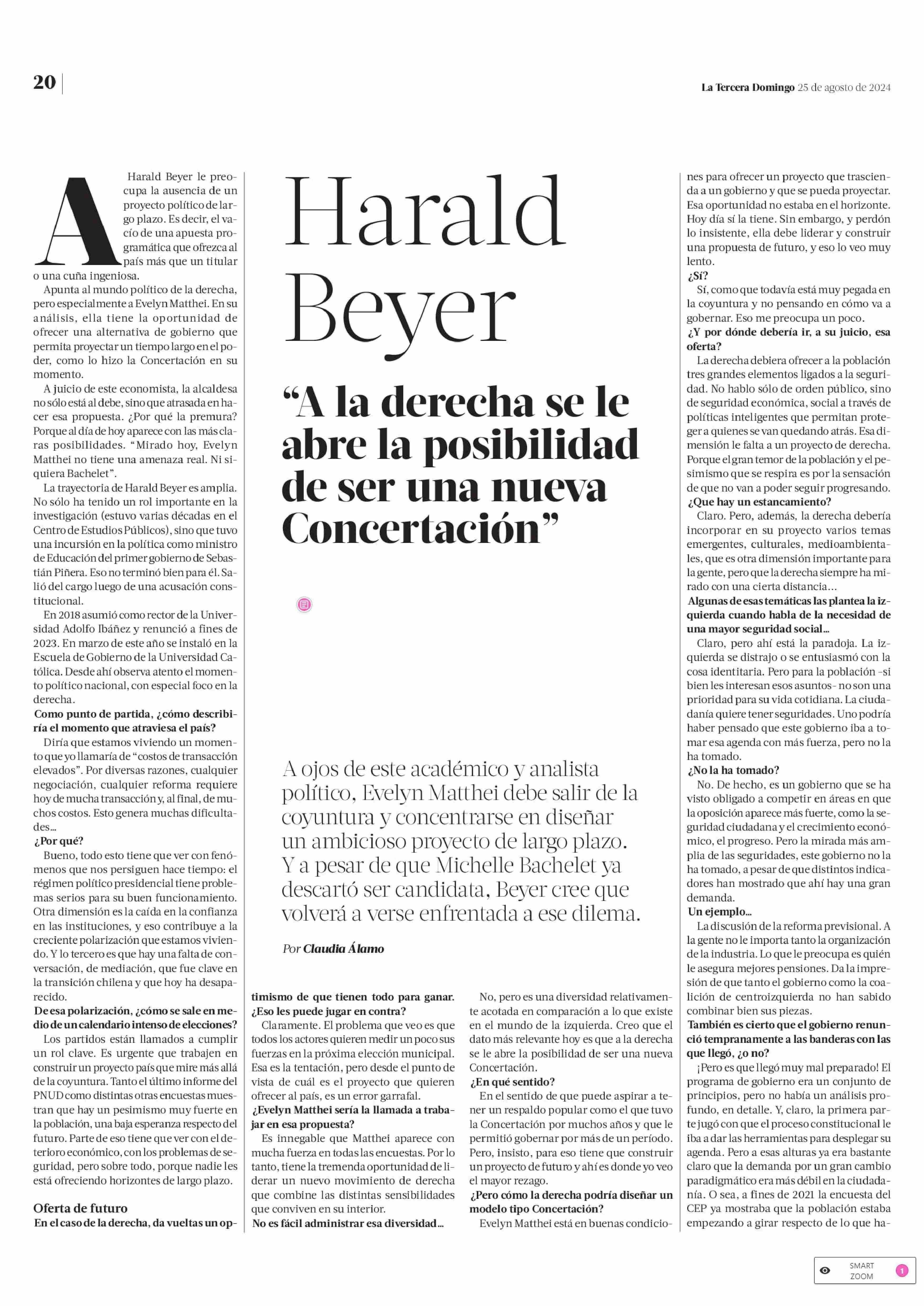 Harald Beyer “A la derecha se le abre la posibilidad de ser una nueva Concertación” 25-08-2024 La Tercera |