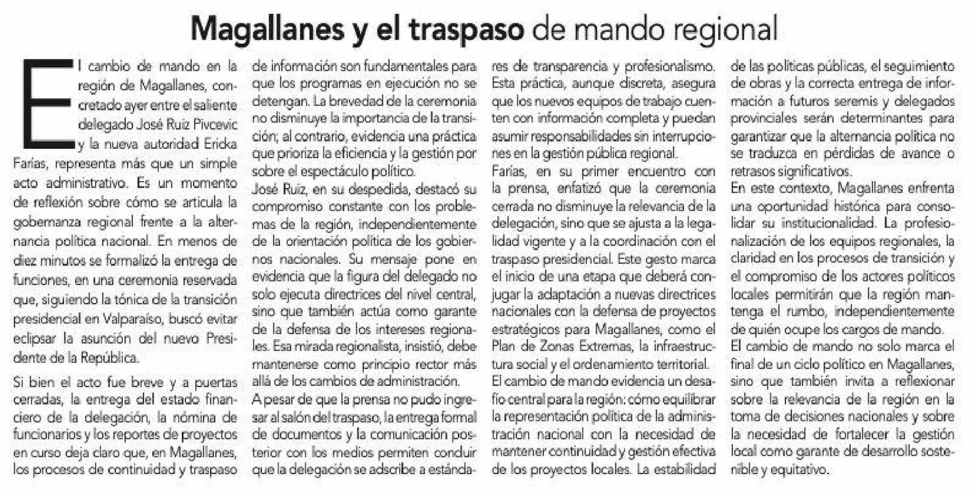 Título: Editorial: Magallanes y el traspaso de mando regional