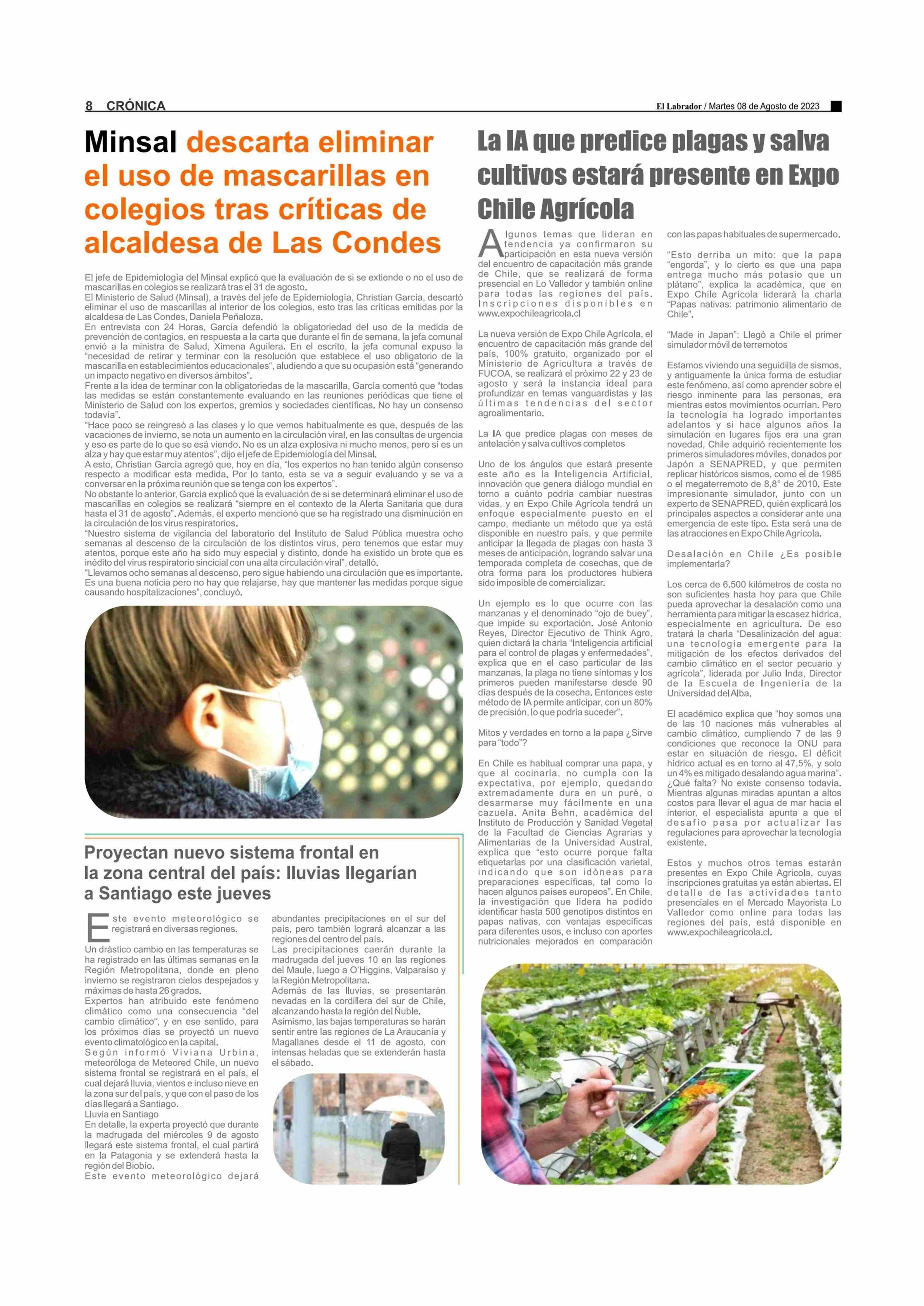 | Fecha: | 08-08-2023 | Sector: | Noticia general | Región: | Región Metropolitana de Santiago |