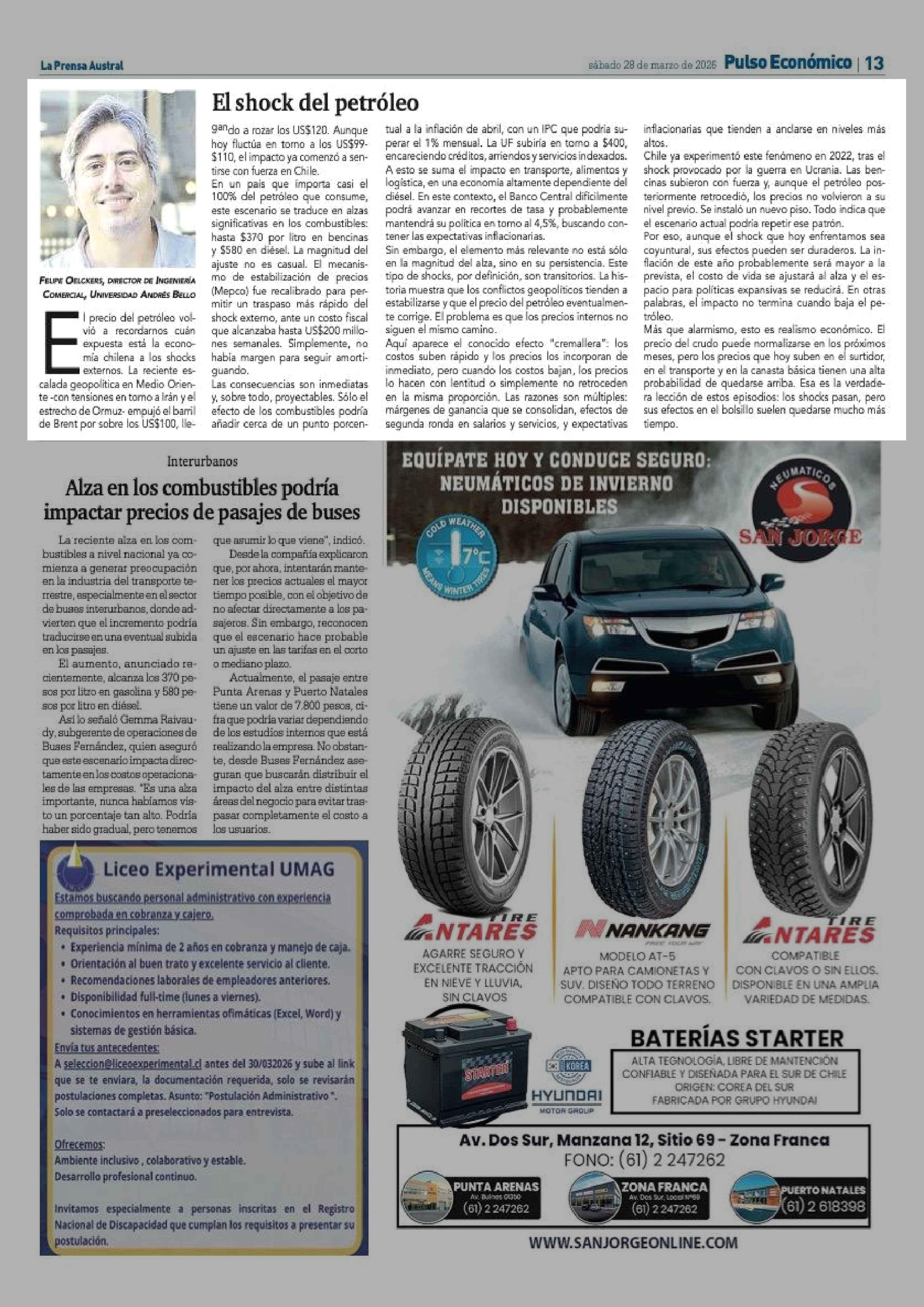 Columnas de Opinión: El shock del petróleo 28-03-2026 La Prensa Austral |