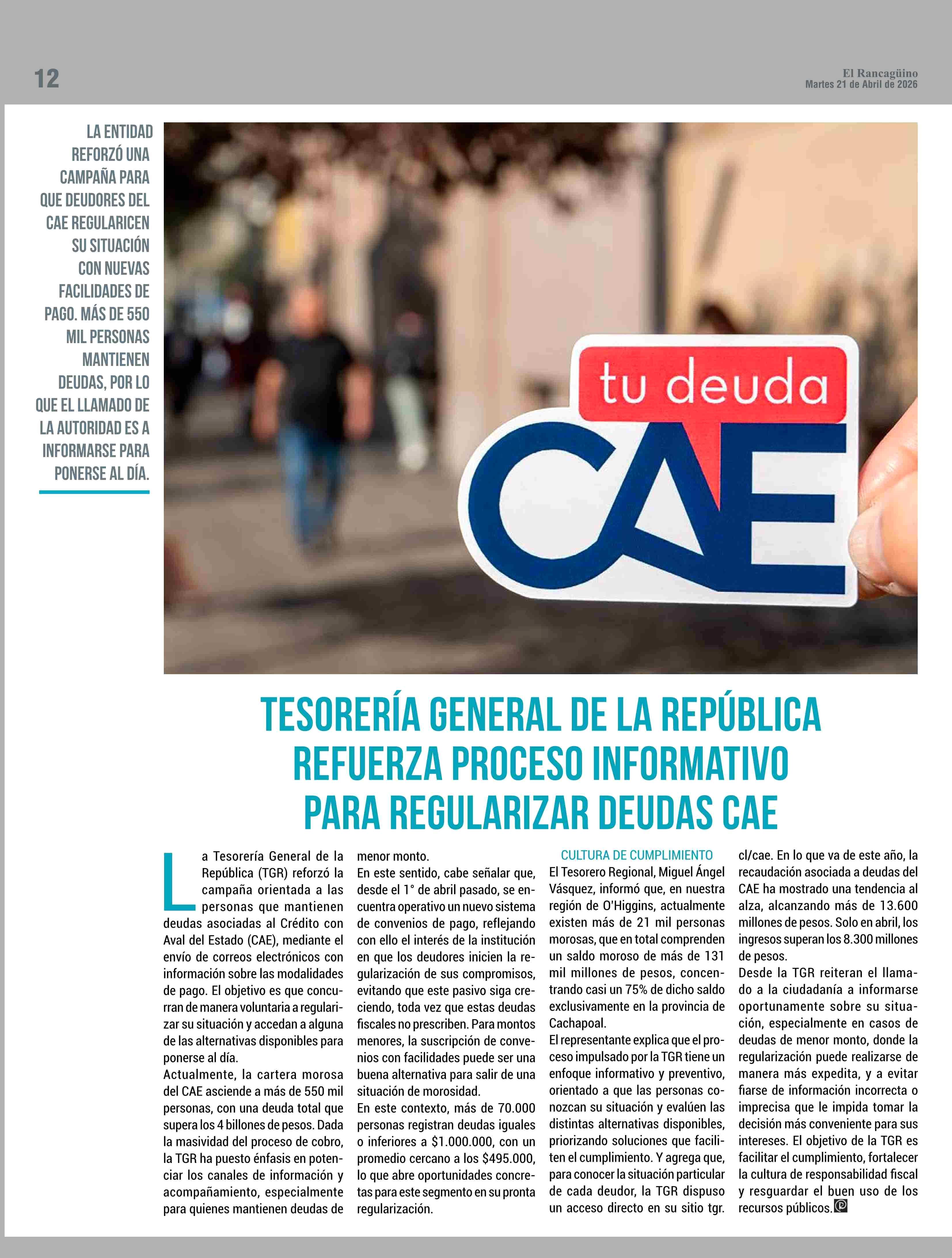 Fecha: 21-04-2026 Sector: Noticia general Región: Región del Libertador General Bernardo O'Higgins