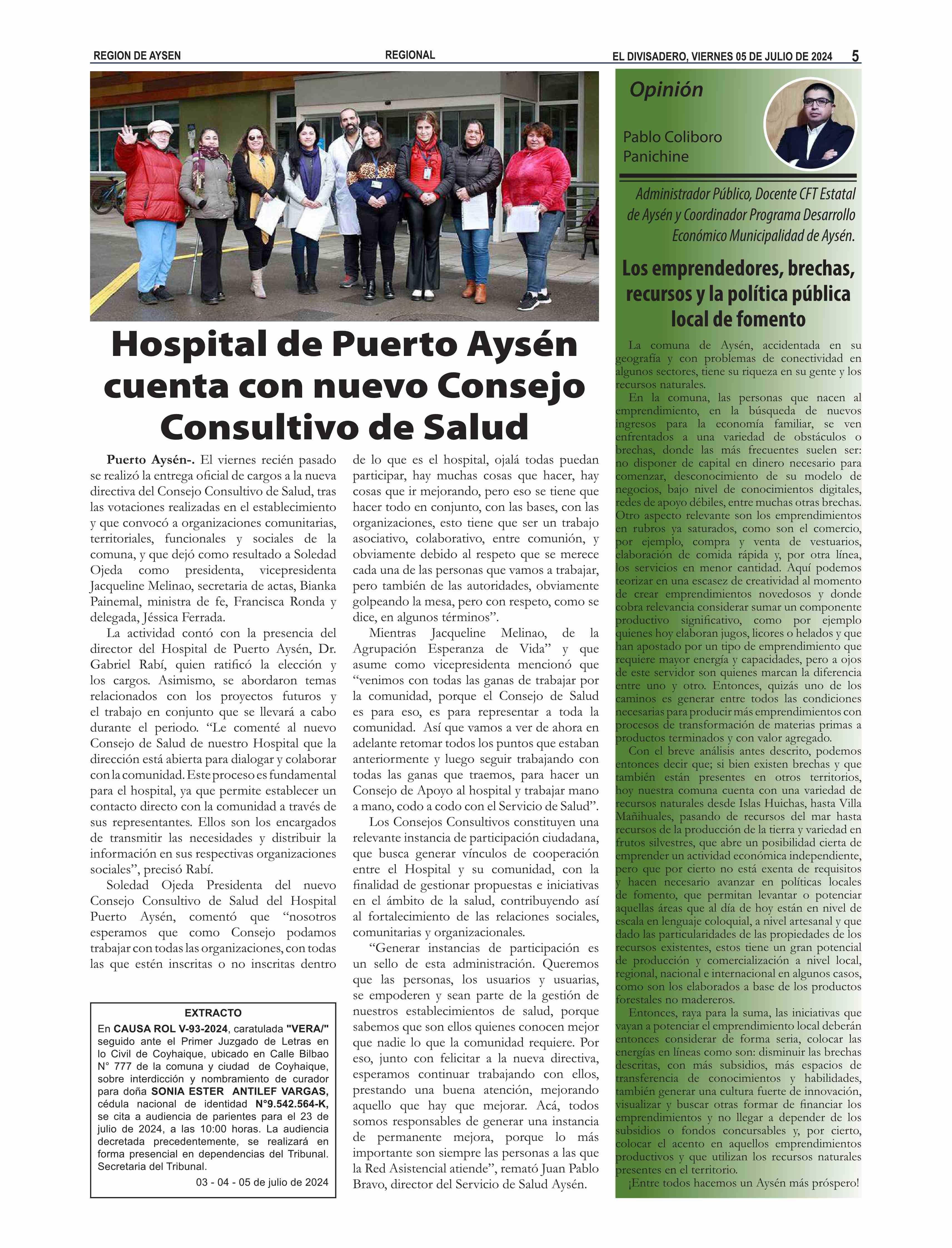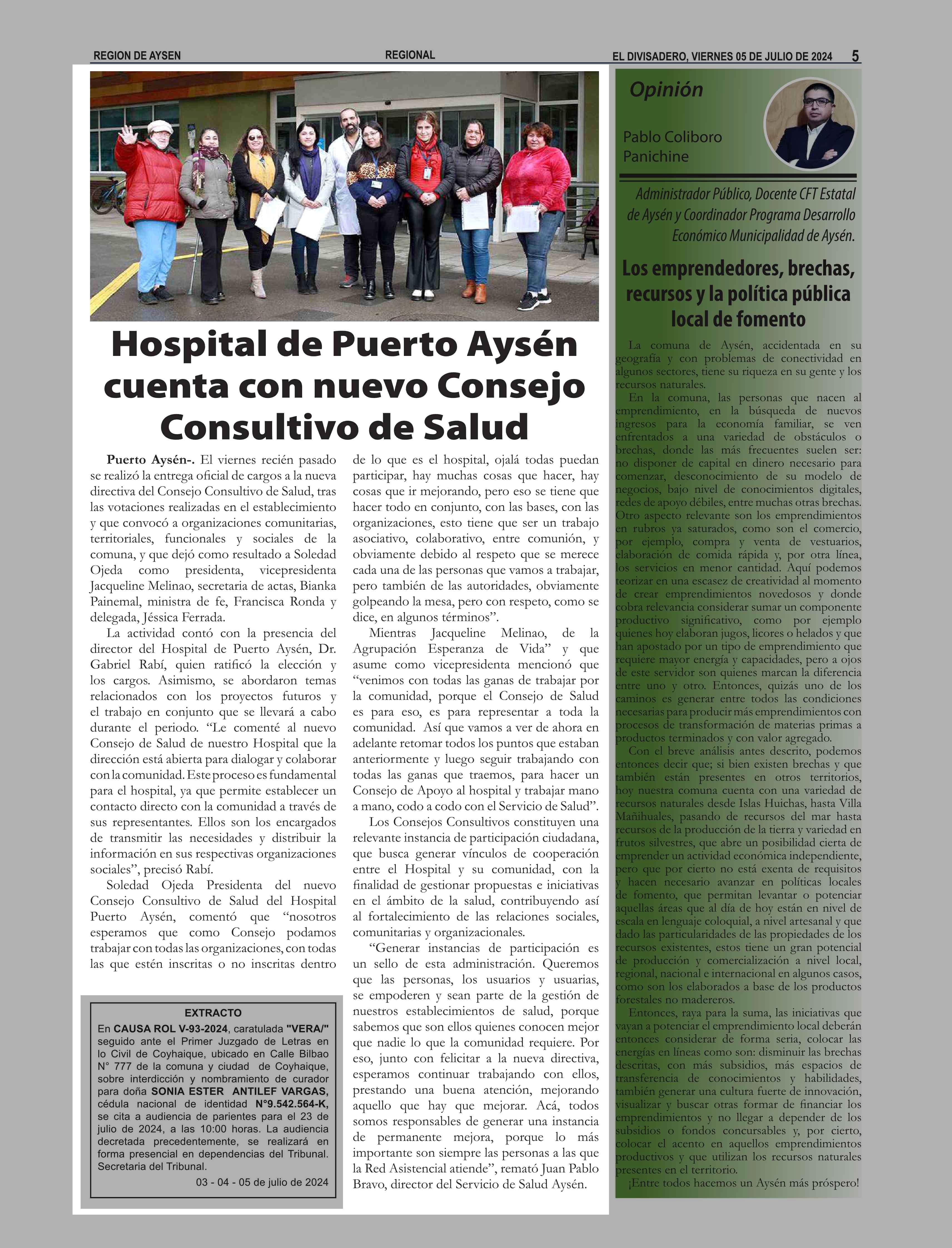 | Fecha: | 05-07-2024 | Sector: | Noticia general | Región: | Región Aysén del General Carlos Ibáñez del Campo |