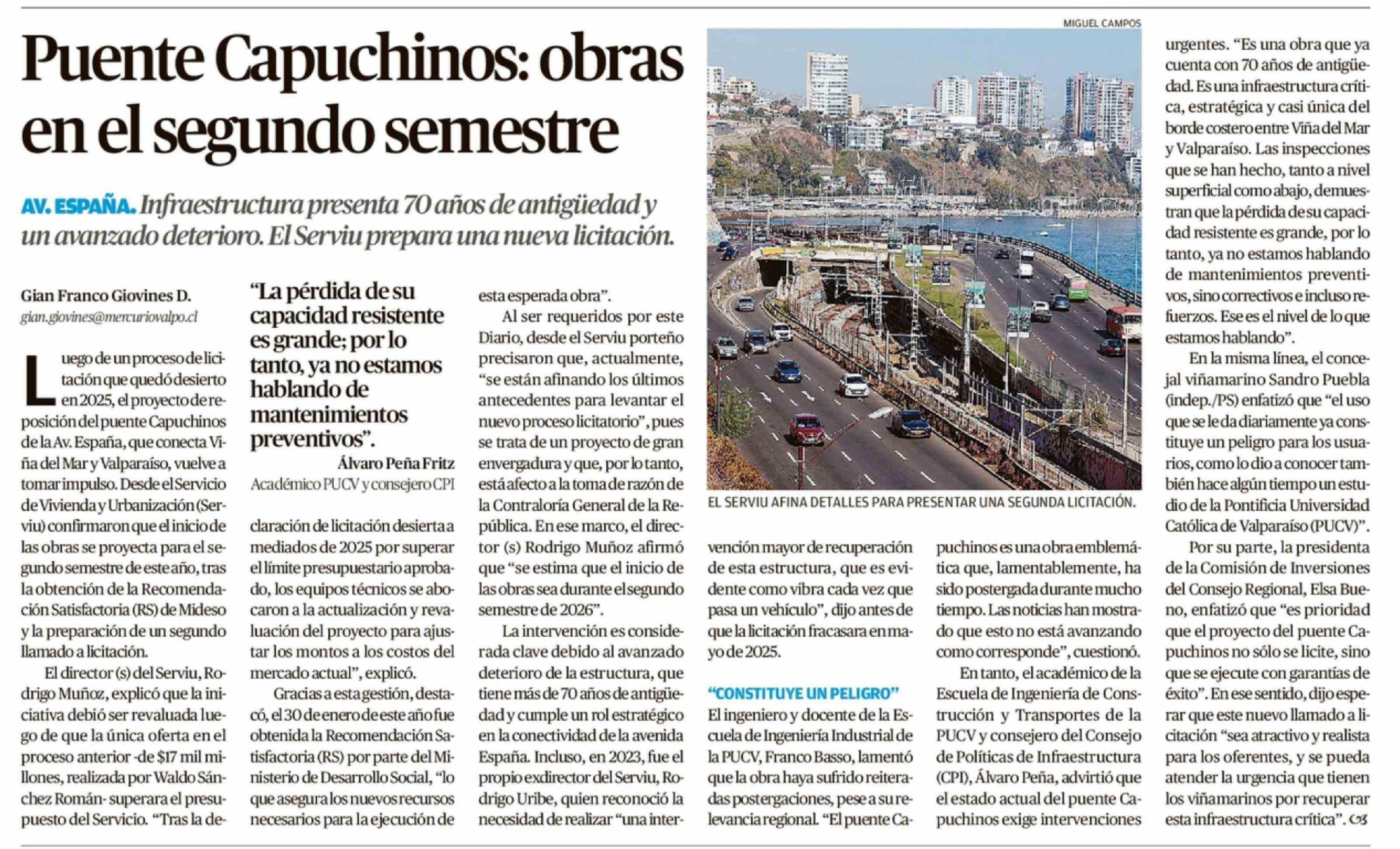 Puente Capuchinos: obras en el segundo semestre 03-04-2026 El Mercurio de Valparaíso |