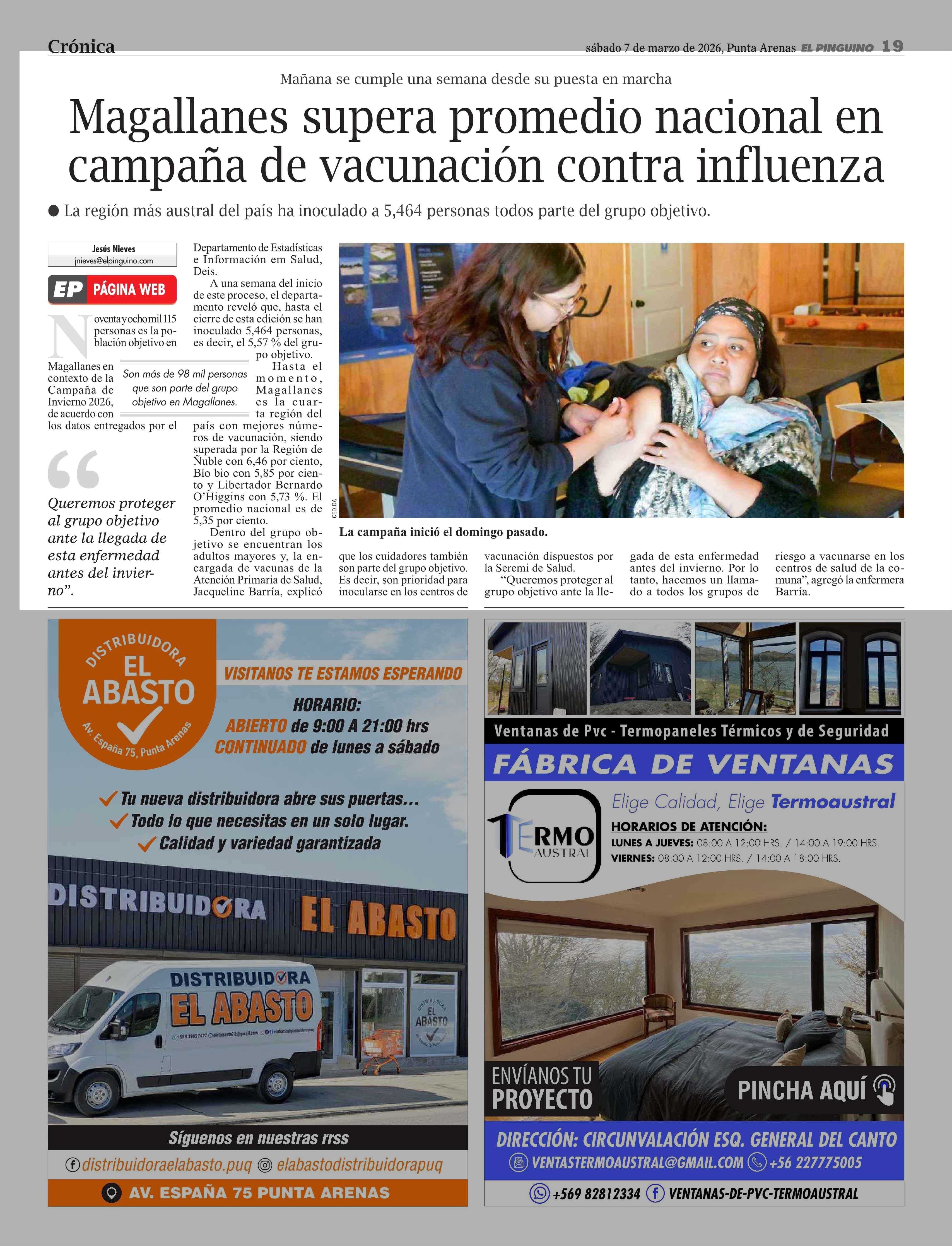 Magallanes supera promedio nacional en campaña de vacunación contra influenza 07-03-2026 El Pingüino |