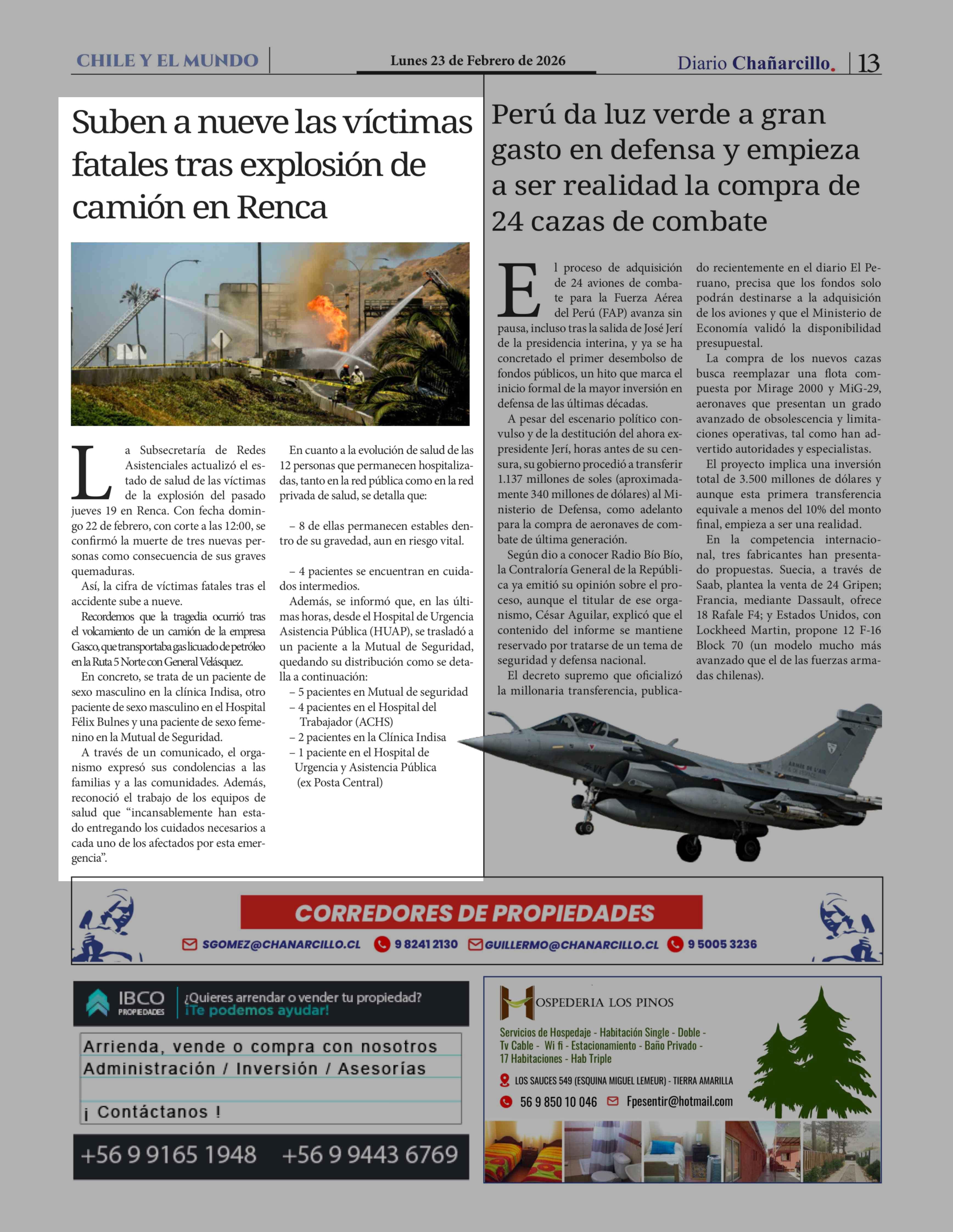 Suben a nueve las víctimas fatales tras explosión de camión en Renca 23-02-2026 Diario Chañarcillo |