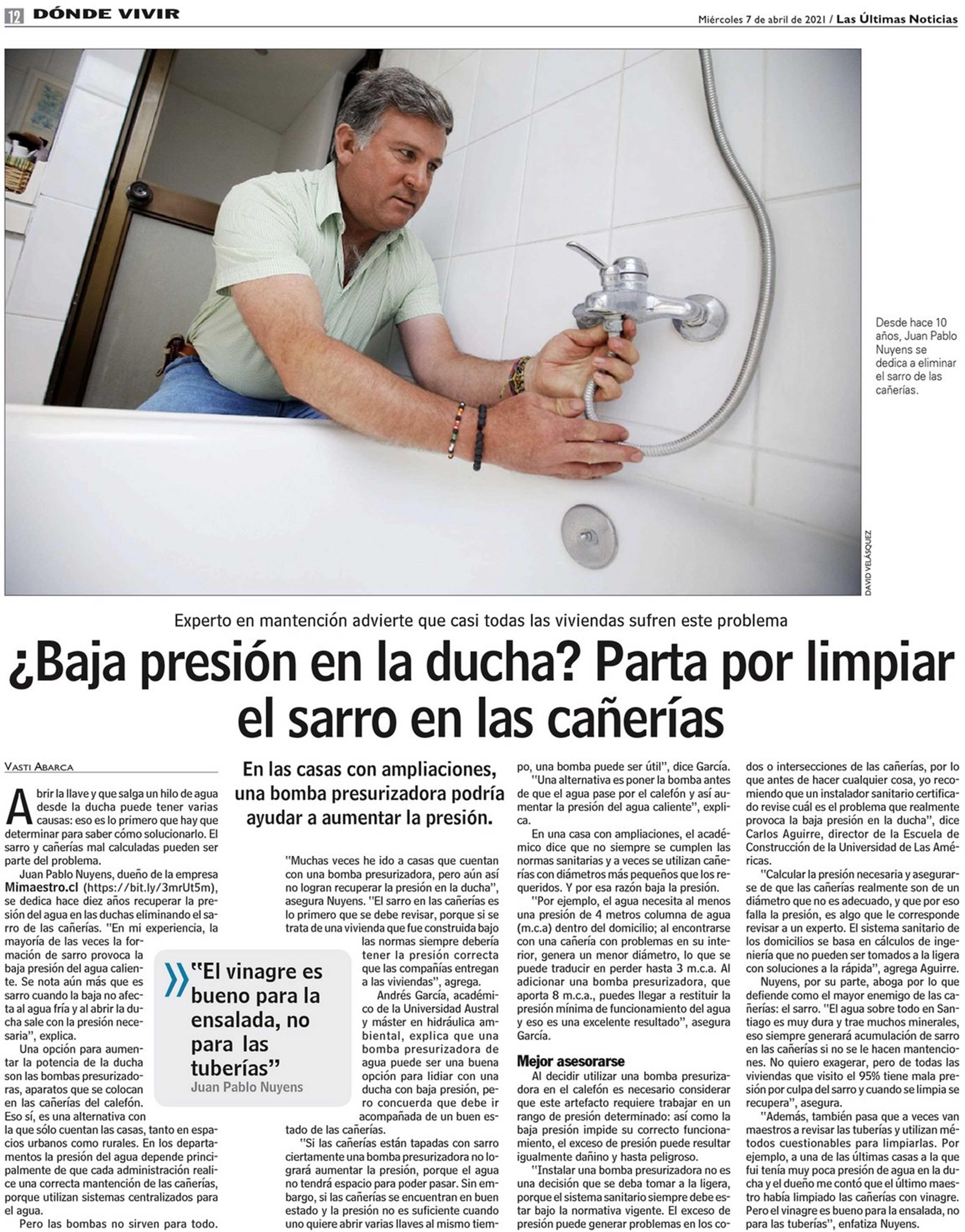 ¿ Baja presión en la ducha? Parta por limpiar el sarro en las cañerias 07-04-2021 Las Últimas Noticias |
