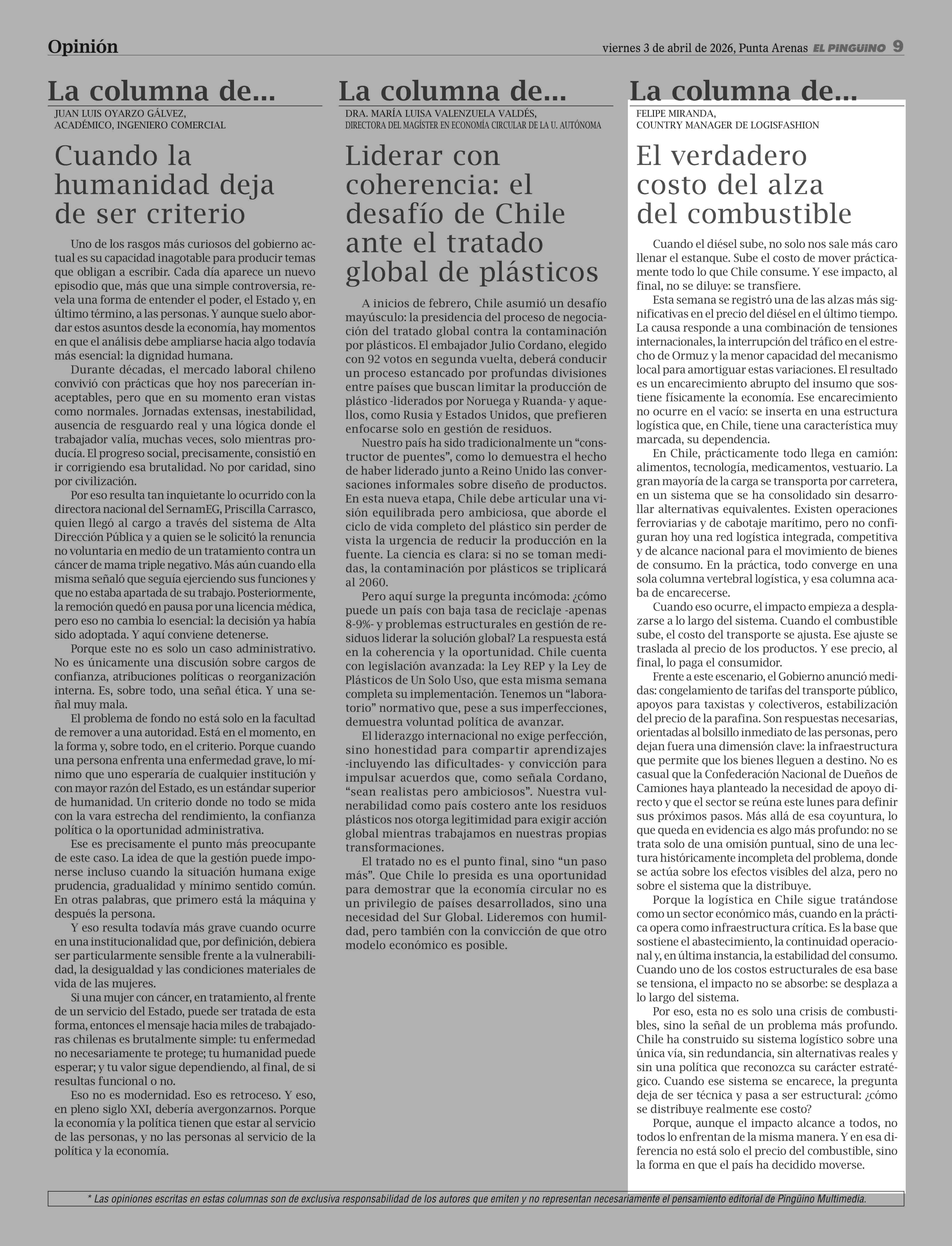 Fecha: 03-04-2026 Sector: Columnas de Opinión Región: Región de Magallanes y de la Antártica Chilena