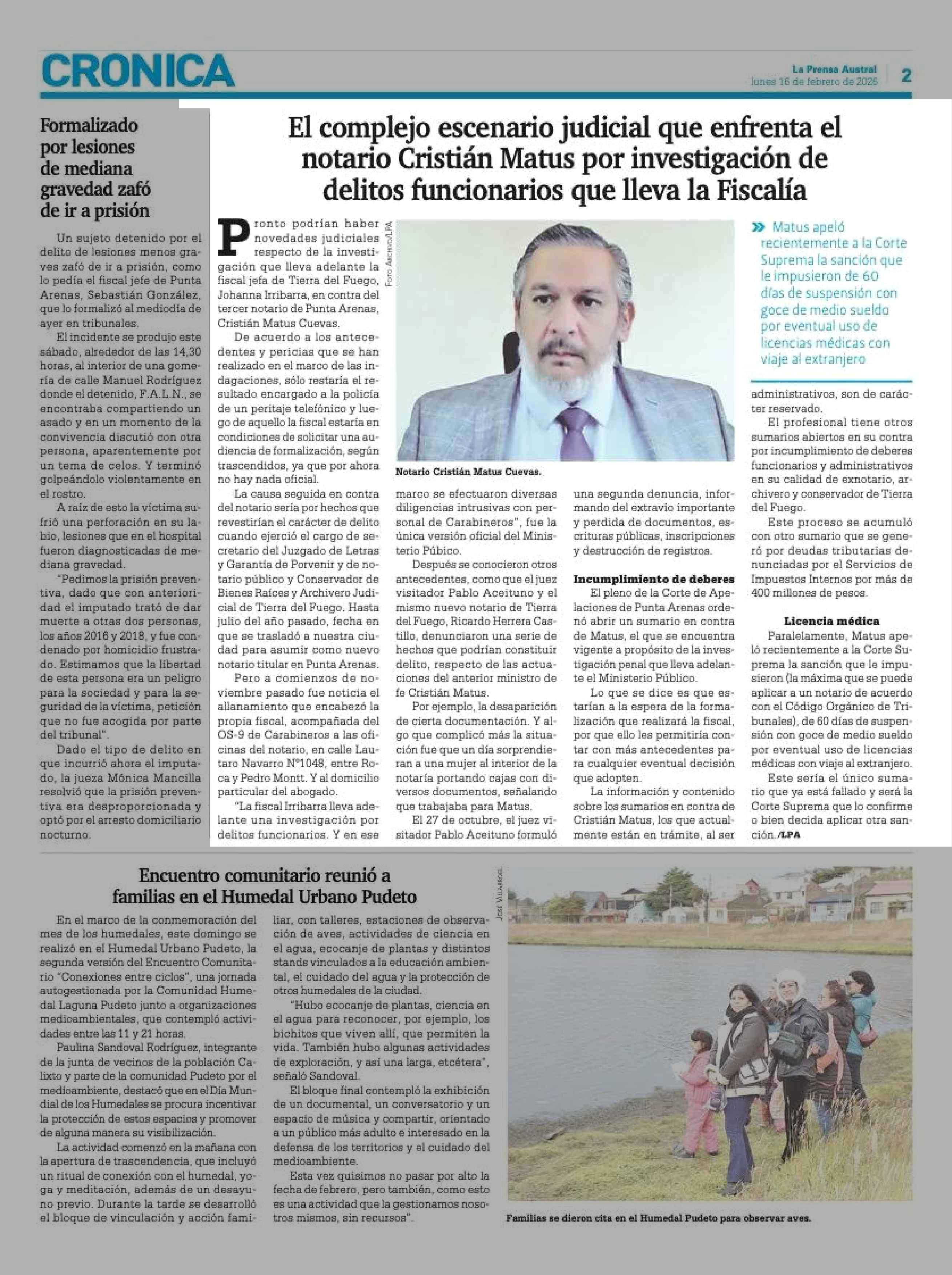 16-02-2026 La Prensa Austral
