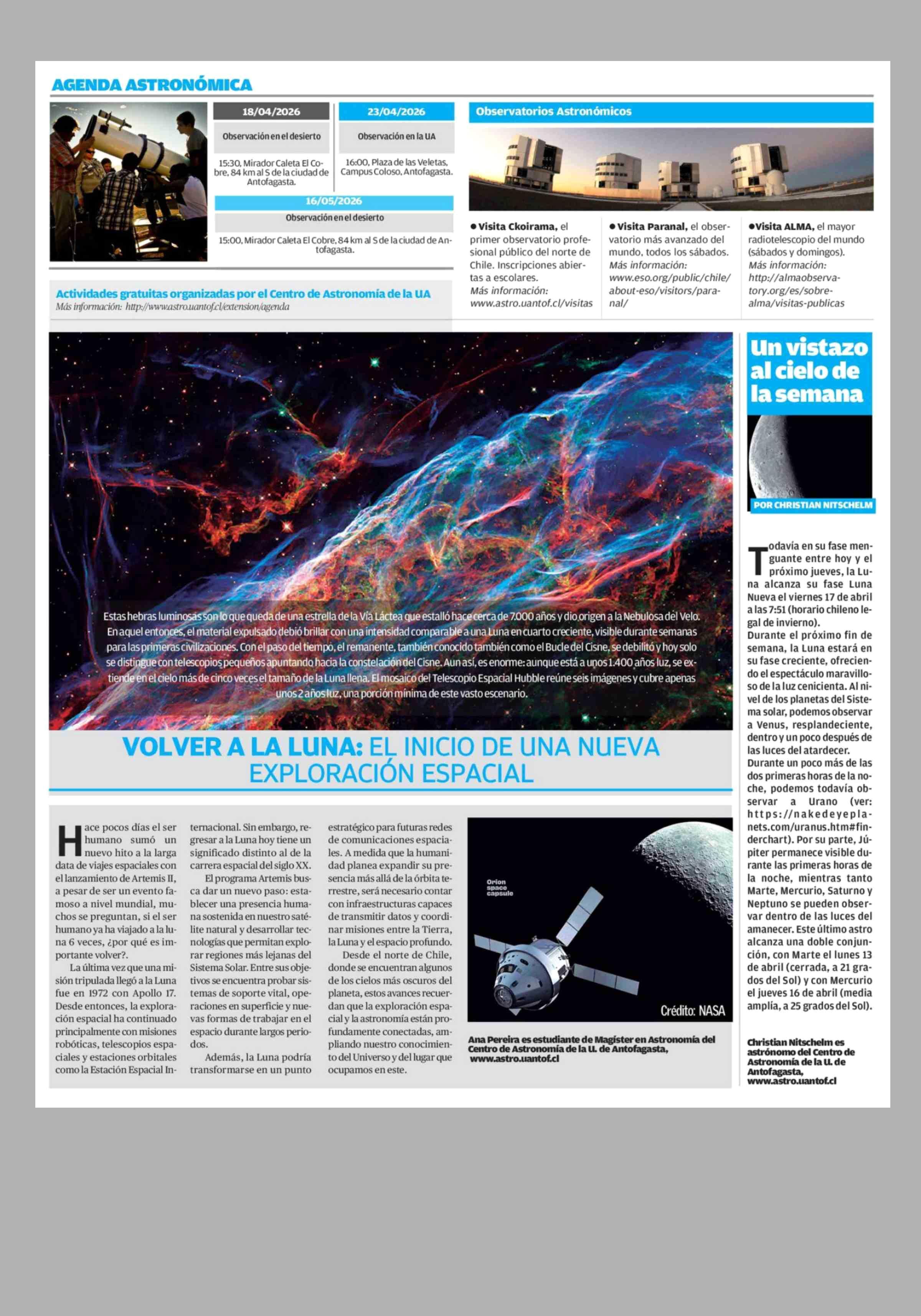 AGENDA ASTRONÓMICA 12-04-2026 El Mercurio de Antofagasta |