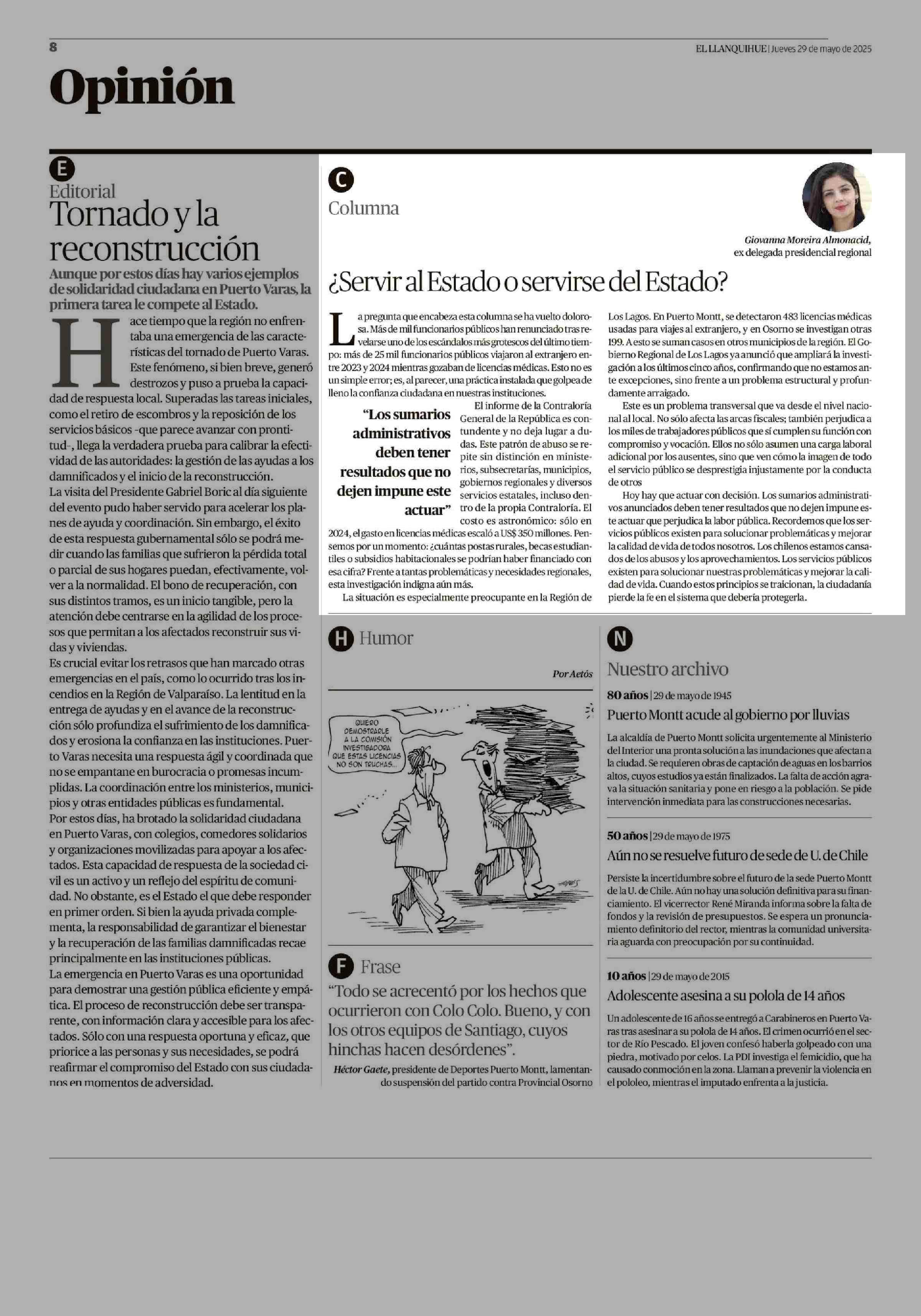 | Fecha: | 29-05-2025 | Sector: | Columnas de Opinión | Región: | Región de Los Lagos |