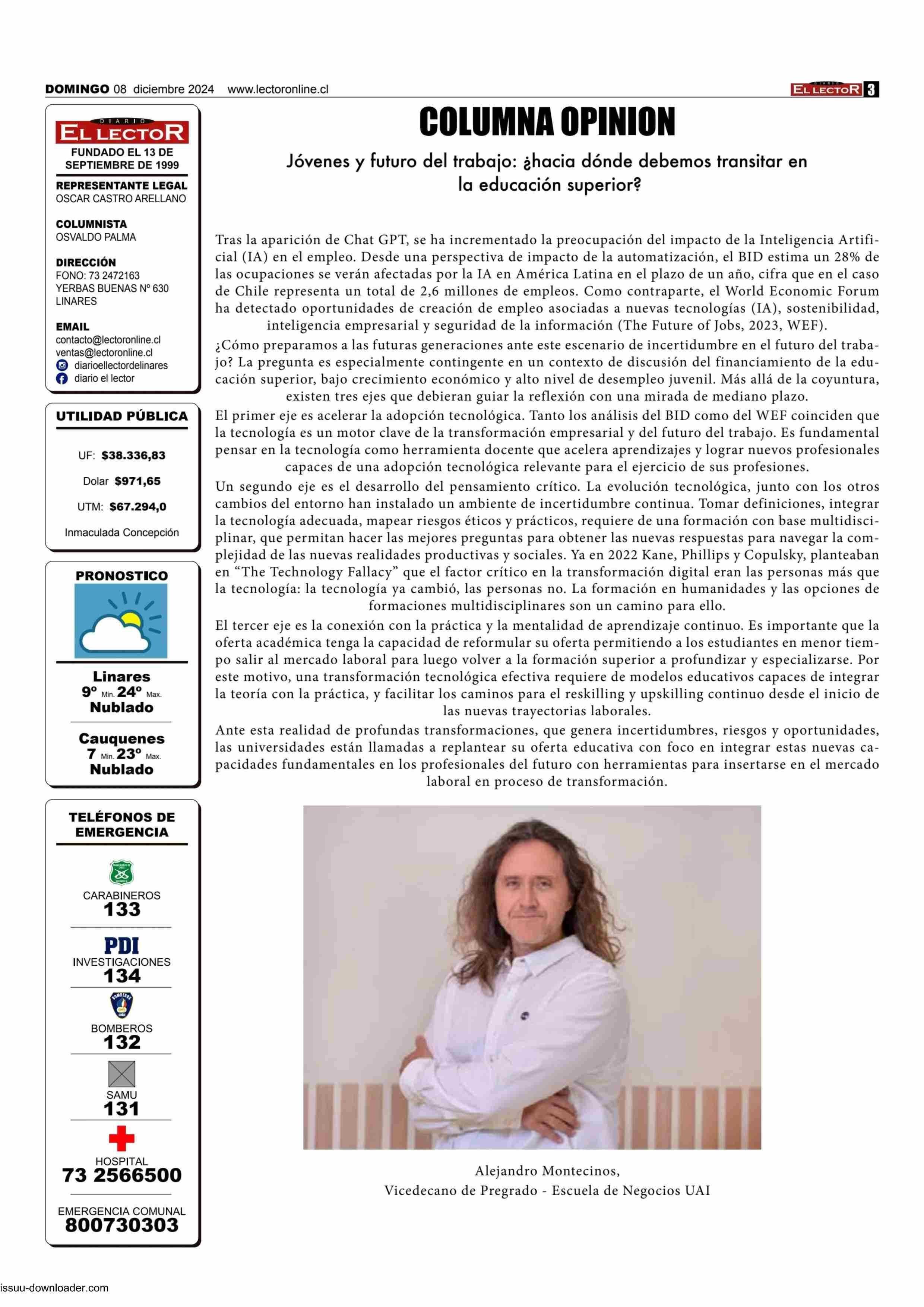 COLUMNAS DE OPINIÓN: Jóvenes y futuro del trabajo: ¿hacia dónde debemos transitar en la educación superior? 08-12-2024 El Lector |