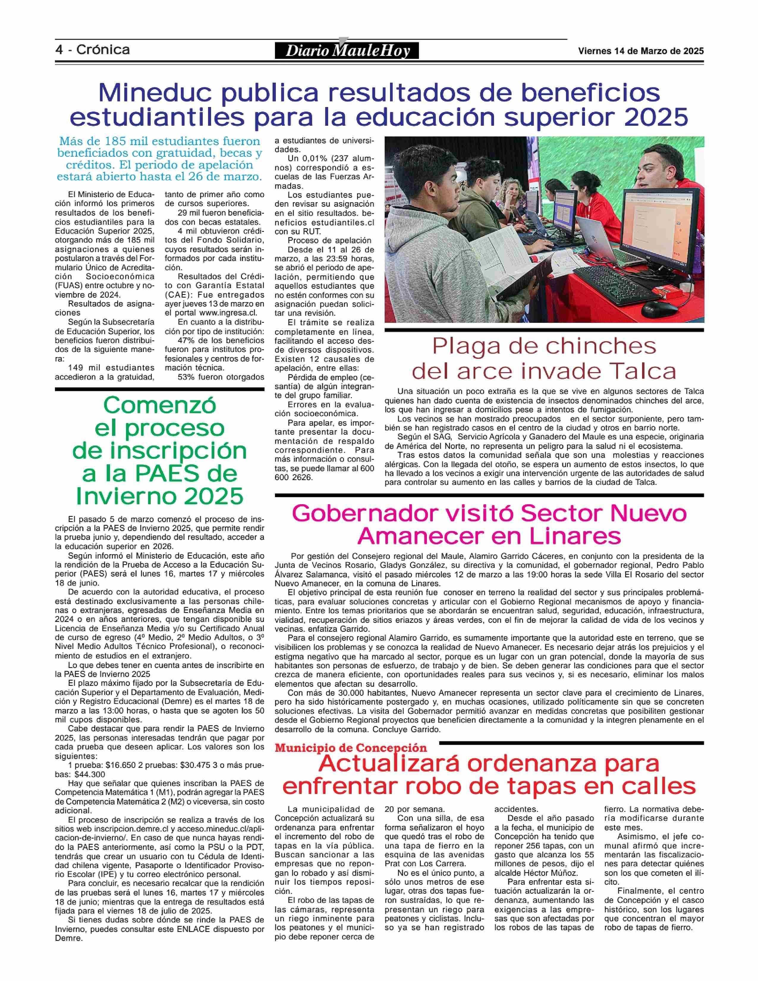 | Fecha: | 14-03-2025 | Sector: | Noticia general | Región: | Región del Maule |