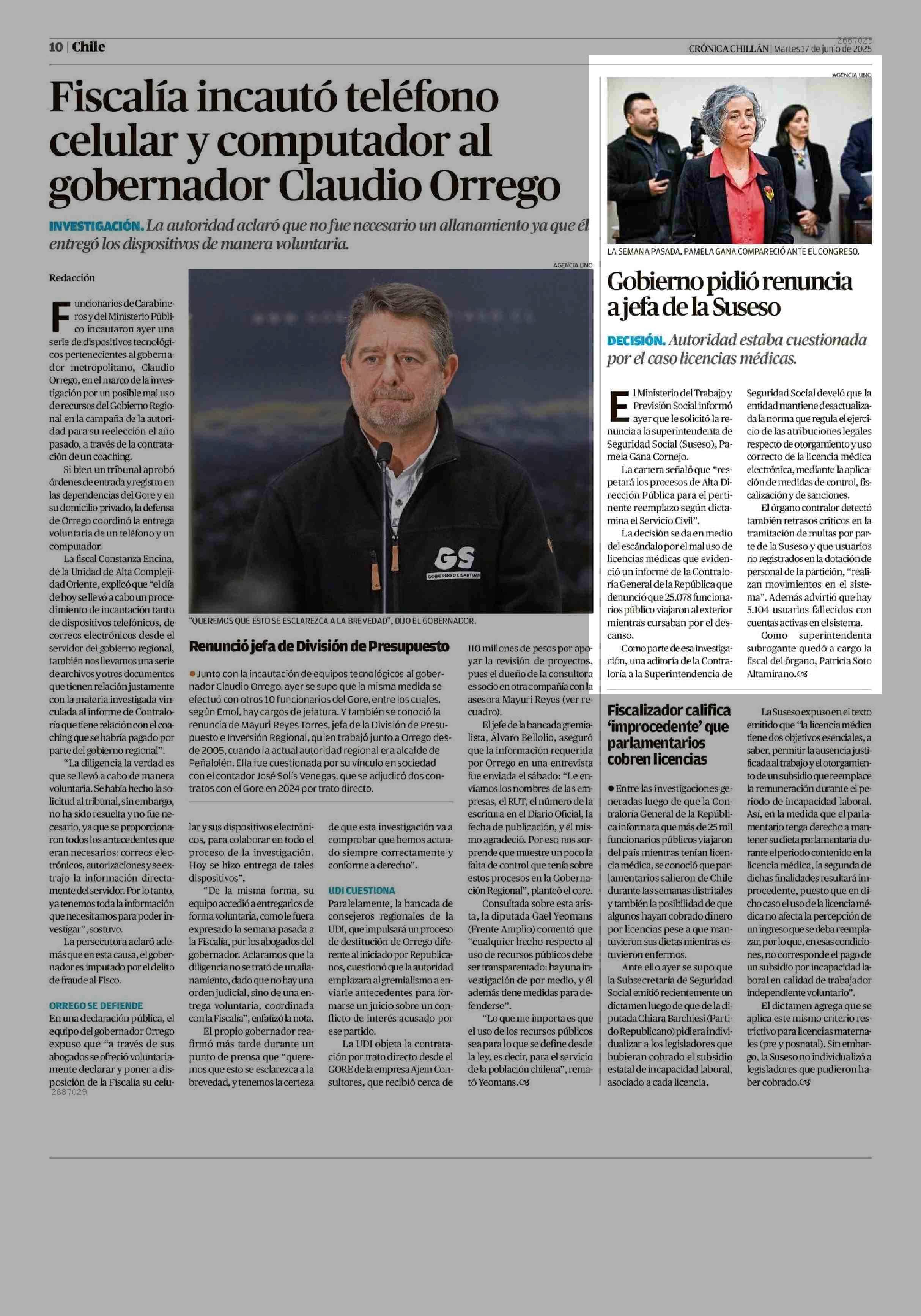 Gobierno pidió renuncia a jefa de la Suseso 17-06-2025 Crónica de Chillán |