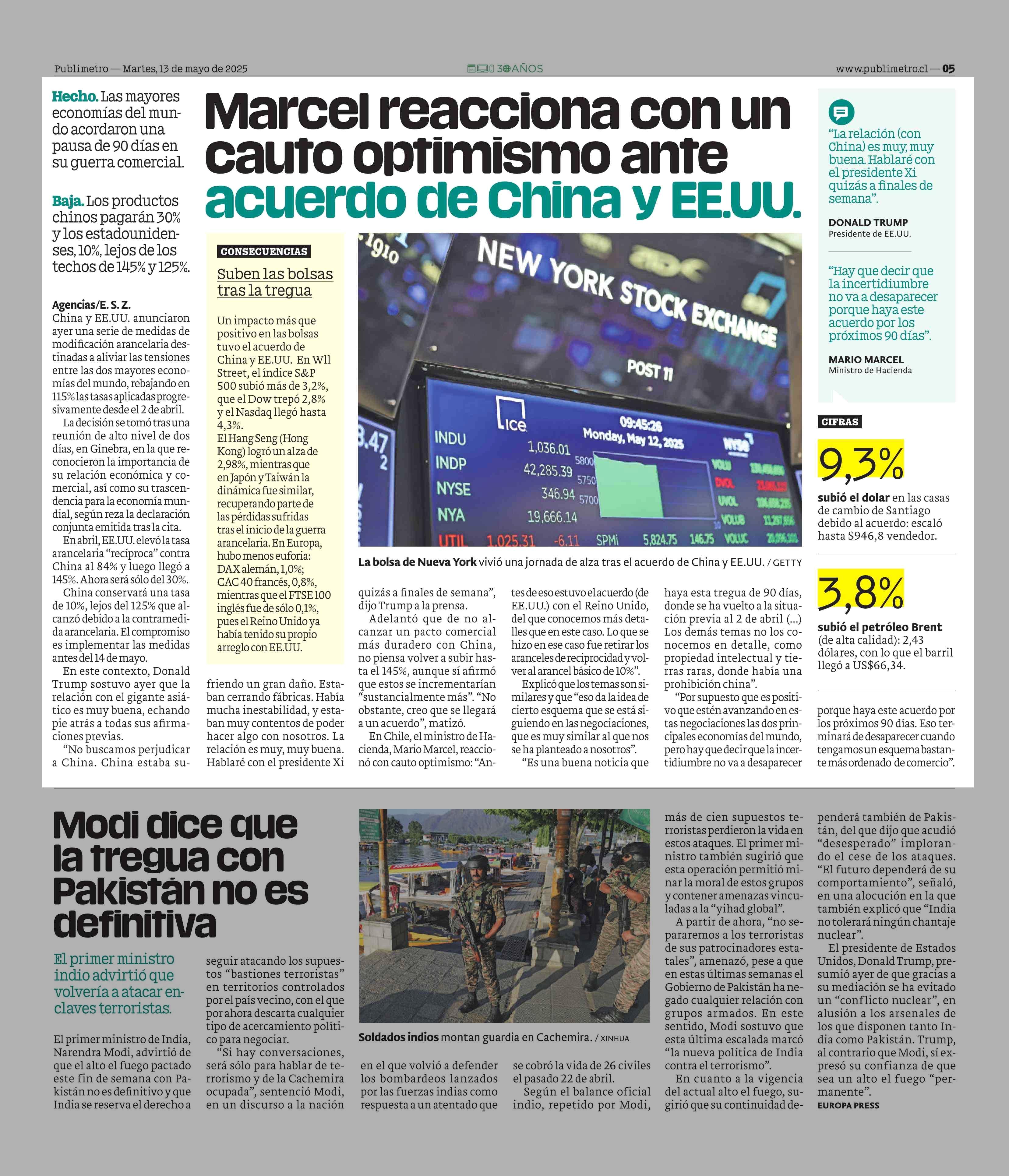 Marcel reacciona con un cauto optimismo ante acuerdo de China y EE.UU. 13-05-2025 Publimetro |