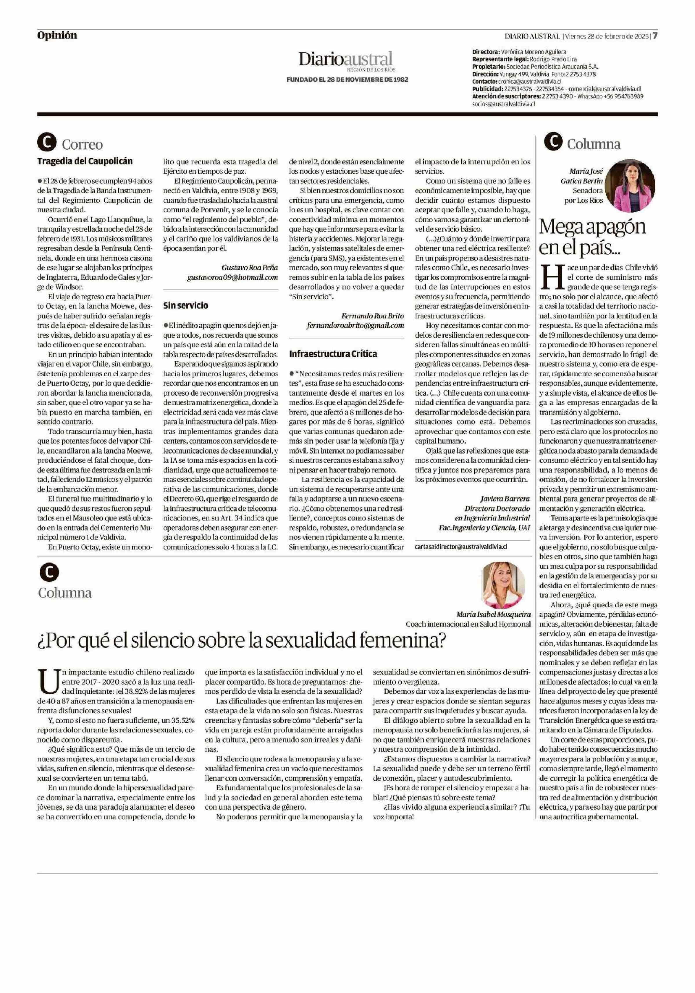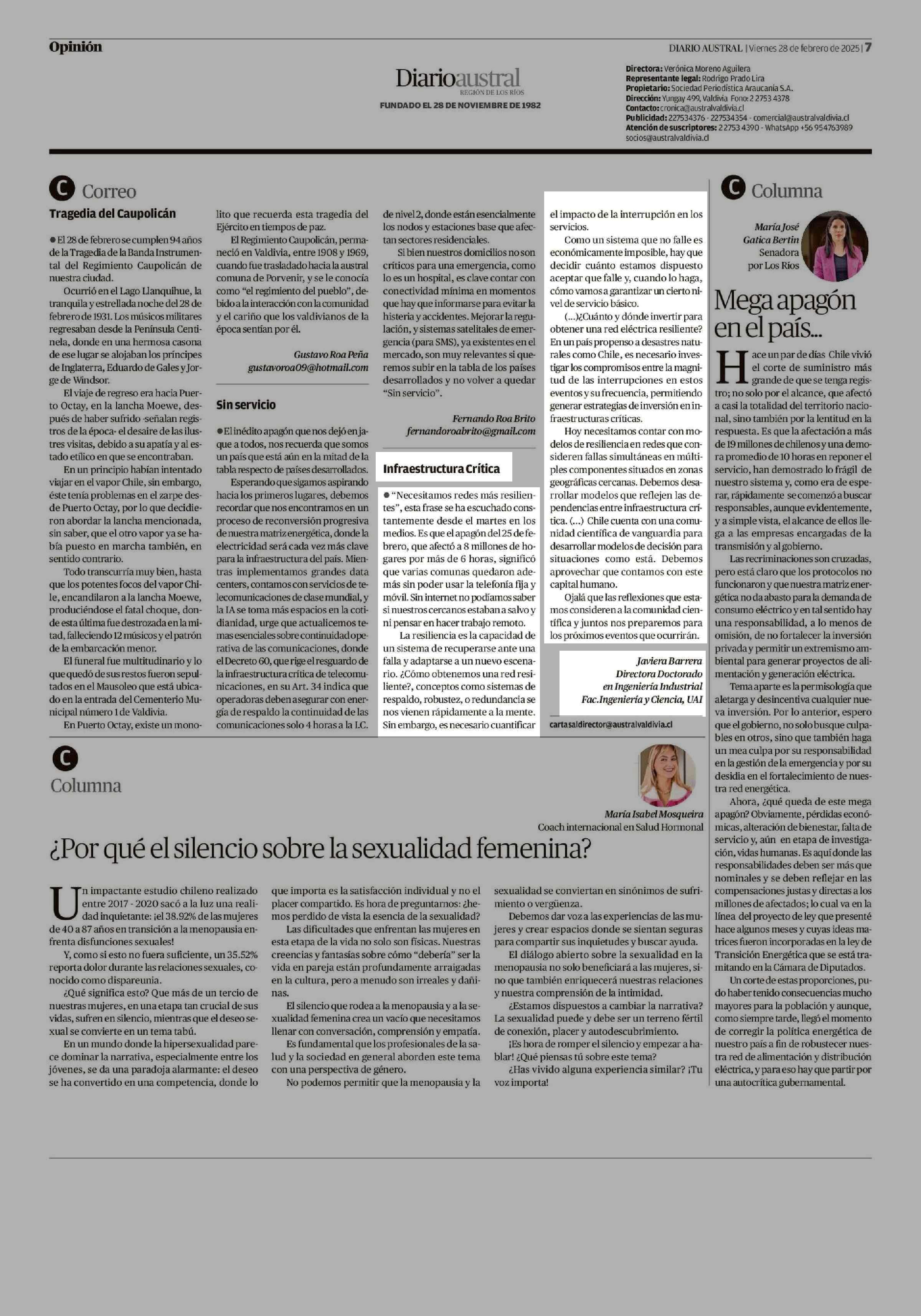 Infraestructura Crítica 28-02-2025 Diario Austral Región de Los Ríos |