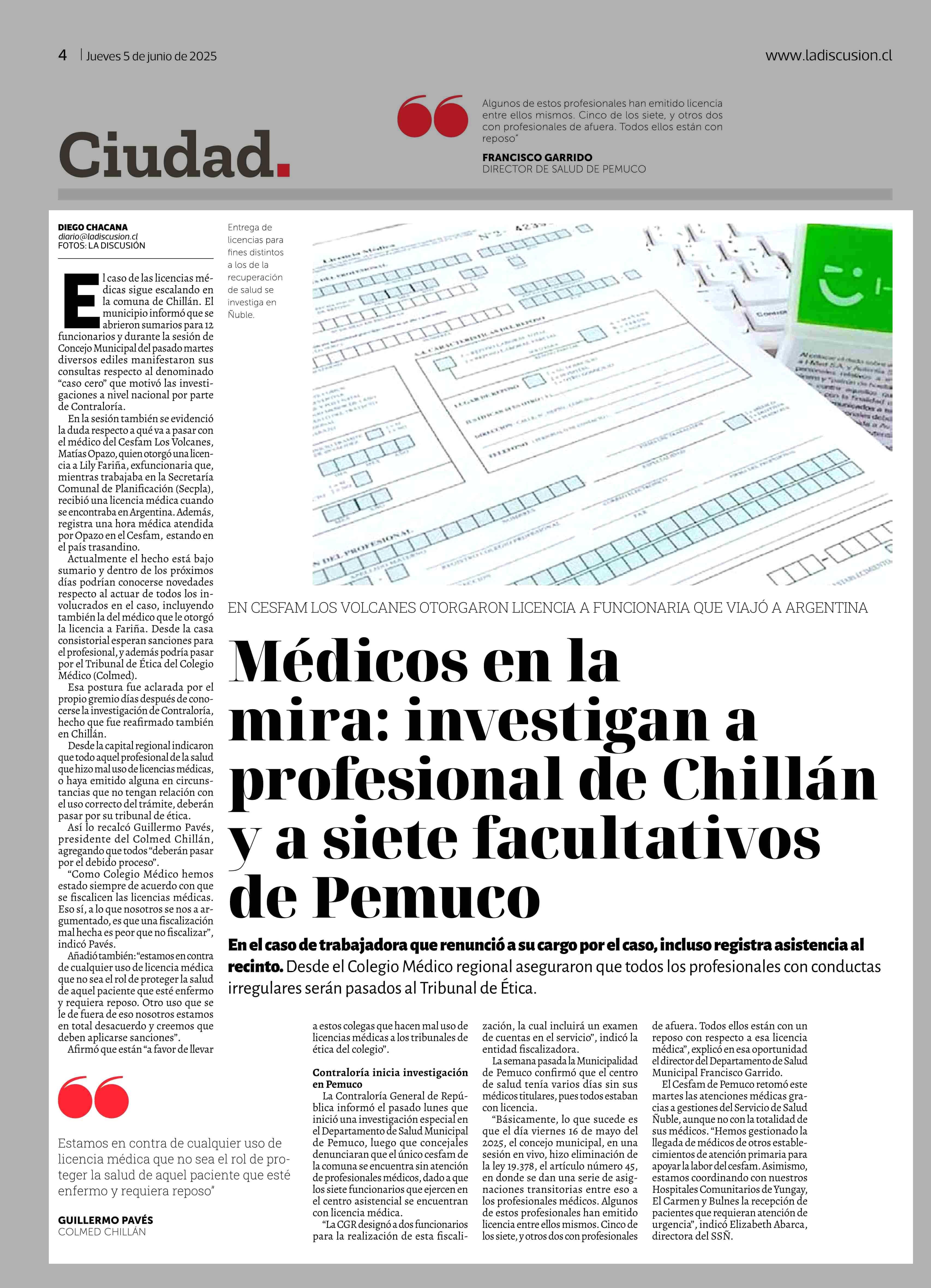Título: Médicos en la mira: investigan a profesional de Chillán y a siete facultativos de Pemuco