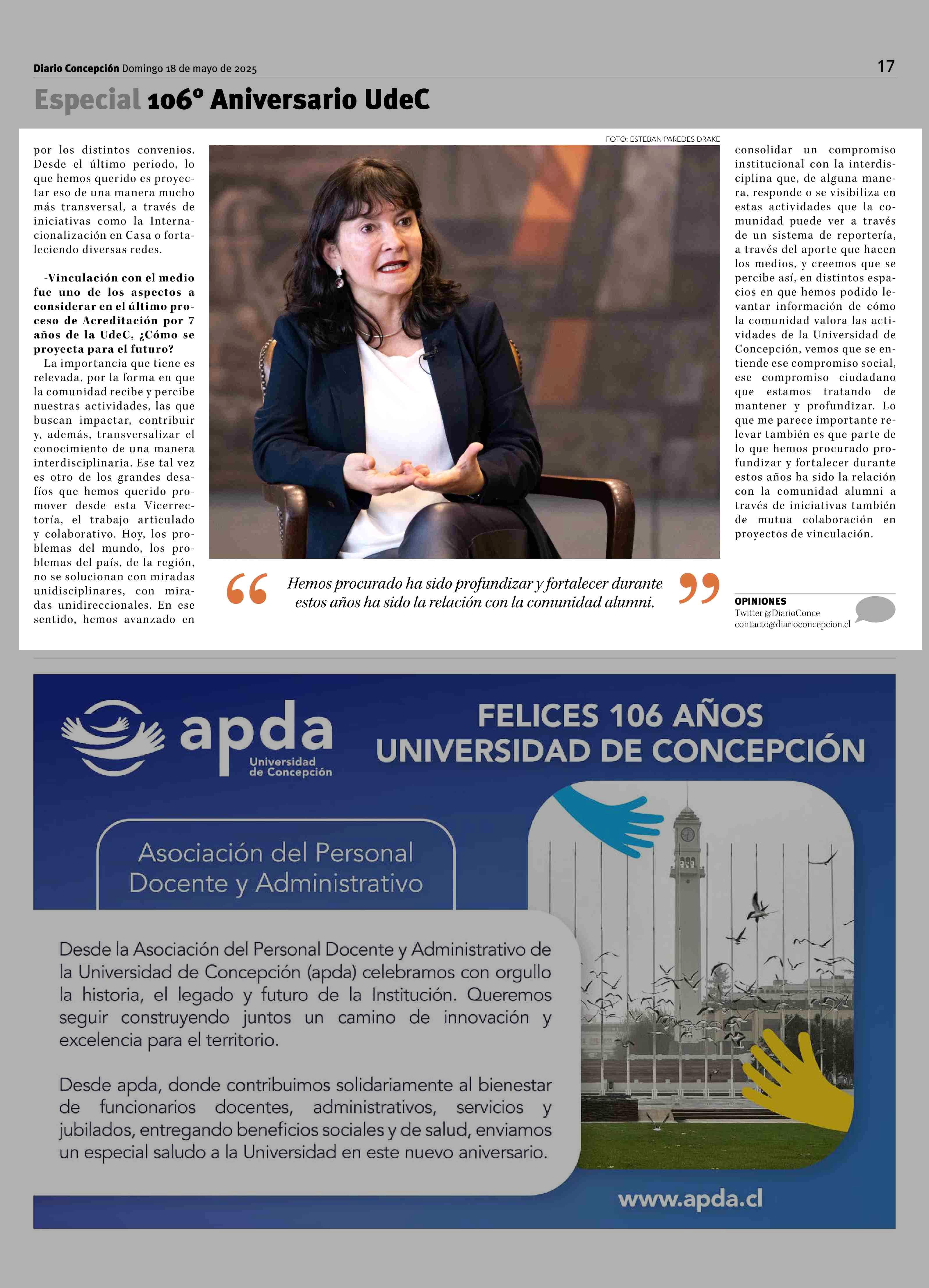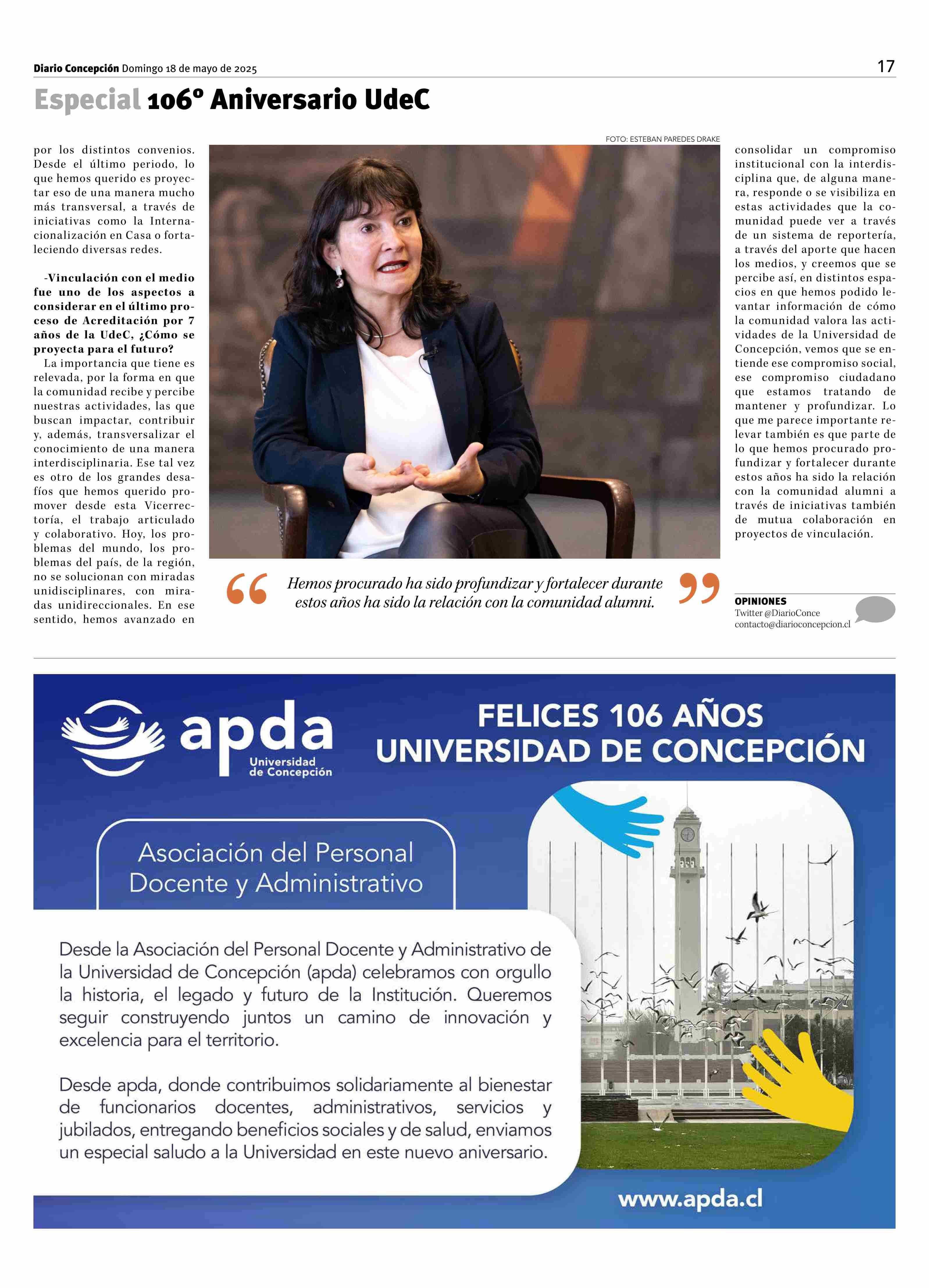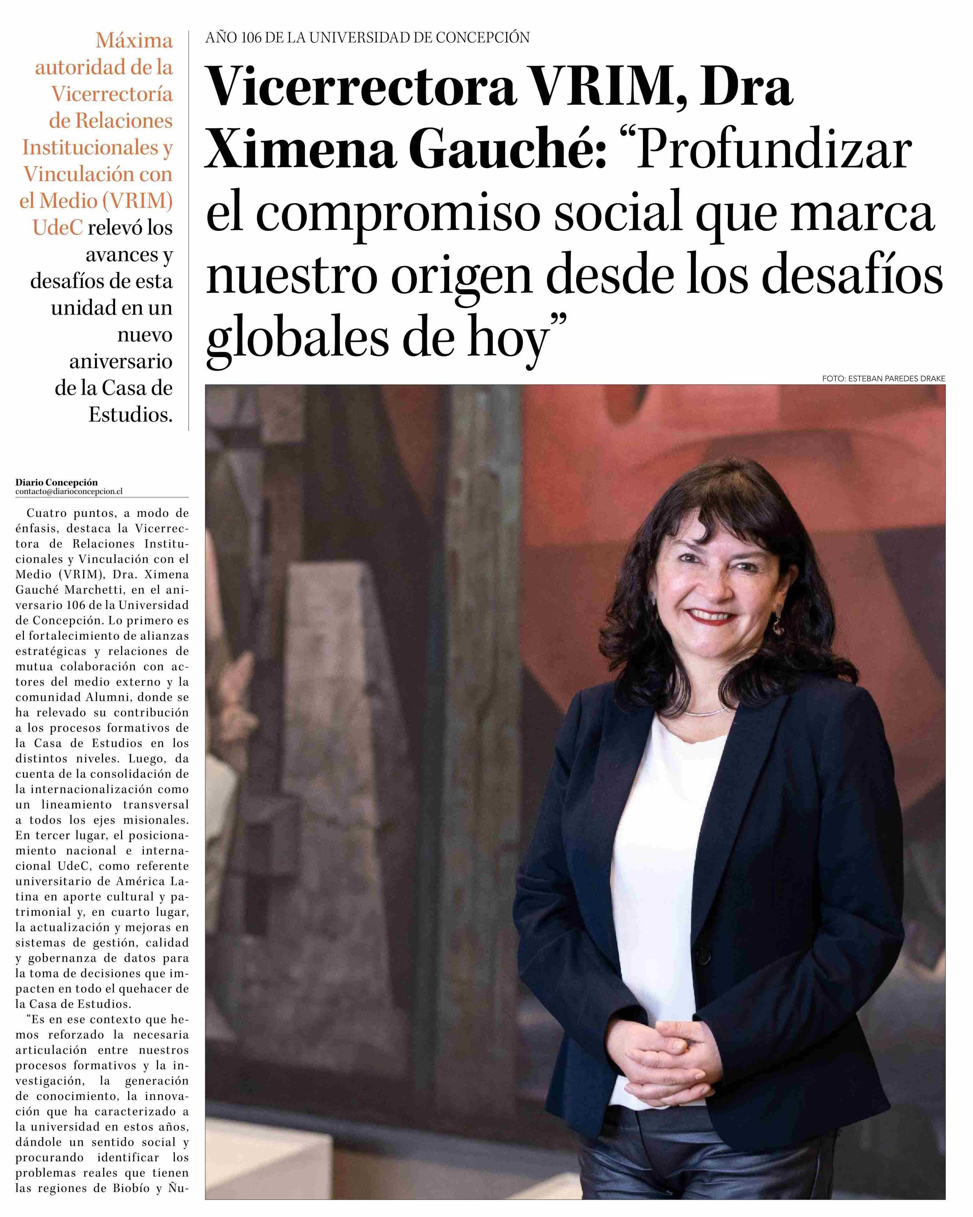 Vicerrectora VKIM, Dra Ximena Gauché: “Profundizar el compromiso social que marca nuestro origen desde los desafíos globales de hoy” 18-05-2025 La Discusión |