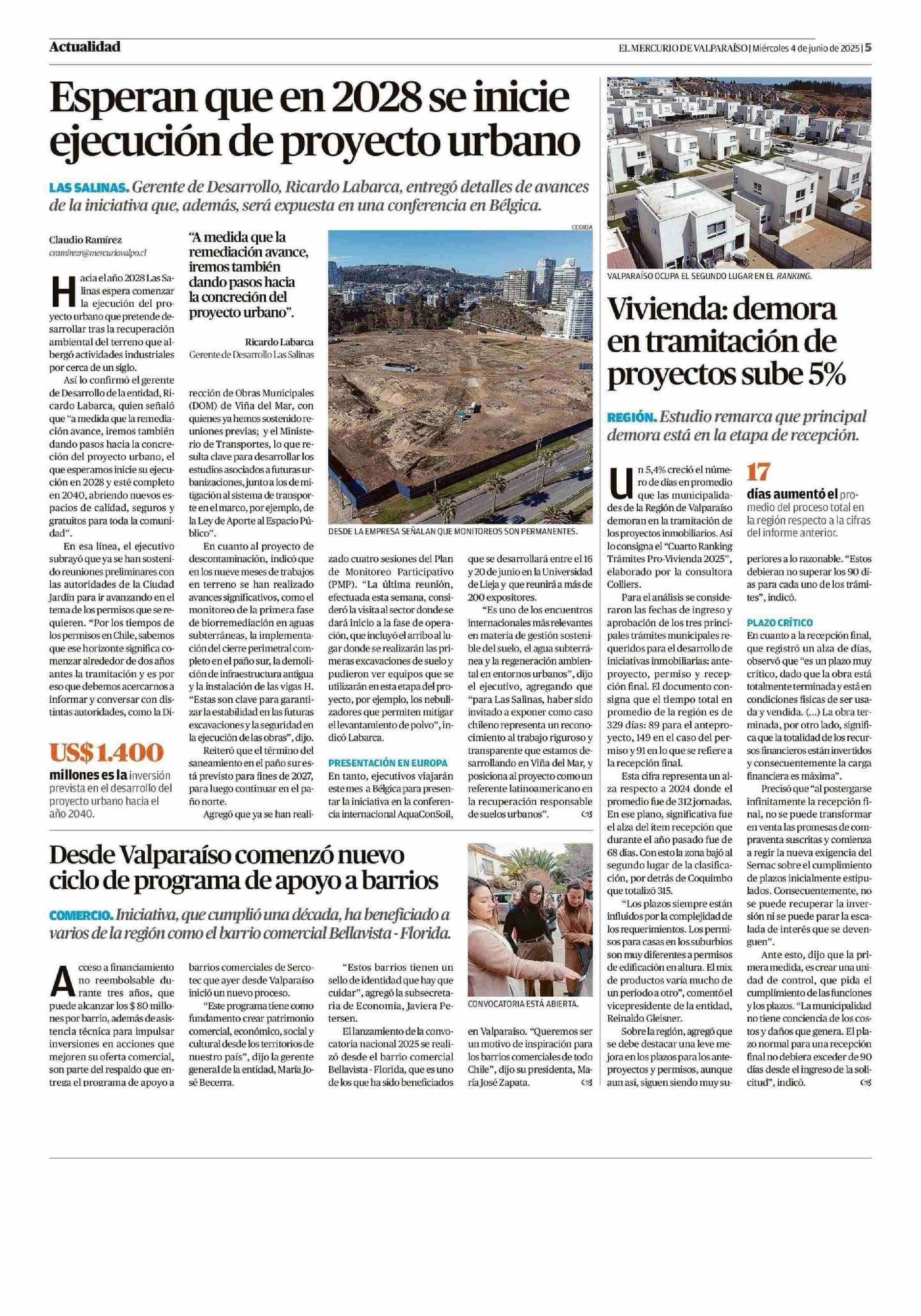 Vivienda: demora en tramitación de proyectos sube 5% 04-06-2025 El Mercurio de Valparaíso |
