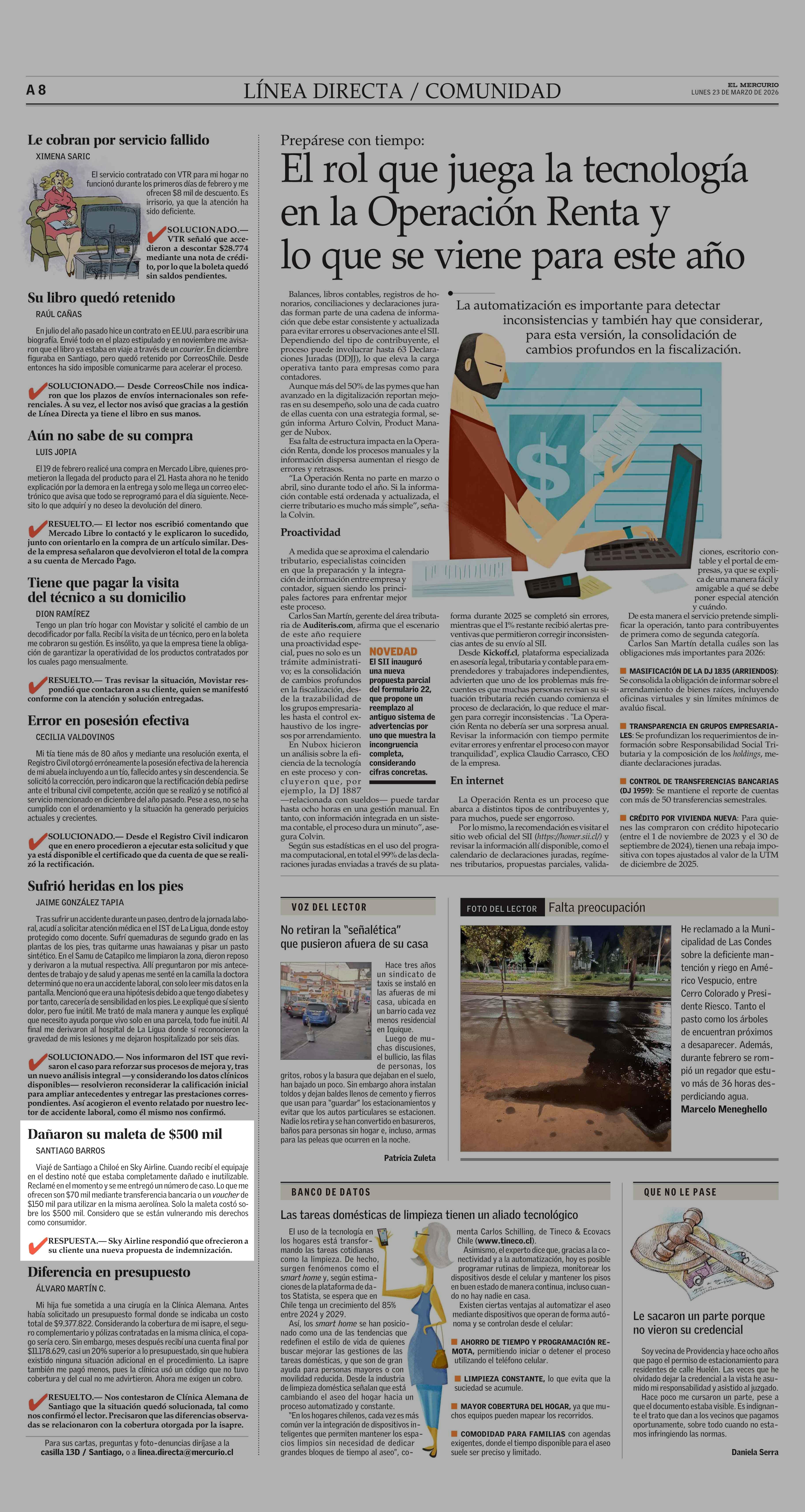 Cartas: Dañaron su maleta de $500 mil 23-03-2026 El Mercurio |
