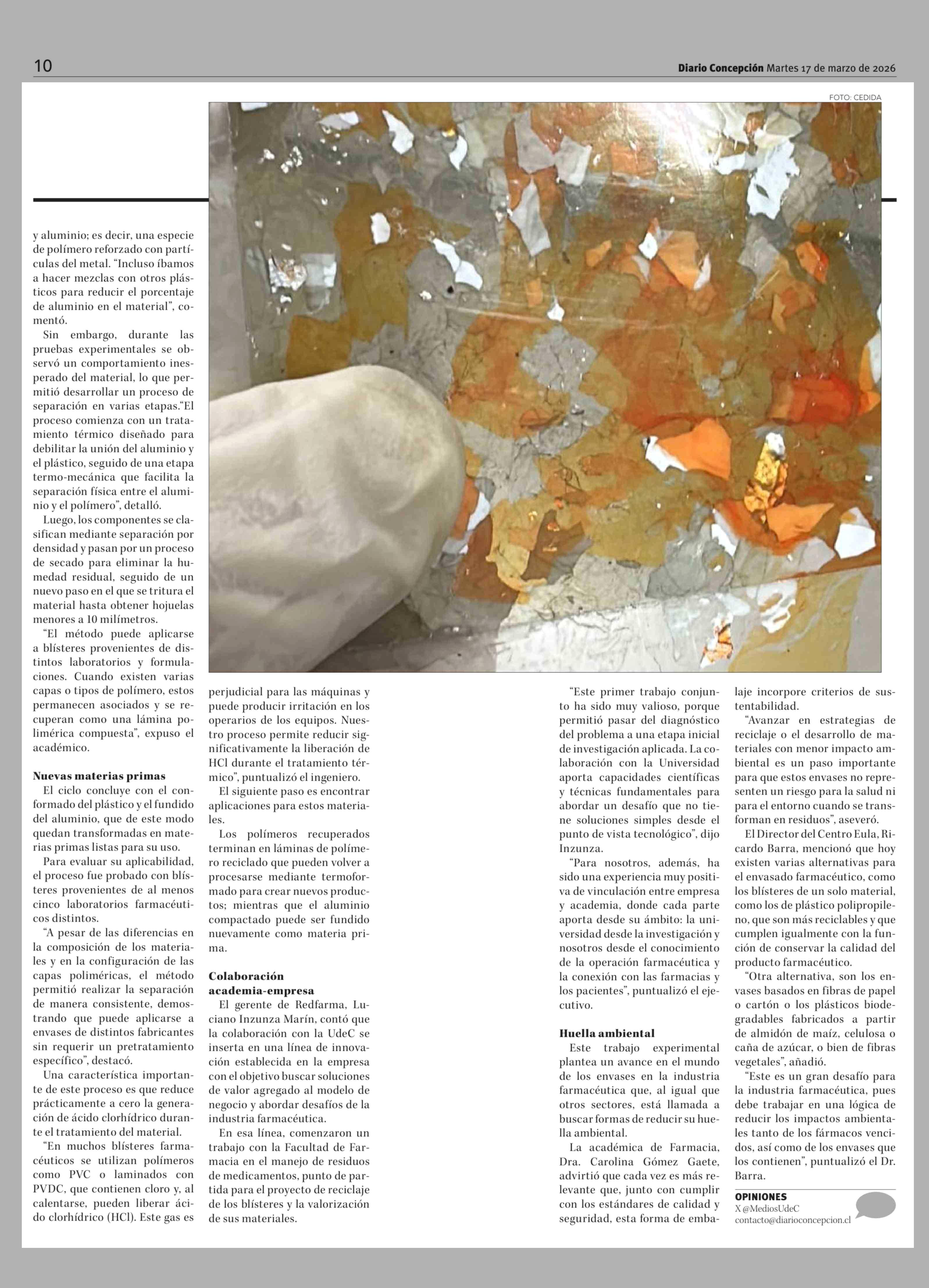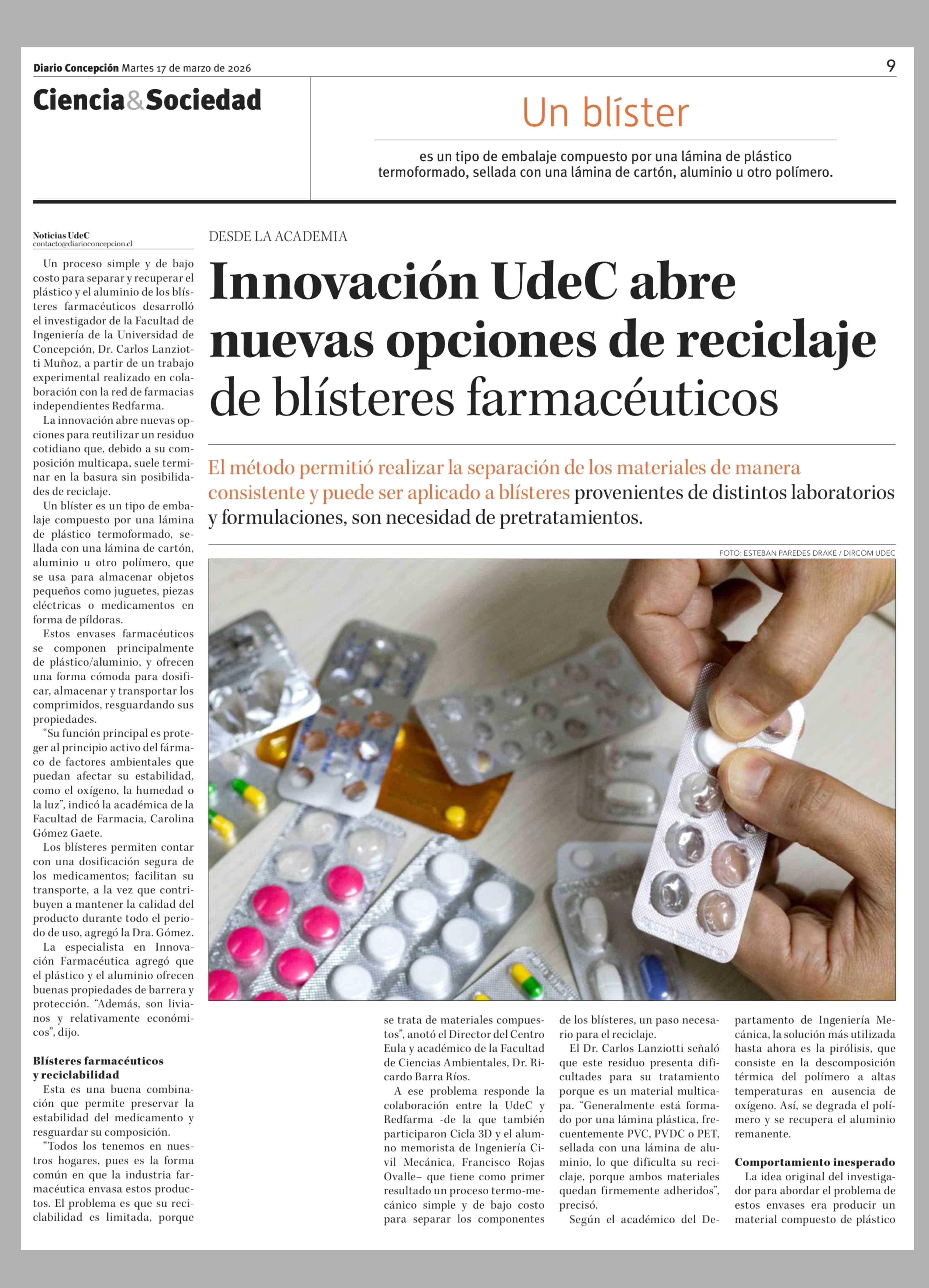 Título: Innovación UdeC abre nuevas opciones de reciclaje de blísteres farmacéuticos