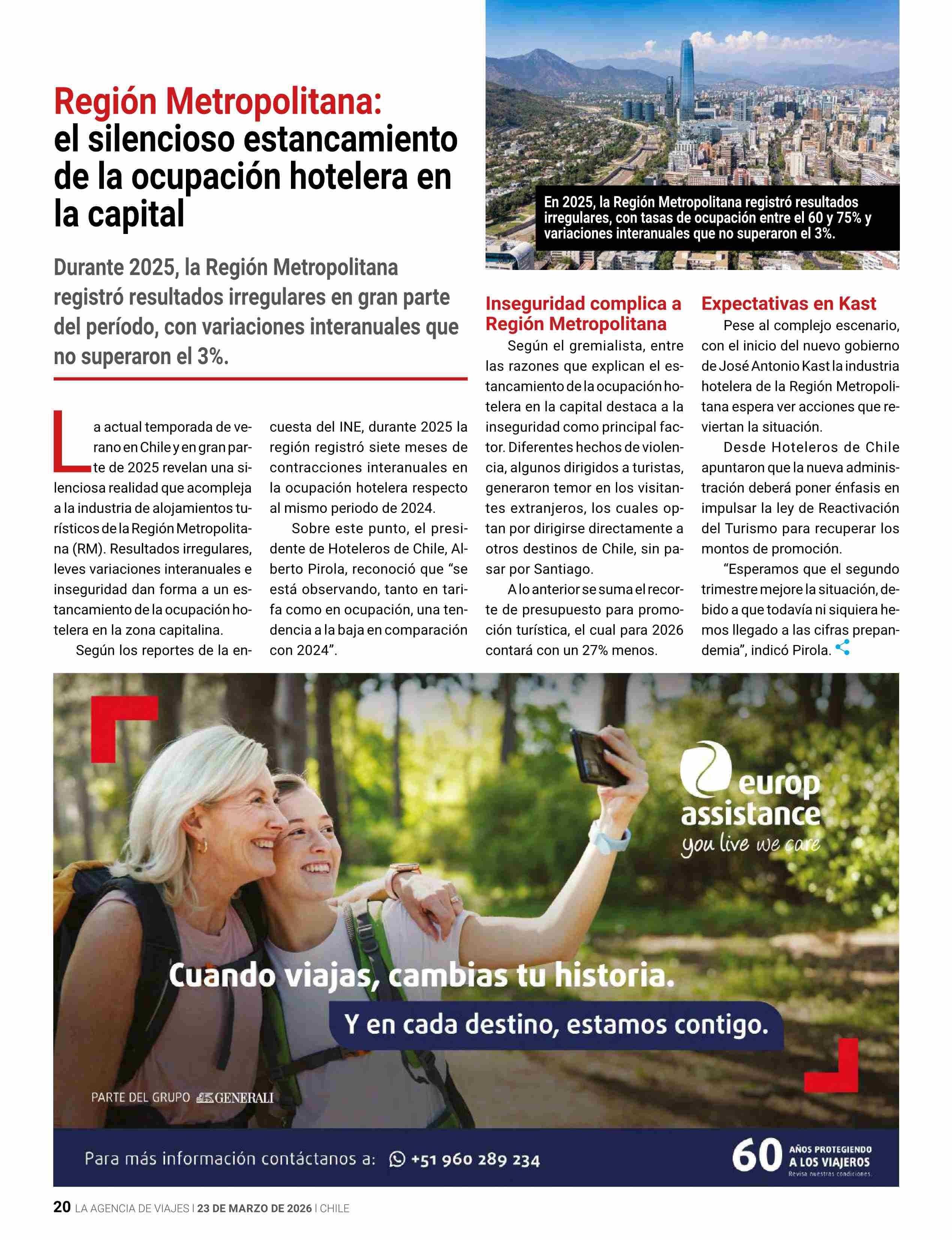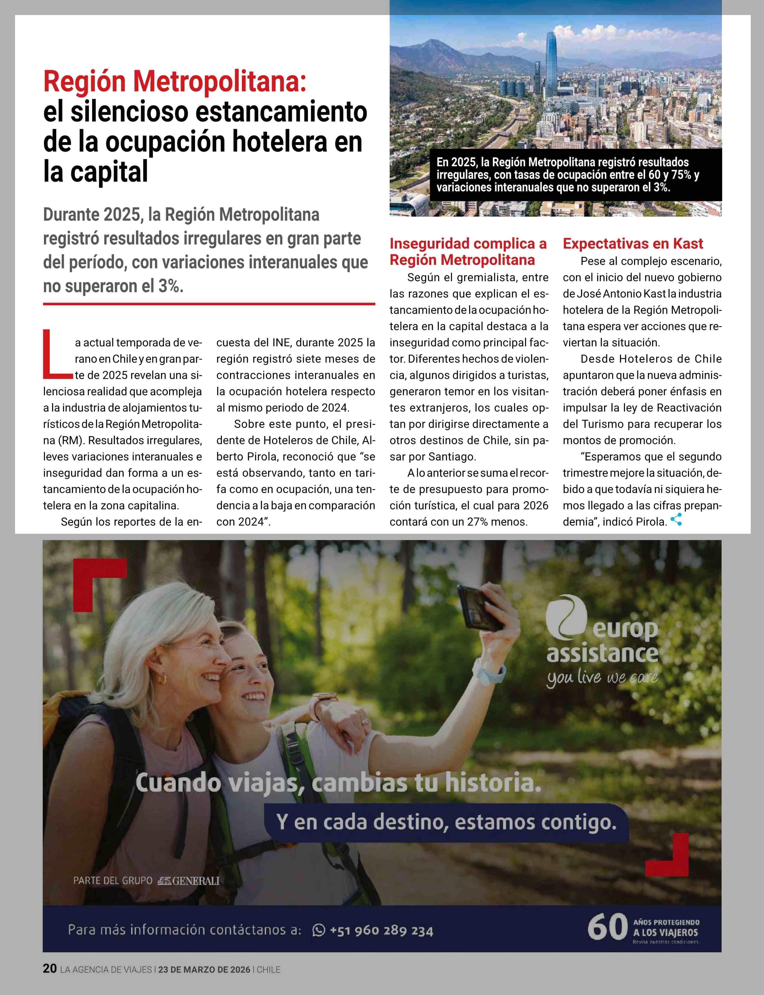 Región Metropolitana: el silencioso estancamiento de la ocupación hotelera en la capital 27-03-2026 Revista La Agencia de Viajes |