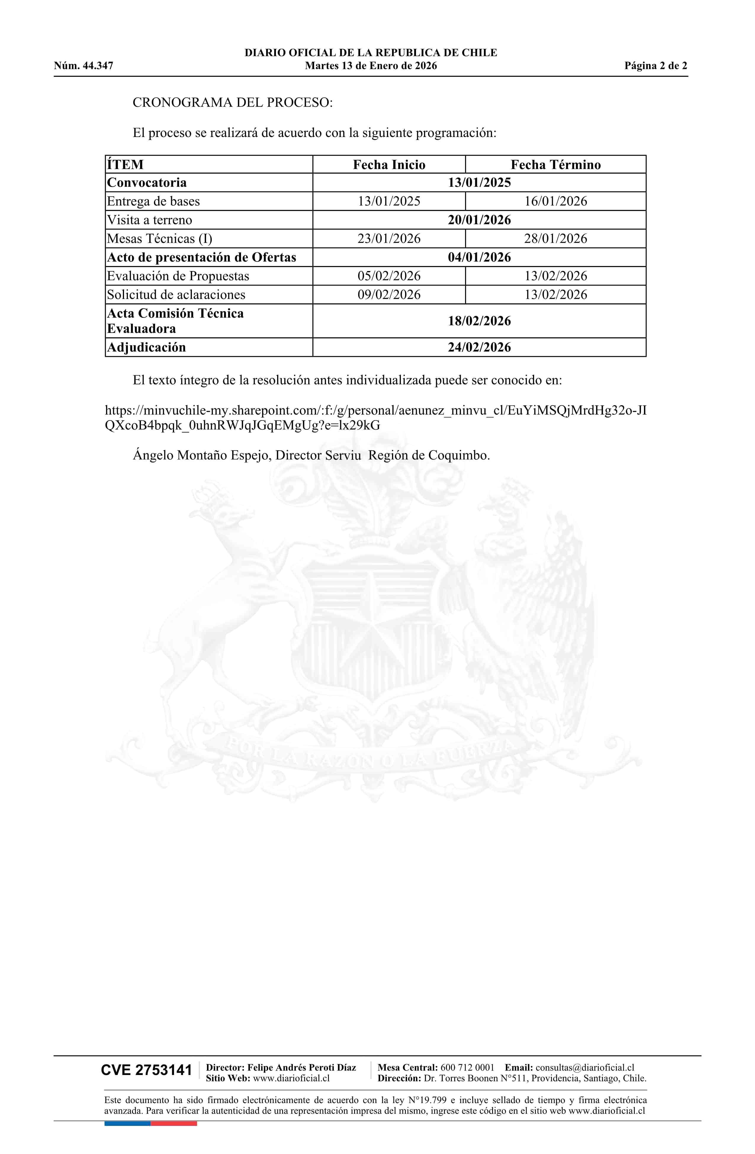 Título: Extracto de resolución exenta número 28, de 2026.- Aprueba Bases técnicas y administrativas, y sus modificaciones, de Concurso para proyecto habitacional en terreno de propiedad del Serviu en comuna de Salamanca