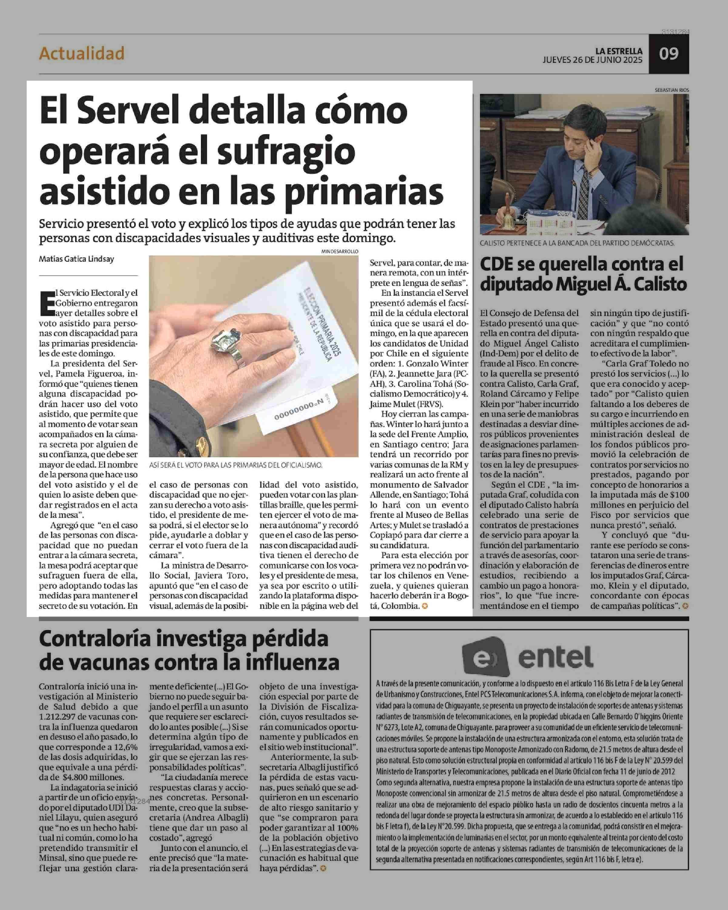 El Servel detalla cómo operará el sufragio asistido en las primarias 26-06-2025 La Estrella de Concepción |