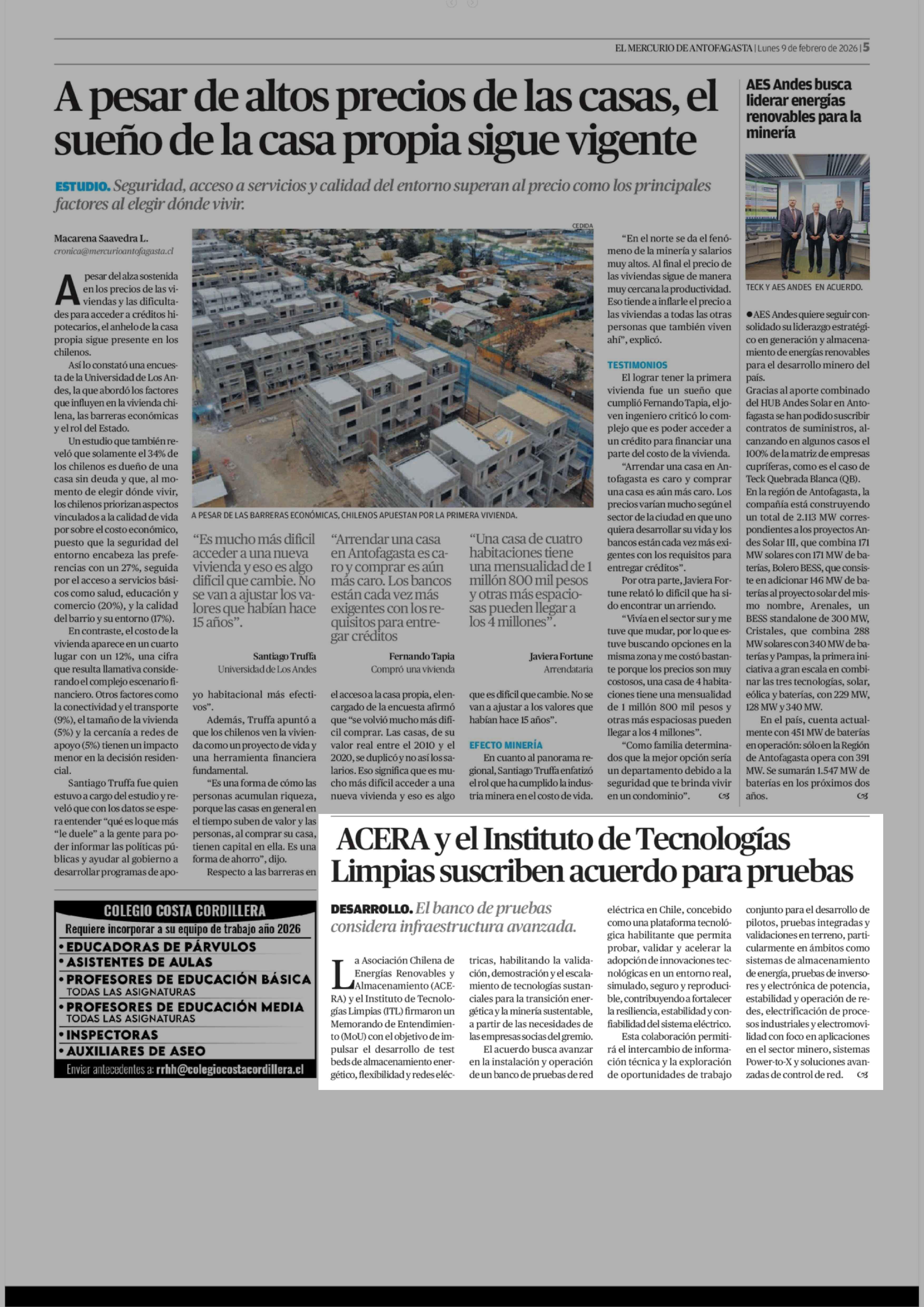 ACERA y el Instituto de Tecnologías Limpias suscriben acuerdo para pruebas 09-02-2026 El Mercurio de Antofagasta |