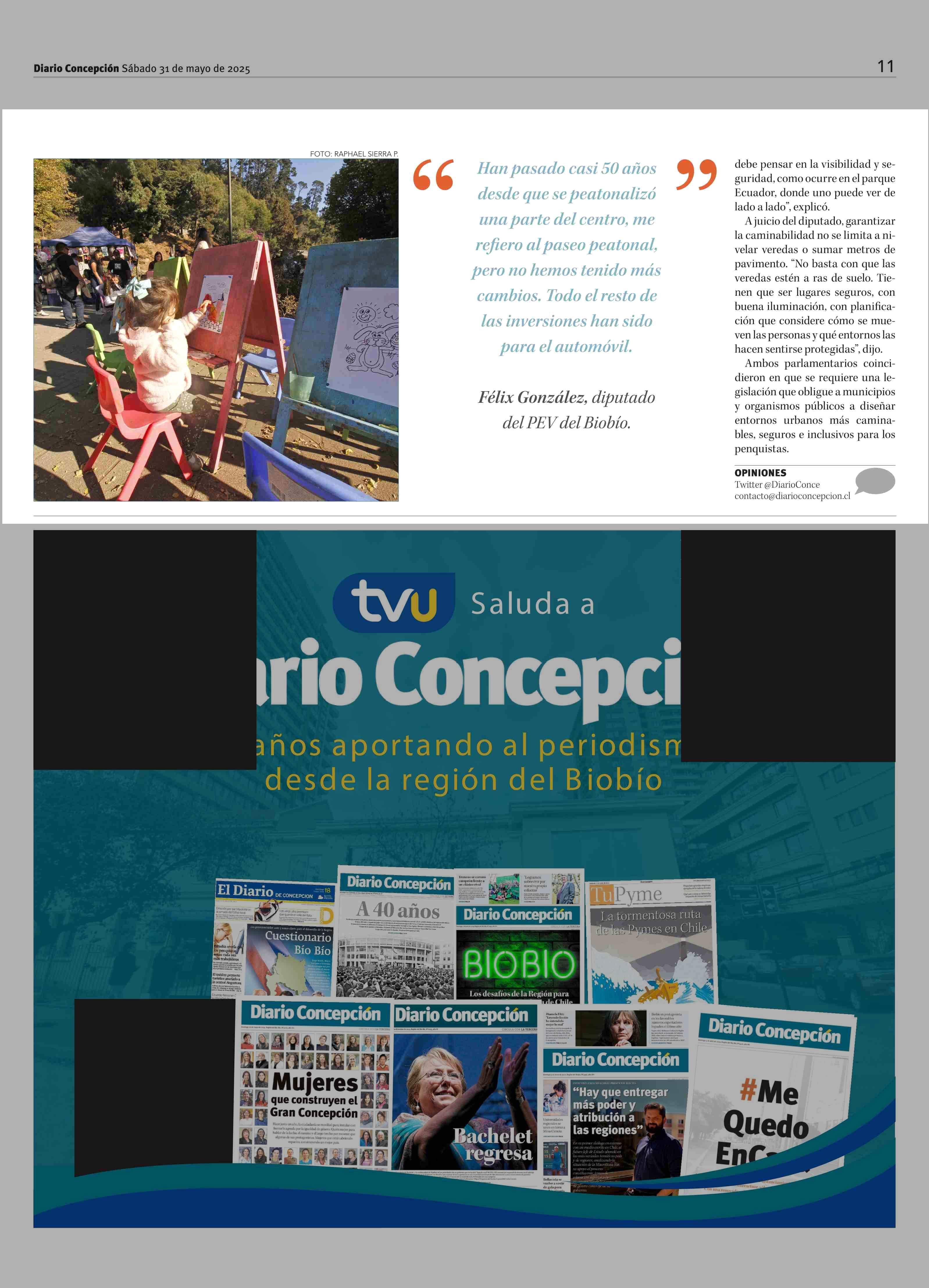 "Dejamos de idear las ciudades pensando en el peatón": legisladores apuntan a falta de políticas públicas 31-05-2025 Diario Concepción |