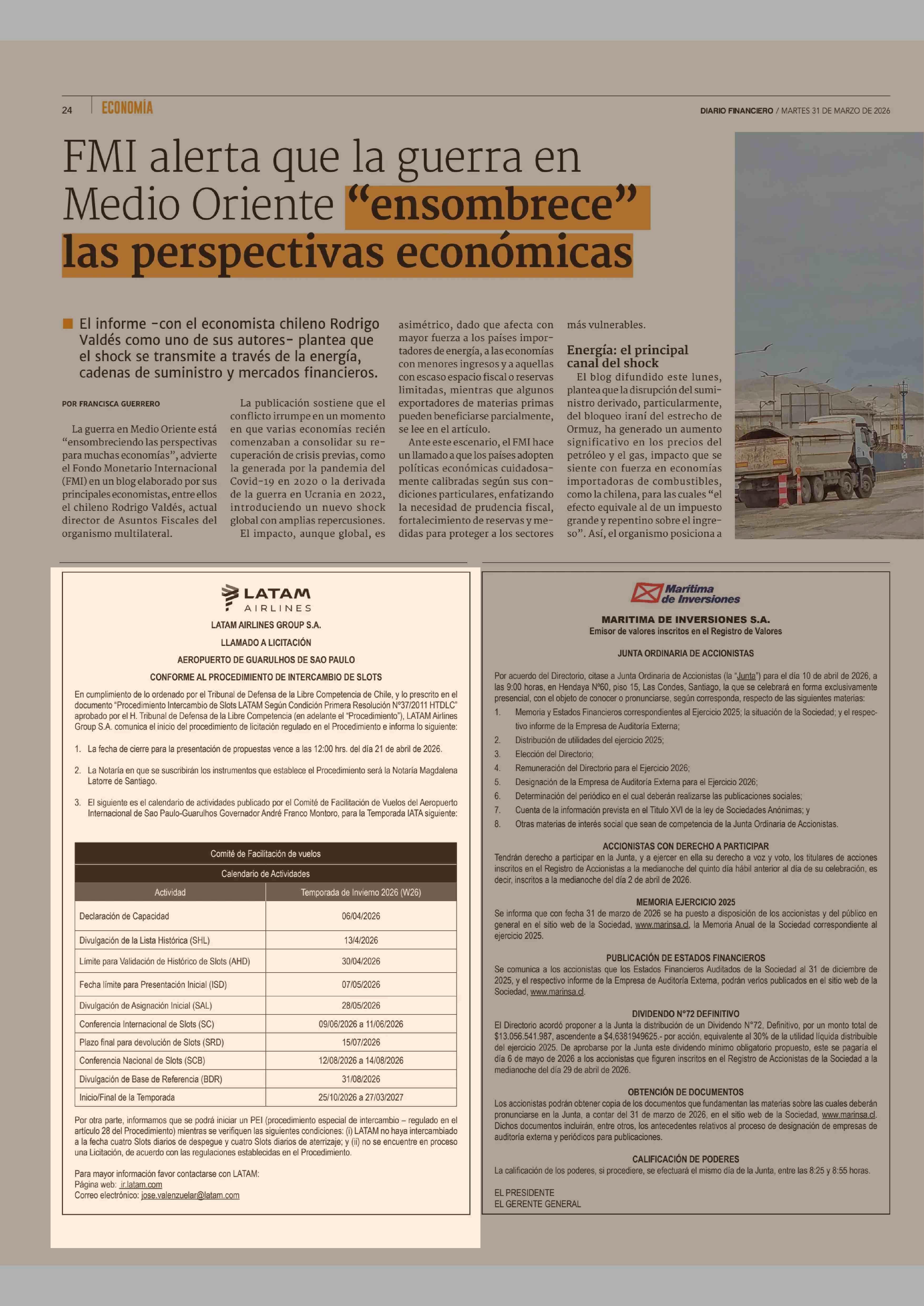 Fuente: Diario Financiero (Diario Financiero) Página(s): 24