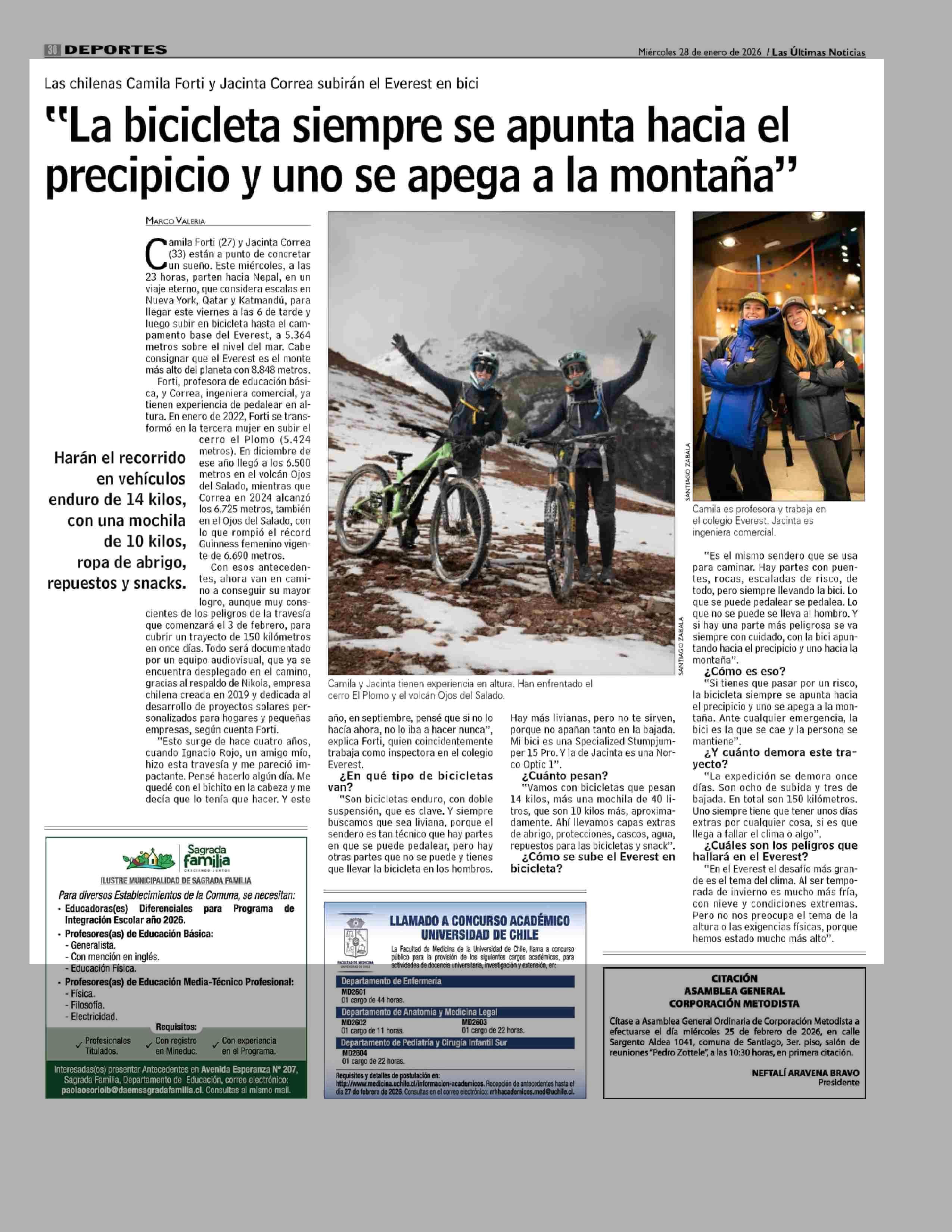 "La bicicleta siempre se apunta hacia el precipicio y uno se apega a la montaña" 28-01-2026 Las Últimas Noticias |