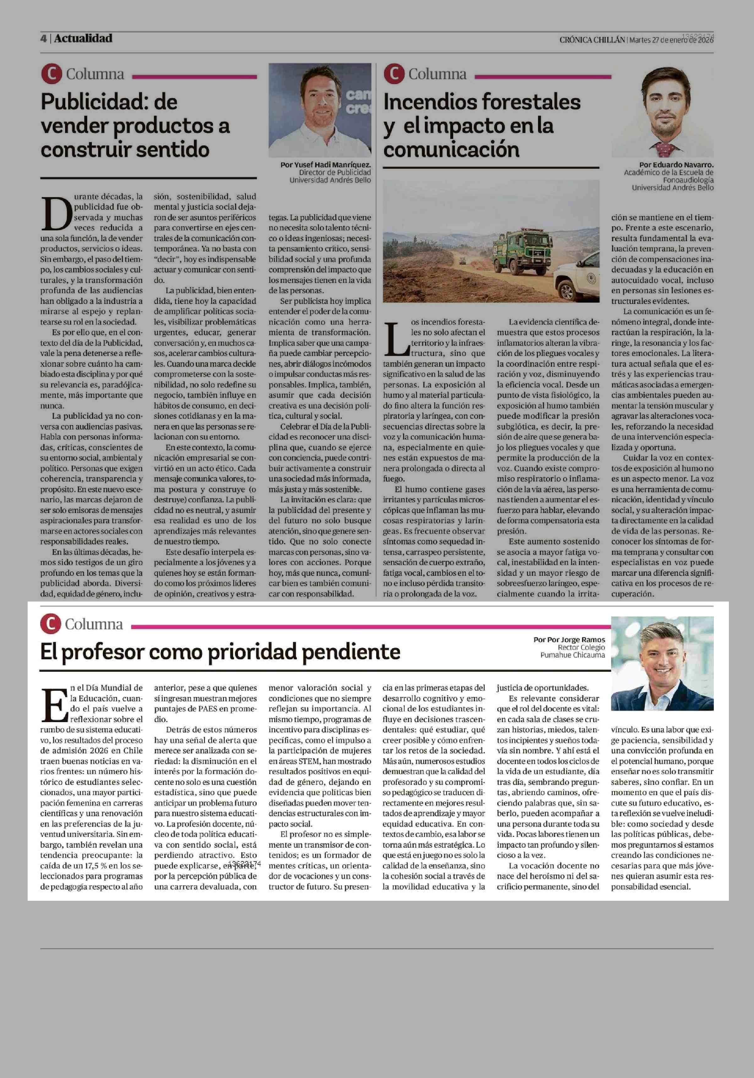 Fecha: 27-01-2026 Sector: Columnas de Opinión Región: Región del Ñuble