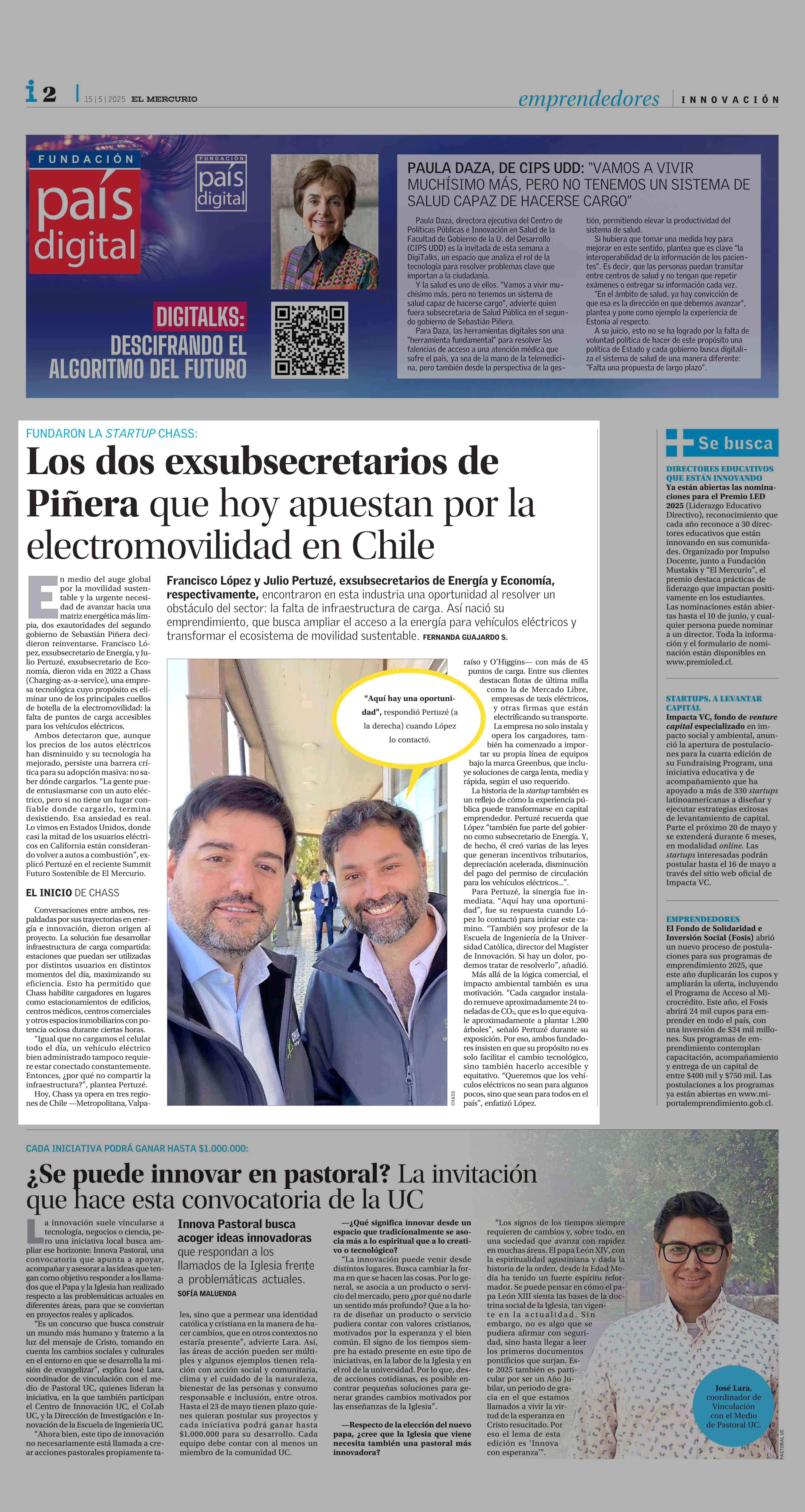 Los dos exsubsecretarios de Piñera que hoy apuestan por la electromovilidad en Chile 15-05-2025 El Mercurio |