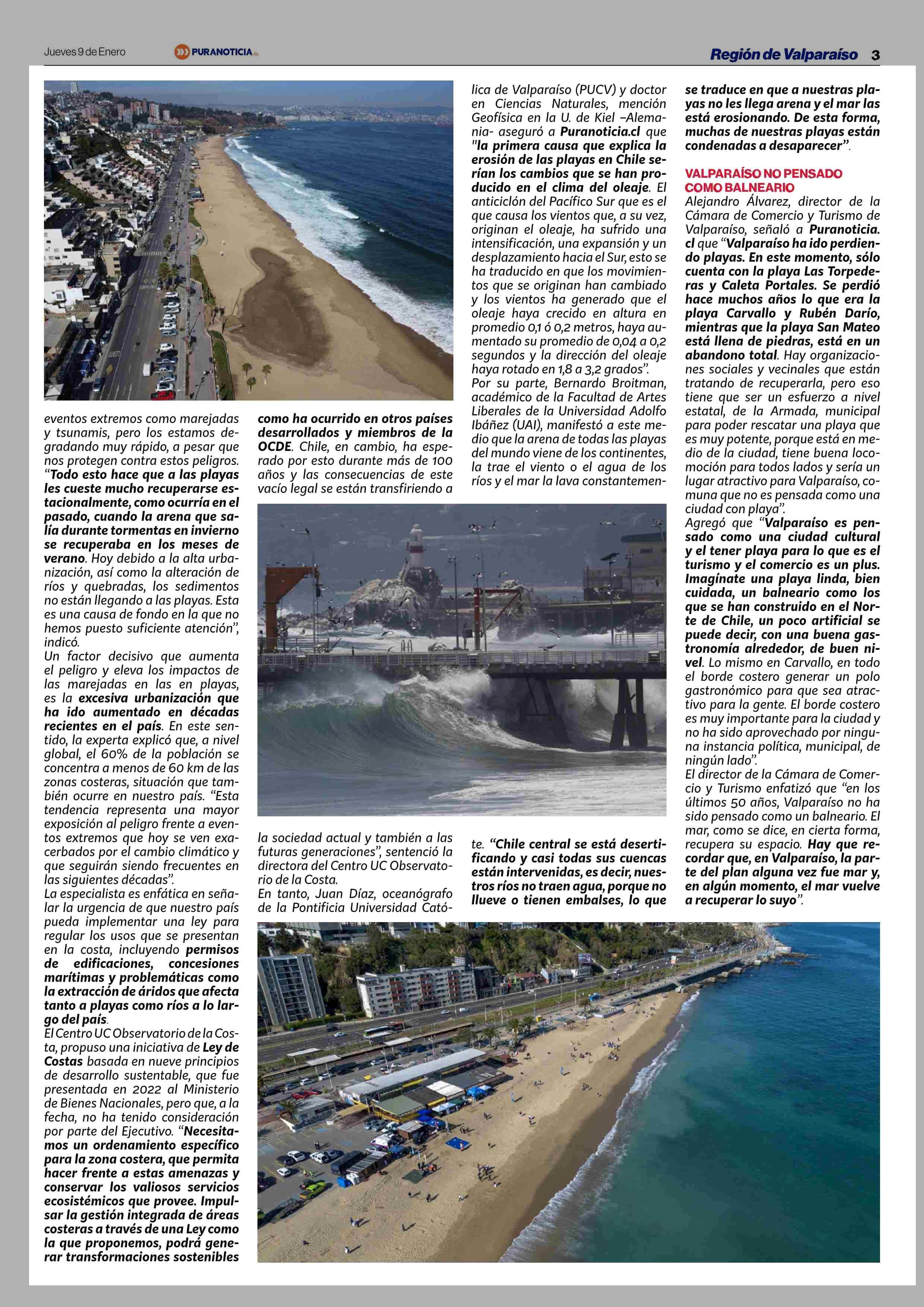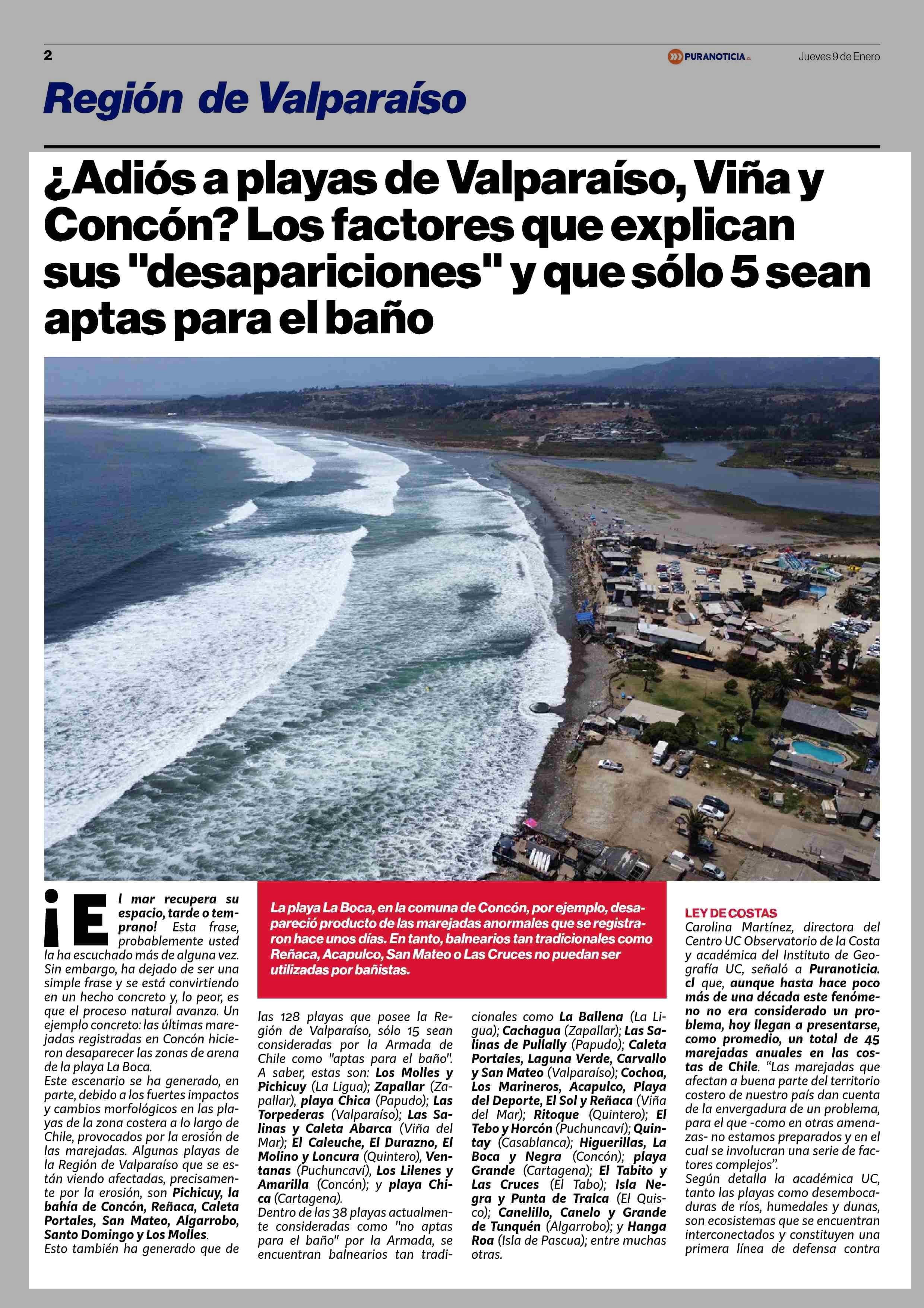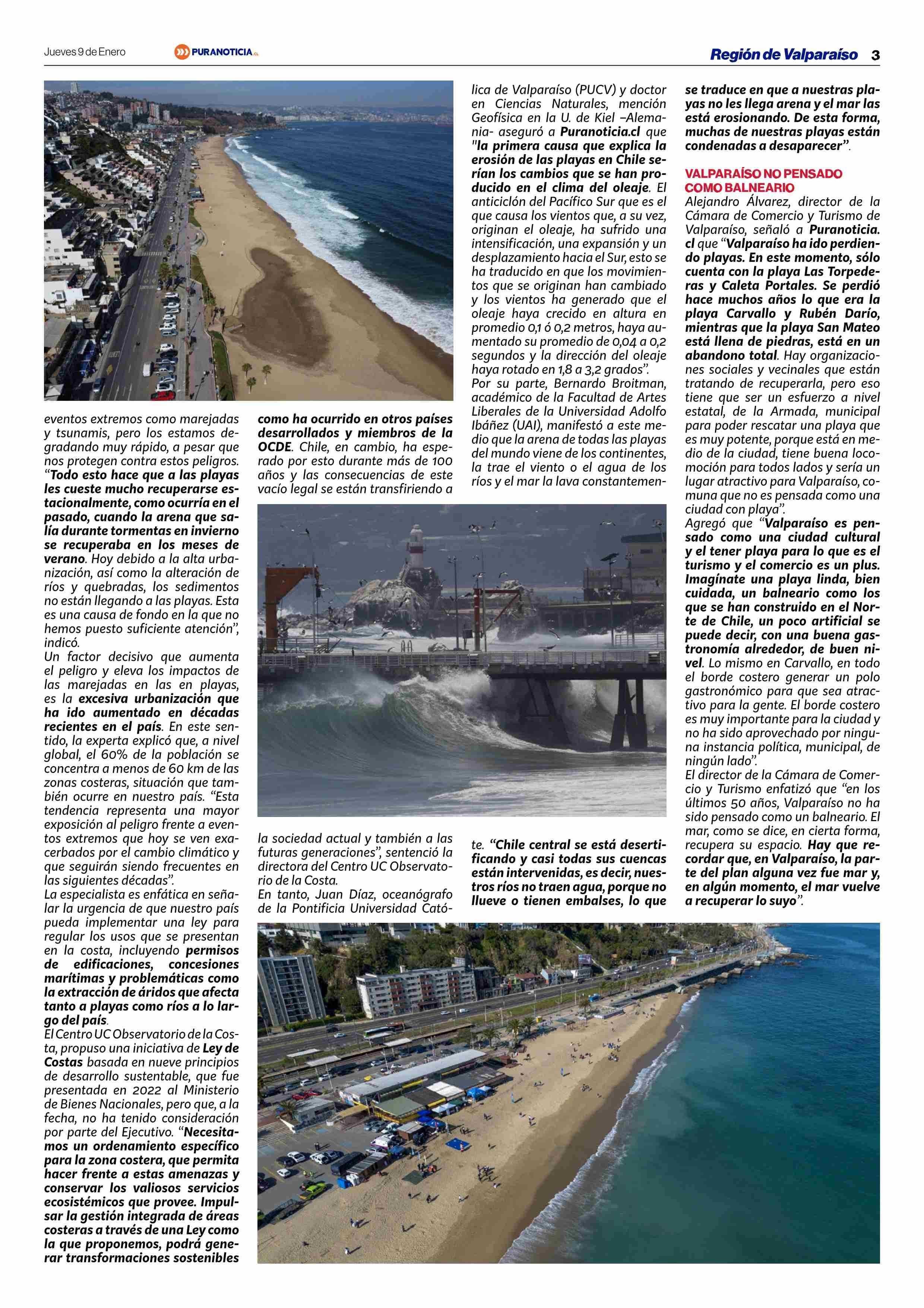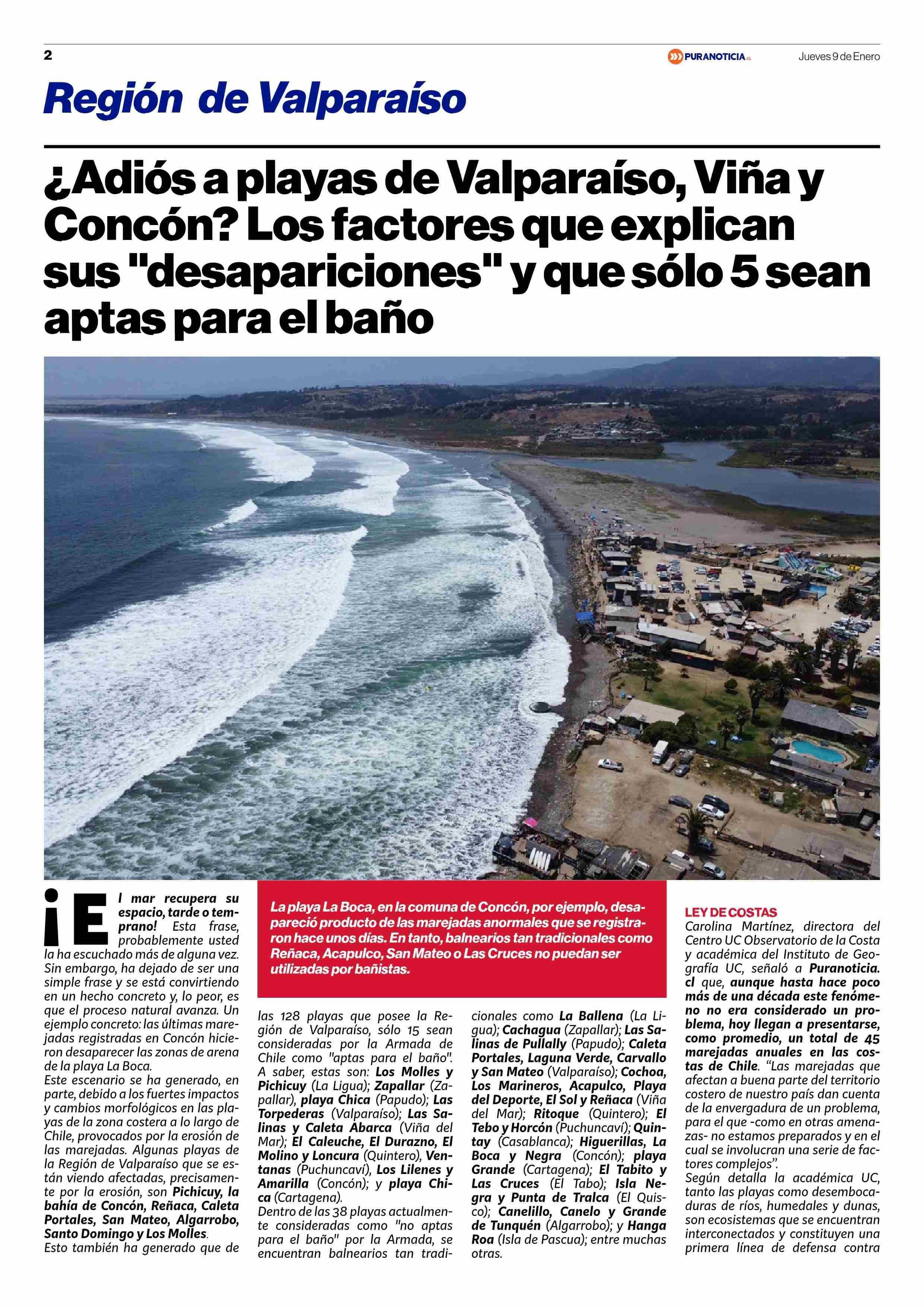 ¿Adiós a playas de Valparaíso, Viña y Concón? Los factores que explican sus “desapariciones” y que sólo 5 sean aptas para el baño 09-01-2025 Puranoticia.cl |