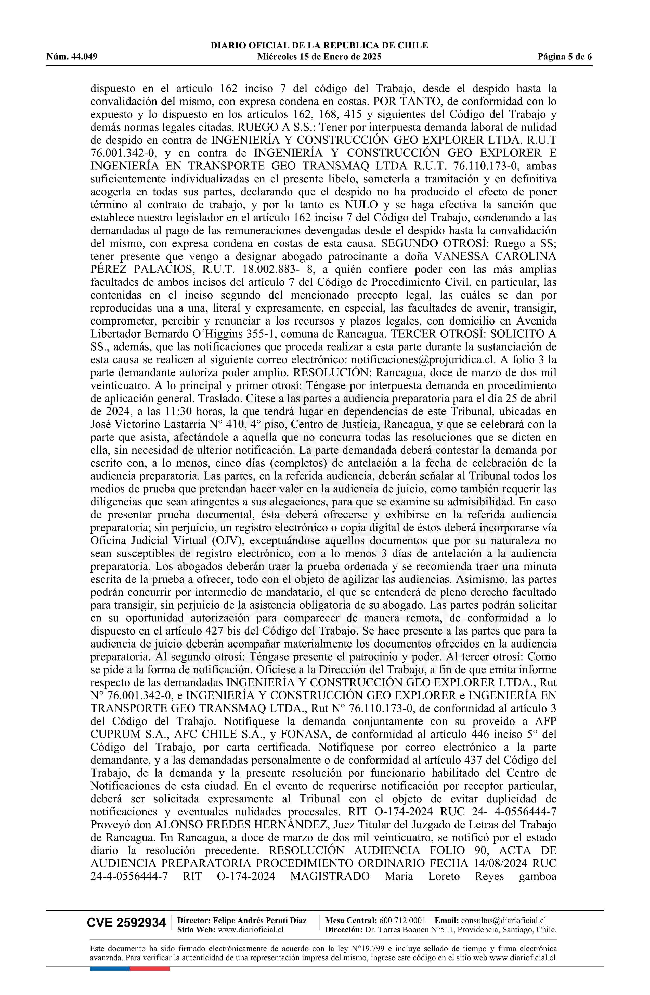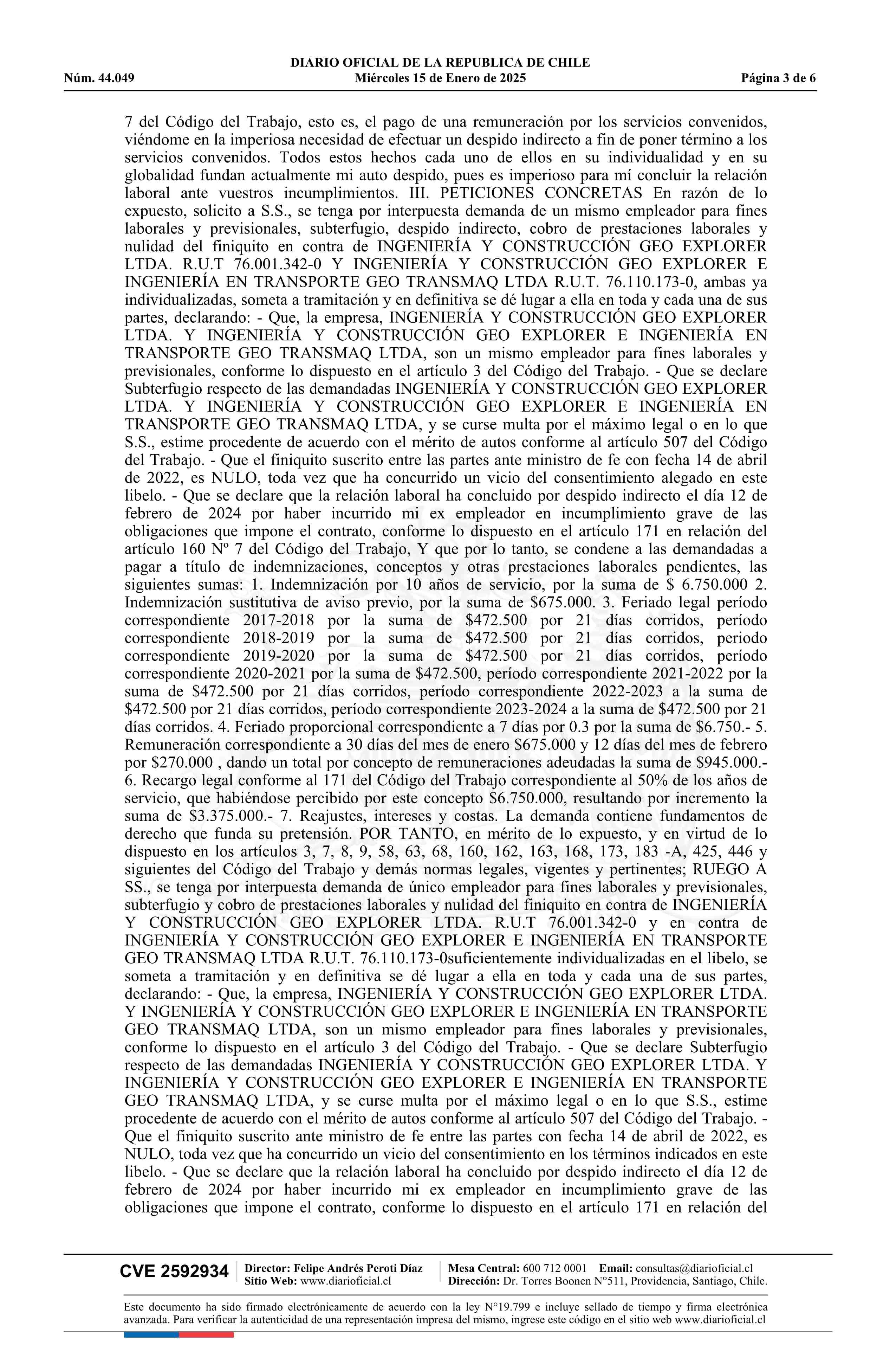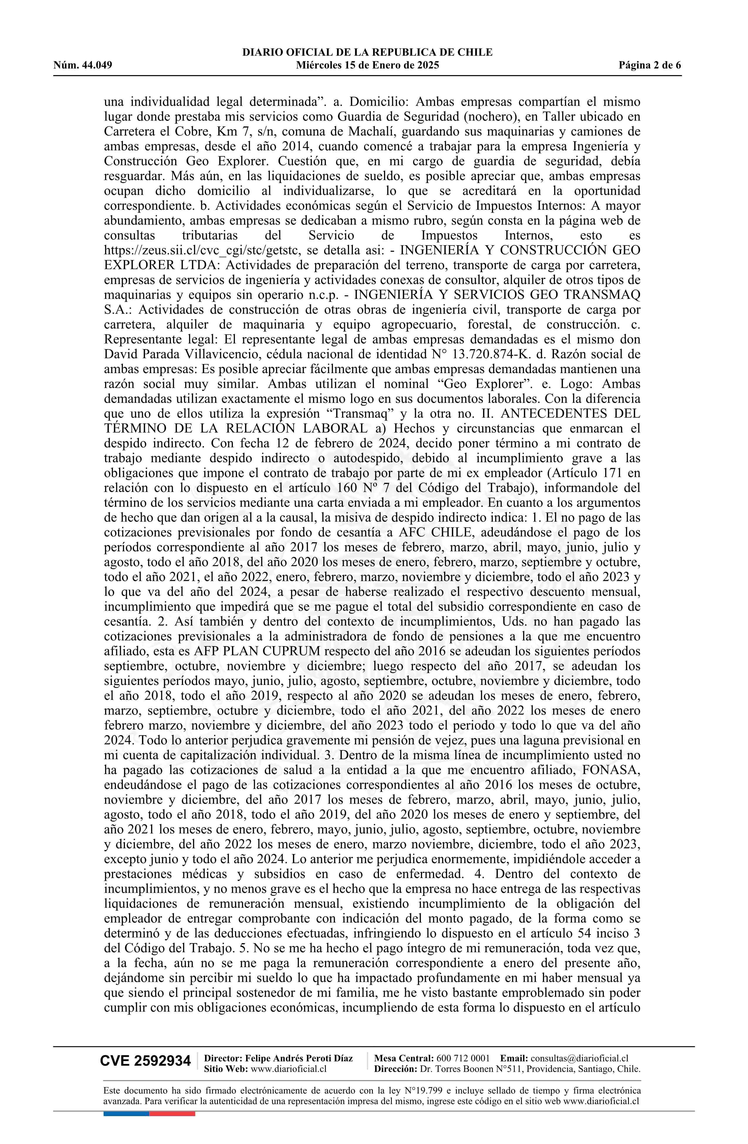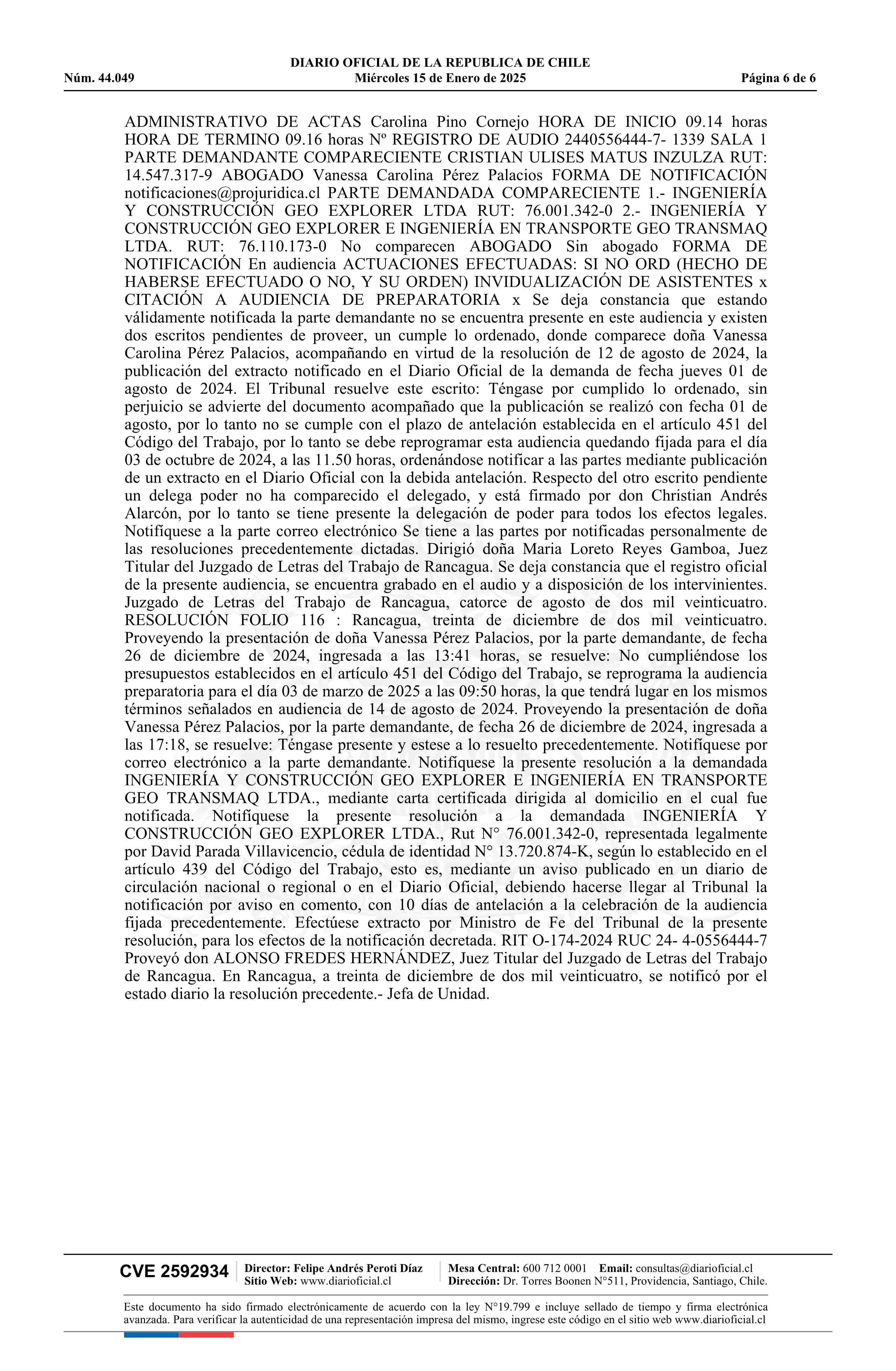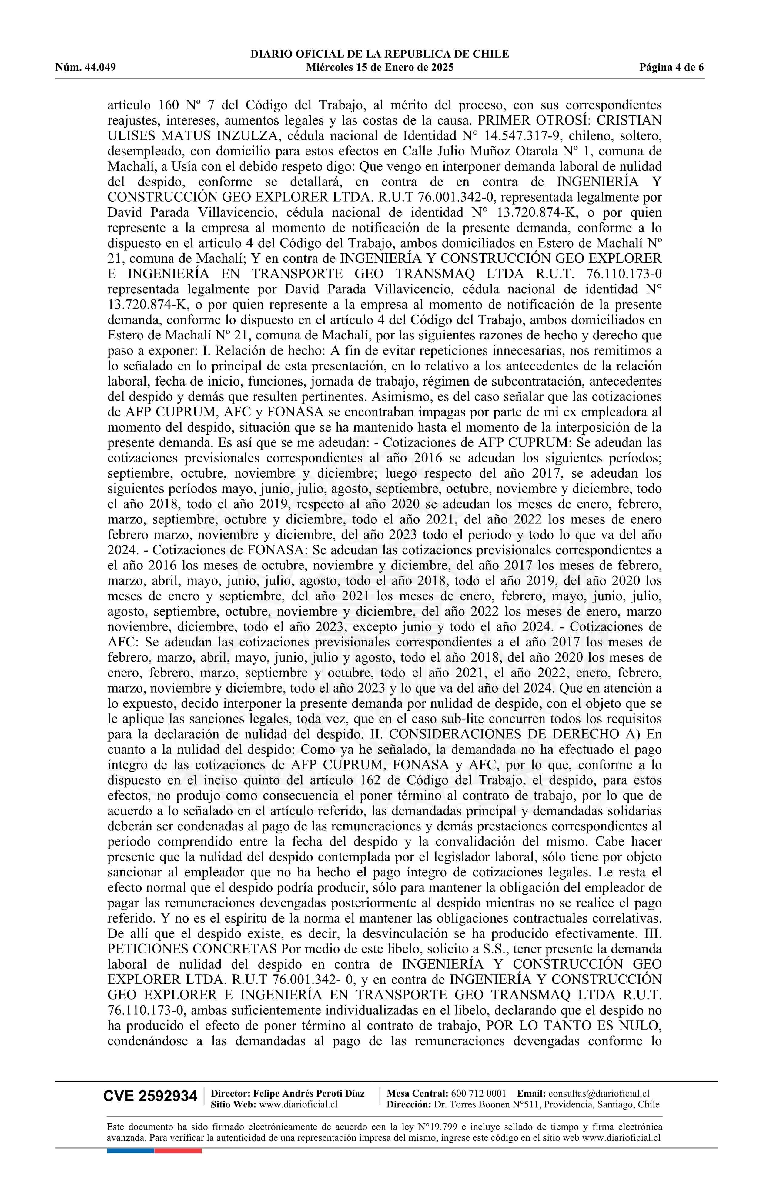 Matus - Ingeniería y Construcción Geo Explorer Ltda. y otra 15-01-2025 Diario Oficial Edición Electrónica |