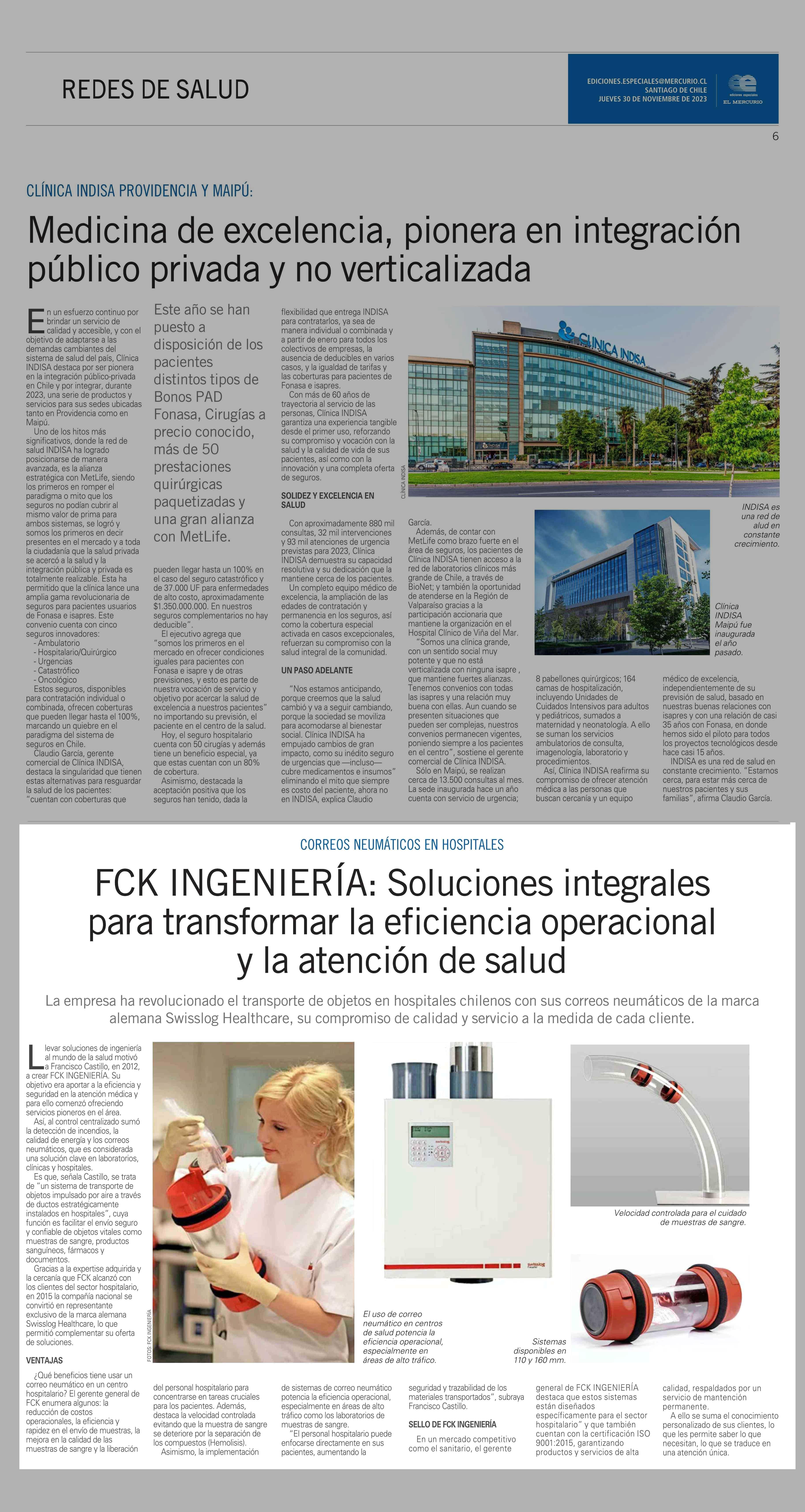 FCK INGENIERÍA: Soluciones integrales para transformar la eficiencia operacional y la atención de salud 30-11-2023 El Mercurio |