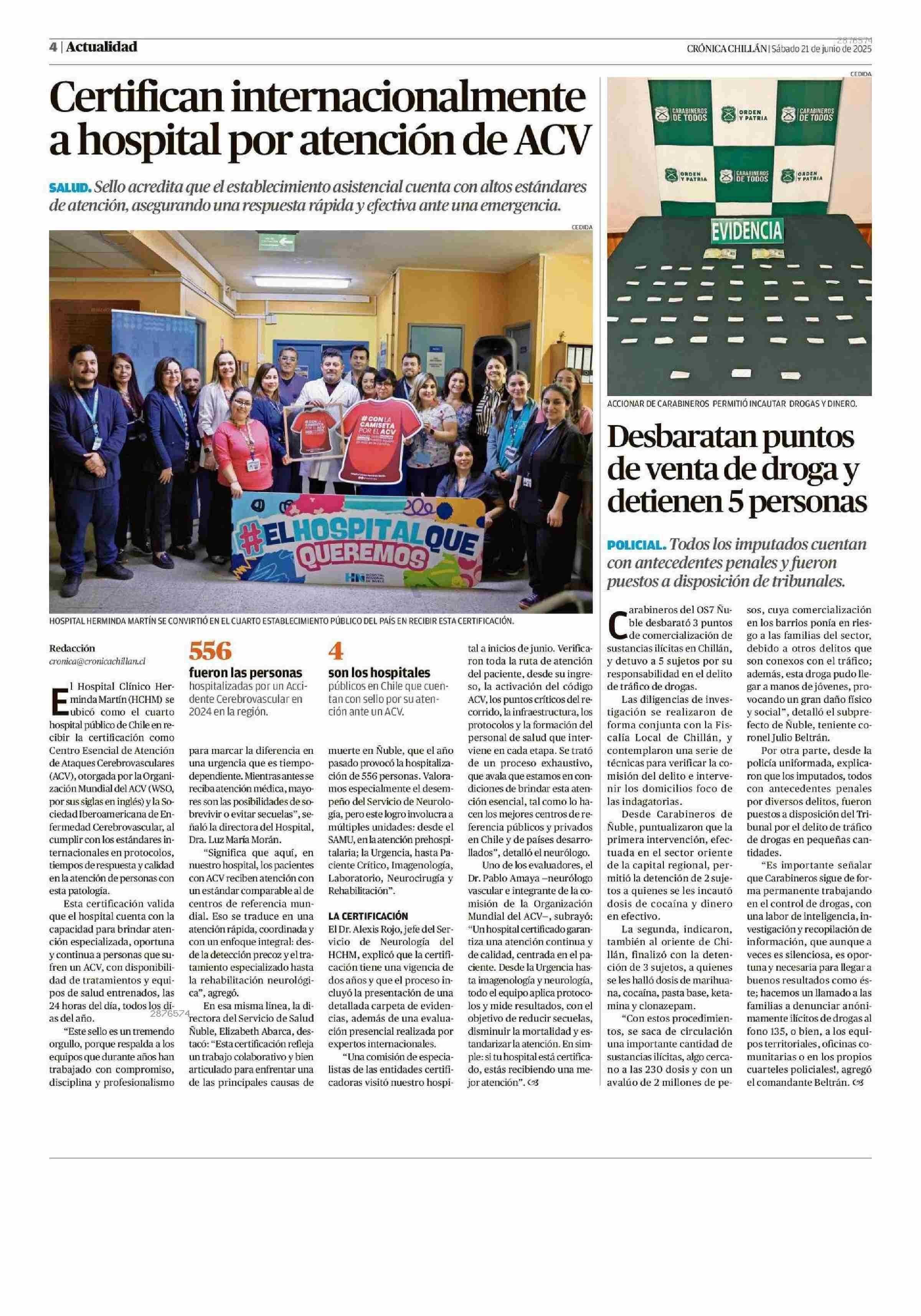 Certifican internacionalmente a hospital por atención de ACV 21-06-2025 Crónica de Chillán |
