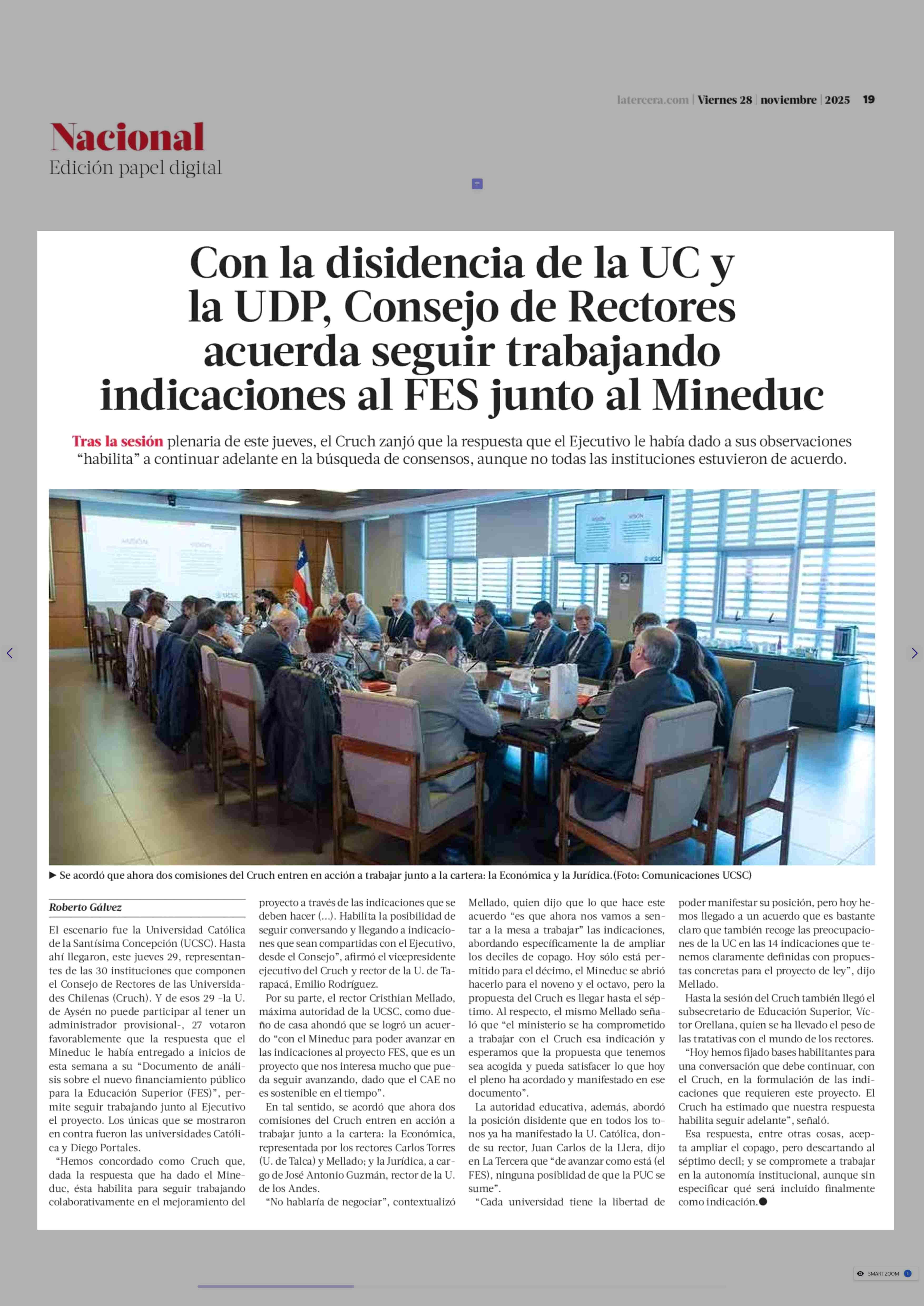Título: Con la disidencia de la UC y la UDP, Consejo de Rectores acuerda seguir trabajando indicaciones al FES junto al Mineduc