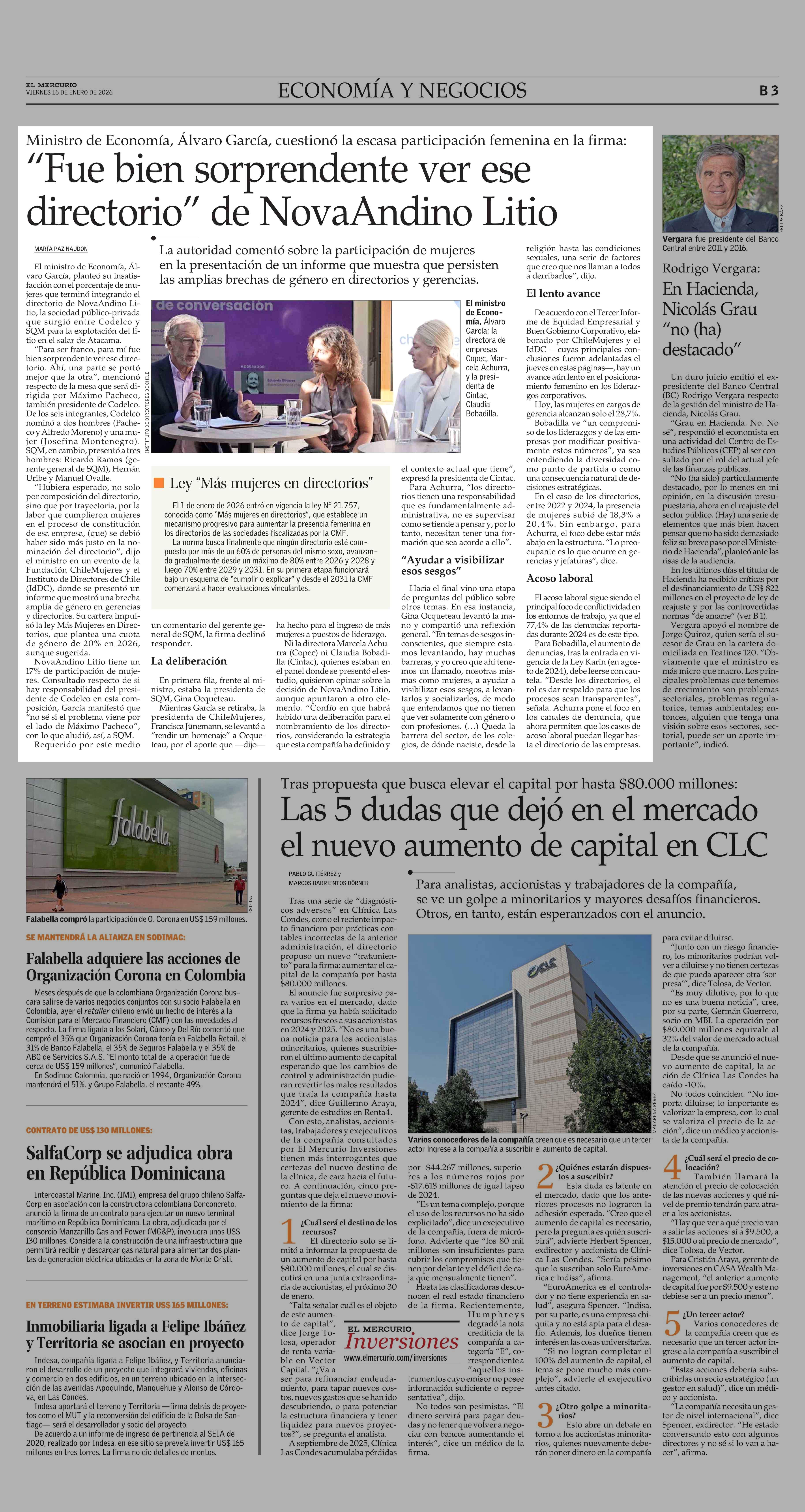 “Fue bien sorprendente ver ese directorio” de NovaAndino Litio 16-01-2026 El Mercurio |