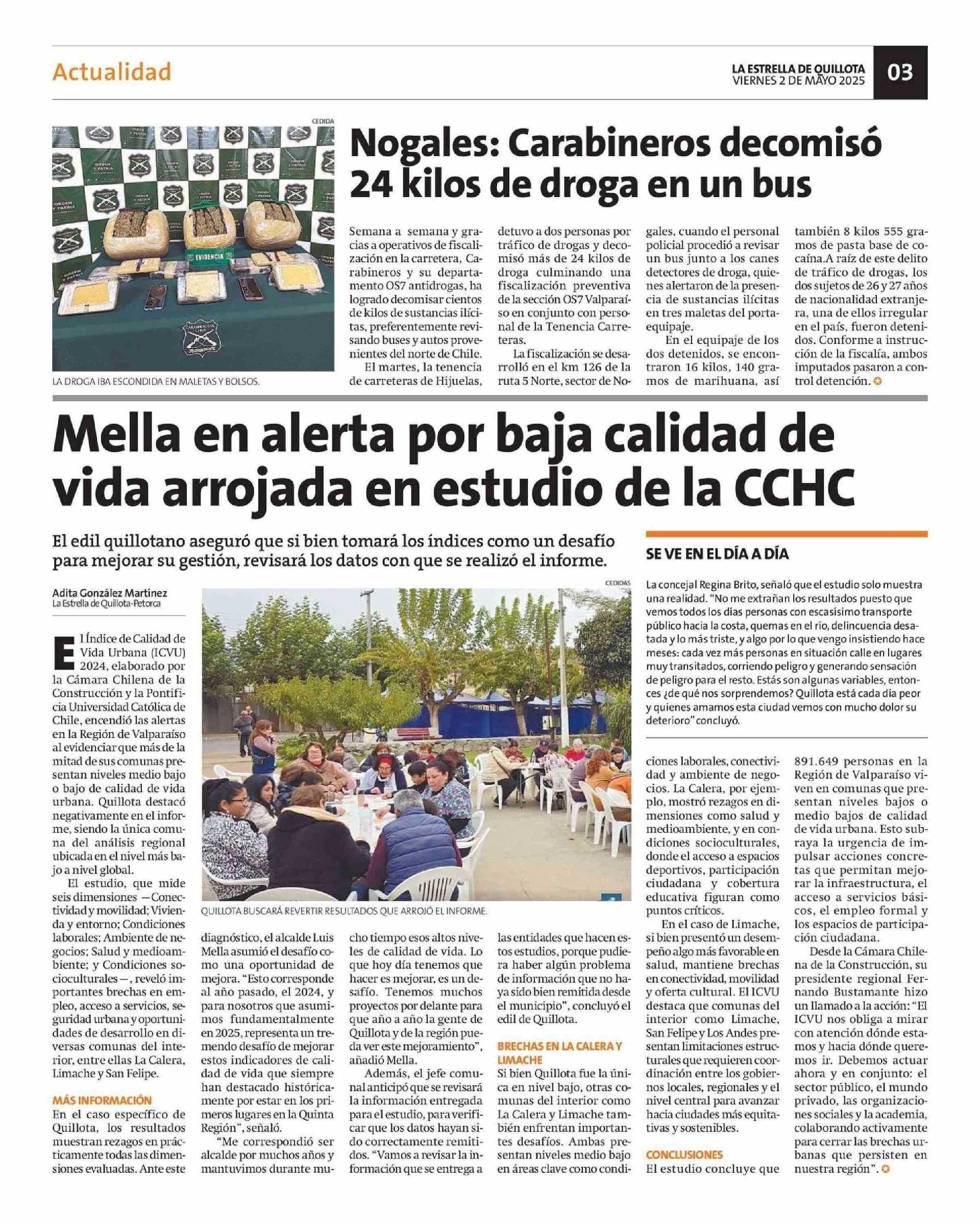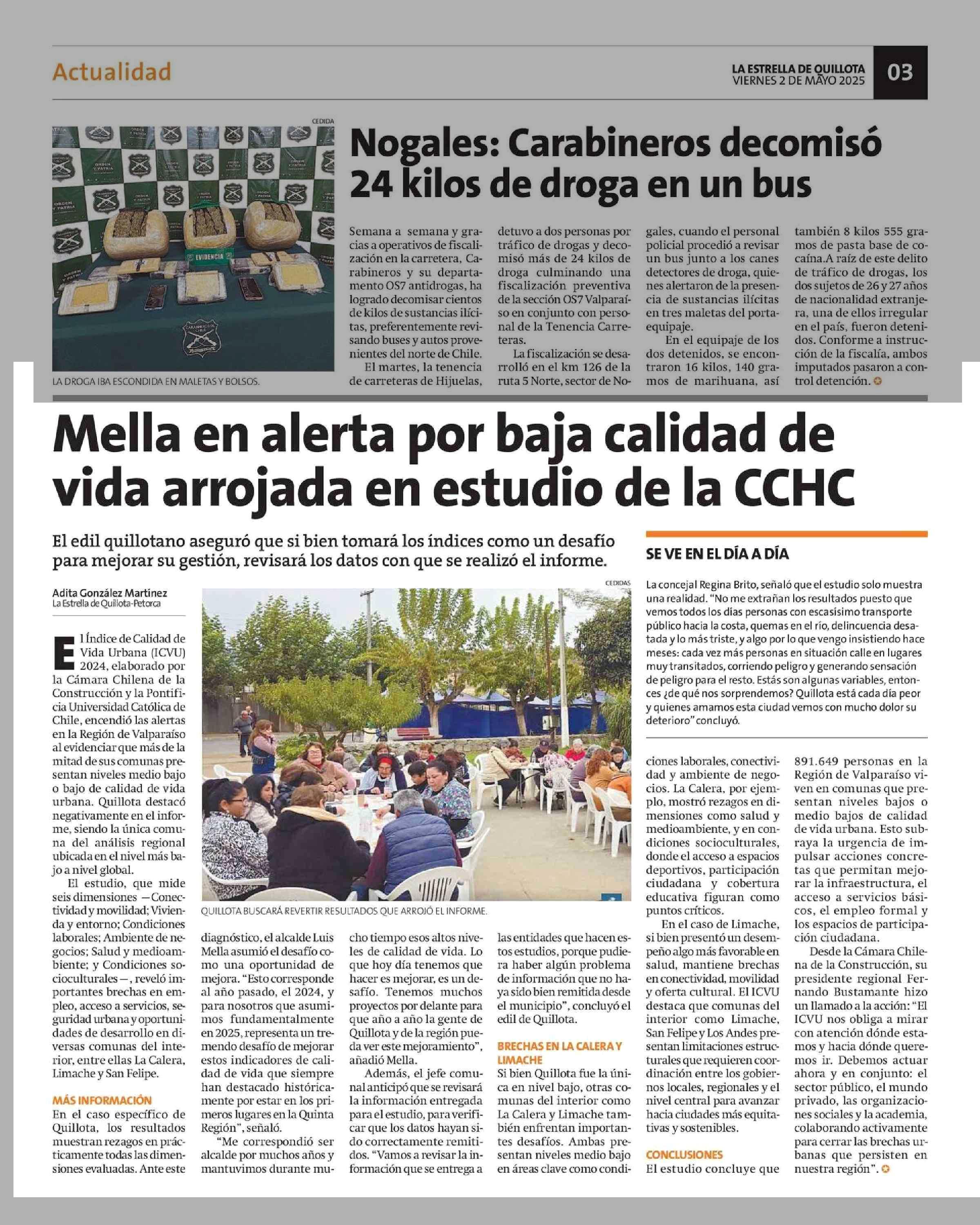 Mella en alerta por baja calidad de vida arrojada en estudio de la CCHC 02-05-2025 La Estrella de Quillota |
