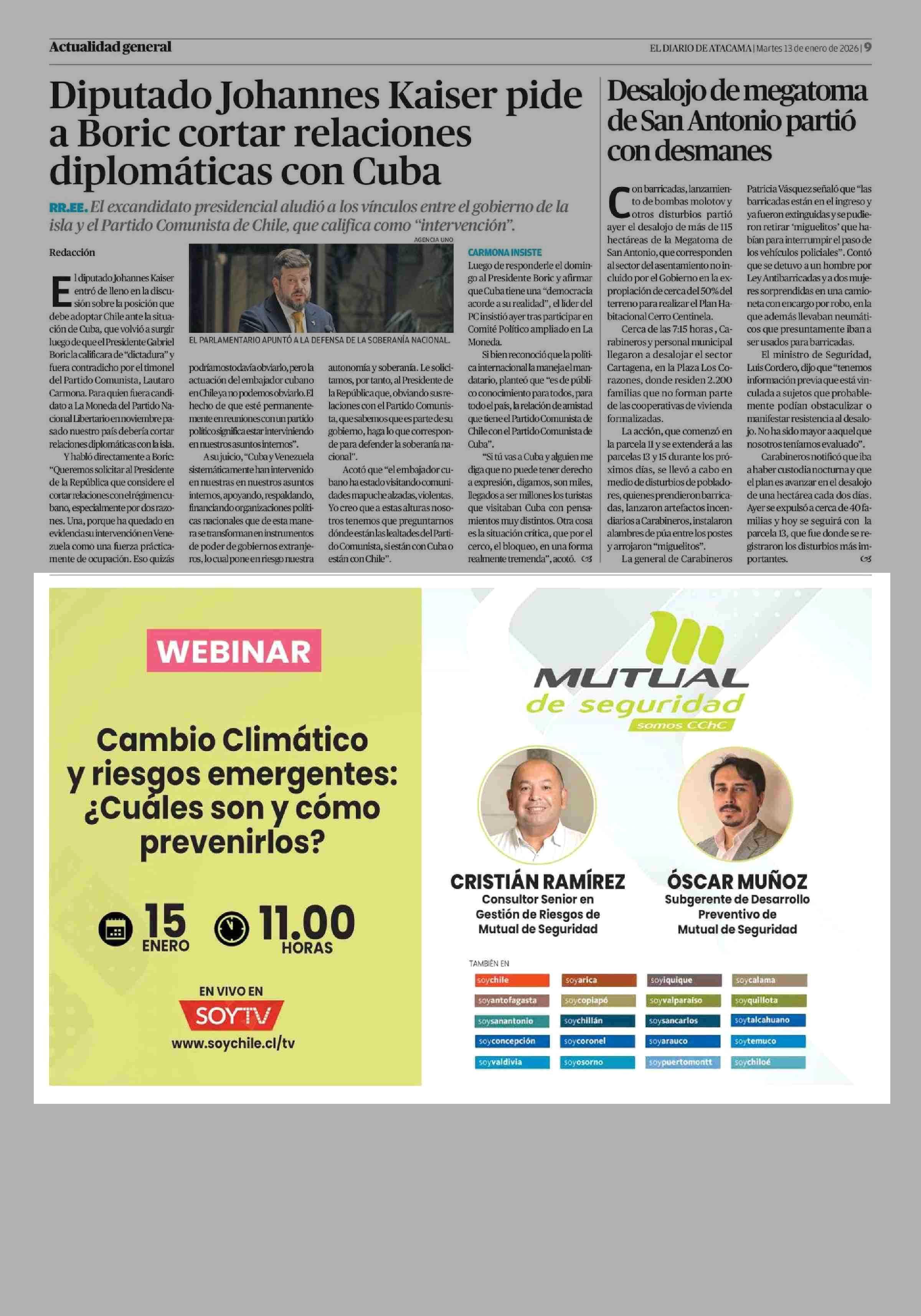 Aviso Publicitario: WEBINAR 13-01-2026 El Diario de Atacama |